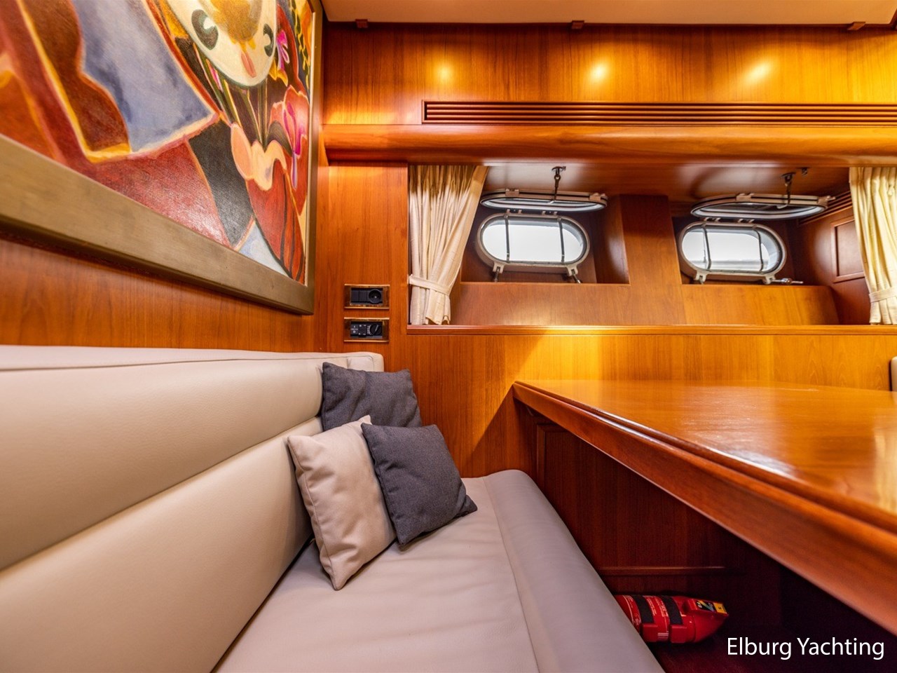 Deze Pieter Beeldsnijder 60 'Sophia' is uitgevoerd met o.a.: Hydraulisch klapbare radarmast, FLIR warmtebeeldcamera, Garmin achteruitkijk camera, LED schijnwerper, windmeter, Dome met DAB antenne, digitale TV antenne, 5 x Exalto ruitenwissers + sproeiers, intercomsysteem, UKW Navtex, Satelliettelefoon Beam Oceana 800, AIS Klasse A (2021), Garmin Navigatie + HD Radar (2020), Ricaro stuurstoel, 3-persoons meevaarbank in stuurhuis. , Samsung smart TV in salon incl Sony Surround receiver, Fusion Radio, Wifi router, NMEA 2000 netwerk, ruim achterdek met vast zitbank inclusief kussens, buitenbar, Miele wasmachine + Miele droger, Miele vaatwasser, houten vloer in stuurhuis, vernieuwd comfort tapijt in salon en hutten, LED verlichting door gehele schip, elektrische sauna in eigenaarsvertrek, diverse lucht/ventilatieluiken, centrale verwarming & Airconditioning, centraal stofzuigsysteem, dubbele SEPAR brandstoffilters met fuel polishing functie á 1000 liter/uur + DeBug filters, mangaten voor tanks, Aerosol automatische blusinstallatie, corrosie monitor system, dekwassysteem, extra waterfilteringssysteem, HRO watermaker, 24 liter drukvat watersysteem (2022), follow-up besturing, pneumatisch bedienbare luiken op voordek, afneembare loopplak beschikbaar, zonnescherm over achterdek, doorvaarthoogte ca. 7,00m en met geklapte mast ca. 4,00m-4,10m, liferaft (2x 4 persoons beide gekeurd 2024), groot motoronderhoud (2020), Gebouwd onder Germanischer Lloyd Class 100A5 hetgeen de zwaarste mogelijke klasse voor pleziervaartuigen is. Vernieuwd CVO + Rijn certificaat geldig tot 2031, incl Zeebrief Registratie. Het jacht is compleet gedocumenteerd en er is een uitgebreide gebruikershandleiding van de boordsystemen beschikbaar. De PB60 'Sophia' is destijds met een ruim budget gebouwd, alles wat technische mogelijk was is aan boord en na een uitgebreide refit incl. Hullvane installatie is het een zeer stabiel, gemakkelijk manoeuvreerbaar, veilig en efficiënt varend schip geworden welke zich kan meten met recent gebouwde schepen. De verkoper is bereid voor een complete (technische) overdracht van kennis aan de nieuwe eigenaar.