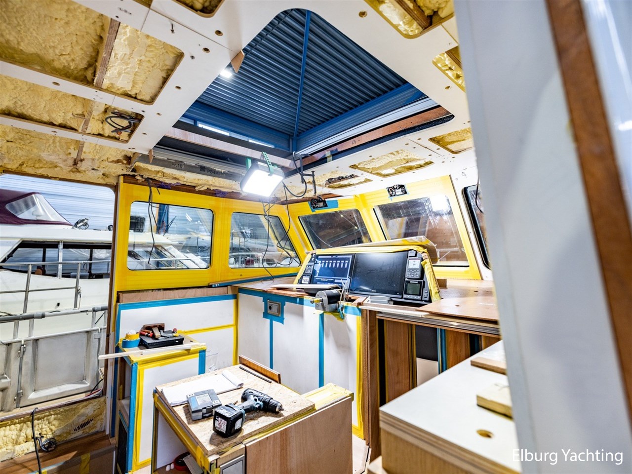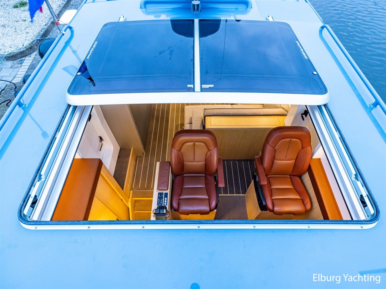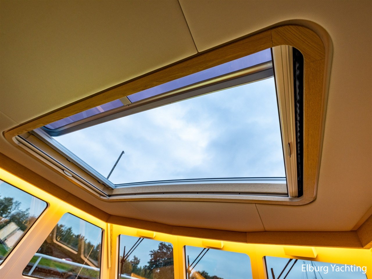 Dubbel glas Thermopane in vast stuurhuis, elektrisch schuifdak bij stuurhut ( ca. 1.10 x 1.80 m