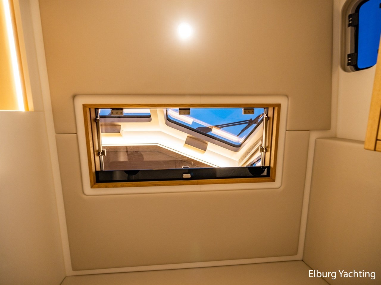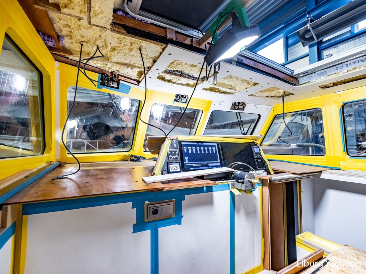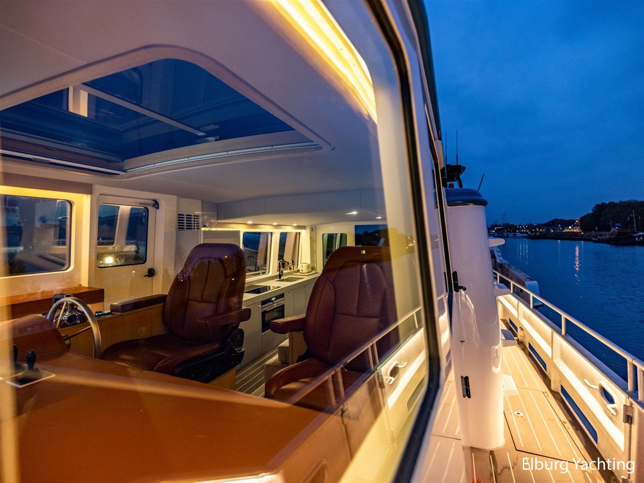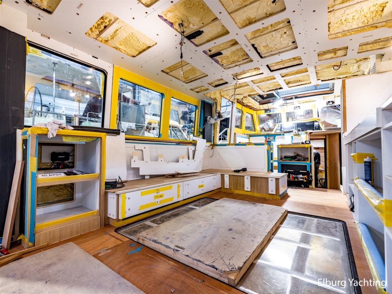 Dubbel glas Thermopane in vast stuurhuis, elektrisch schuifdak bij stuurhut ( ca. 1.10 x 1.80 m