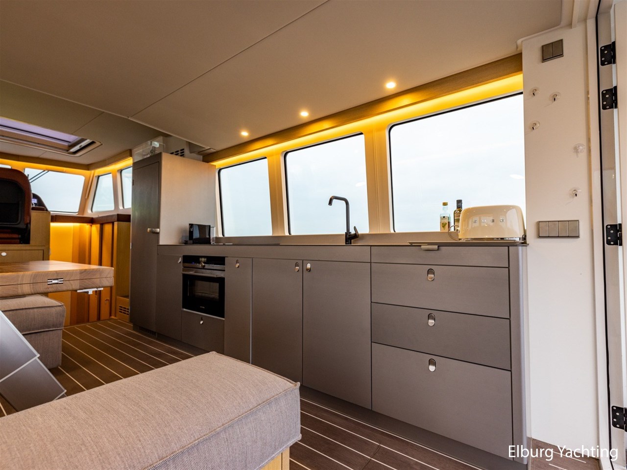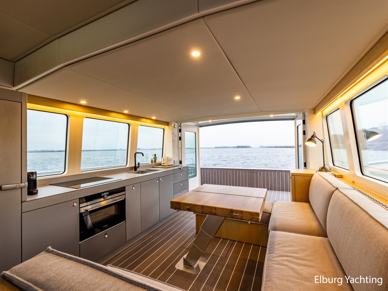 De Bestevaer 53 MY - NEW - Bouwnummer 3 is een tijdloos jacht, extreem comfortabel in alle weersomstandigheden en tevens geïnspireerd door Scandinavisch design. Dit jacht brengt u een verfijnd gevoel van luxe en welzijn. Bestevaer 53 MY - NEW - Bouwnummer 3 is in aanbouw . De afbouw wordt voltooid met de invulling van eigen wensen omtrent het interieur nieuwe eigenaar. De Bestevaer 53 MY die u in deze specificatie en en op afspraak kan bezichtigen geeft een duidelijke beleving en impressie van de Bestevaer 53 MY - NEW - Bouwnummer 3. Het motorjacht heeft een groot achterdek met hydraulisch zwemplatform en brede gangboorden voor veel bewegingsruimte, grote schuifdeuren die volledig opengeklapt kunnen worden, zodat buiten en binnen in elkaar overvloeien. Het jacht wat u ter inspiratie kunt bezichtigen beschikt over : Achterdek en salon gelijkvloers, zij-ingang, elektrisch schuifdak bij stuurhut ( ca. 1.10 x 1.80 m, zij-ingang in reling, grote openslaande deuren naar de kuip om de salon en buitendek, dekdouche met warm/koud water bij zwemplateau, ruime leefomgeving in salon, buiten verlichting op tredes , Garmin navigatiepakket, 2 x 16" scherm, CTCV Camerasysteem voor achterdek en machinekamer, Dockmate - 2 motoren en boegschroef, Humphree interscepter set (4 x) met roll en pitch demping software + carbon vinnen, 4 x zonnepanelen op het achterdak, Fusion radio + 2 x speakers salon en 2 x cockpit (iPhone compatible), Miele was-droogcombinatie. Siemens vaatwasser, Ocean Air horren in eigenaar hut bij dekluik, shades/gordijnen in salon, lederen bekleding van de dashboardunit, elektrische lift voor vaarstoel- en passagiersstoel voor optimaal zicht, Lampe Gras zwarte design lampen, Frost zwarte douche armaturen, elektrische lift voor eettafel om te transformeren naar salon/lounge tafel, Kvadrat bekleding, geïntegreerde aluminium bolders, aluminium tredeplaat in voorroef, Aluminium geïntegreerde trap naar dak op bovenbouw, machinekamer akoestisch geïsoleerd, 3 x ruitenwissers met sproeisysteem. Lewmar dekluiken, Marlan tops, douche en toilet gescheiden voor gastenhut, Prebit leeslampjes, met USB aansluiting en dimbaar, Prebit plafondlampen dimbaar in rood/wit, Flatscreen 43" TV + lift, verborgen in salon rugleuning. In exclusieve samenwerking met Yachtfull International. Voor vragen en/of het maken van een afspraak bent u van harte welkom 7 dagen in de week bij Elburg Yachting.