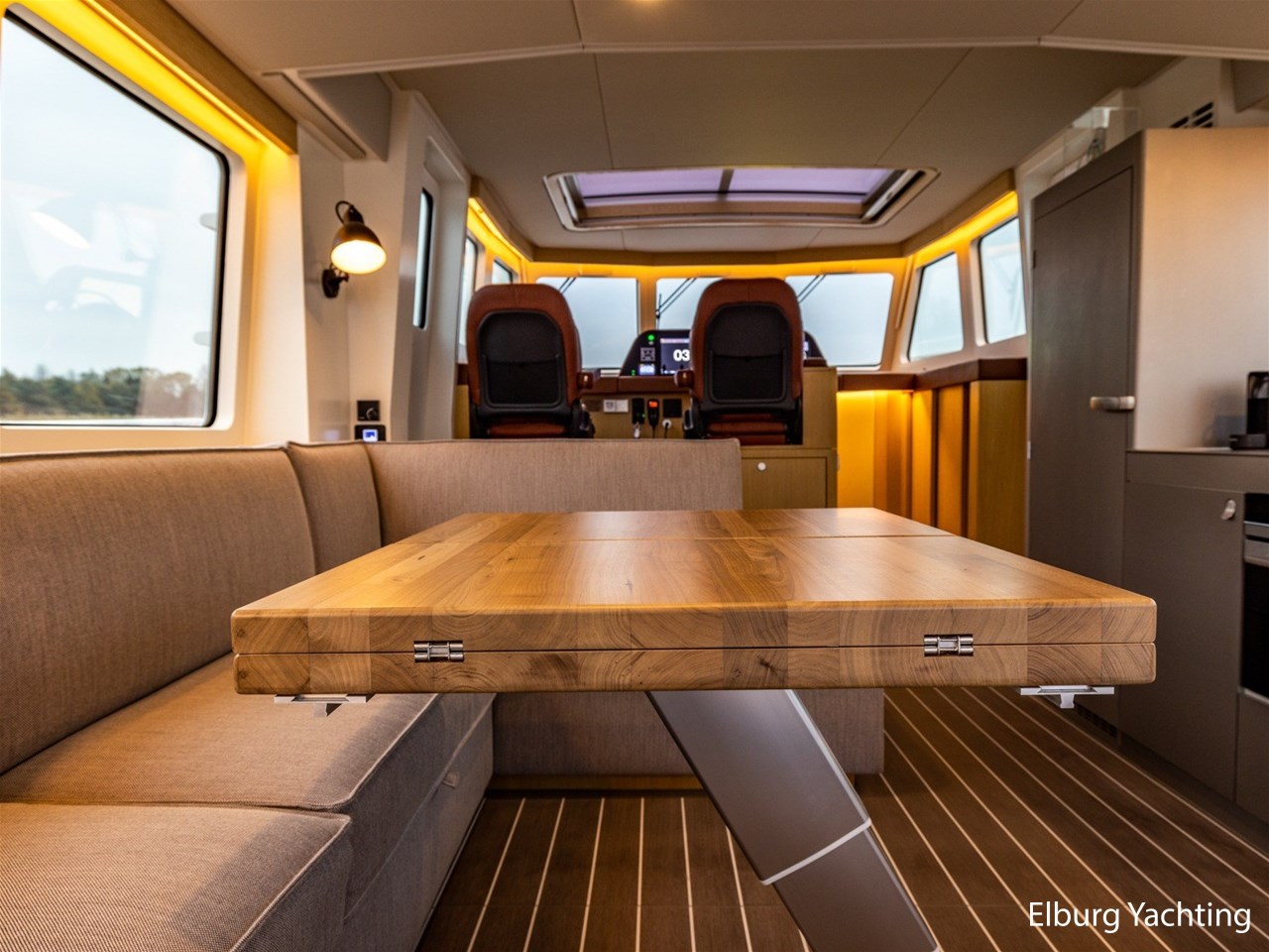 1 x ruime dinette tegenover kombuis, elektrische verstelbare eettafel - salontafel