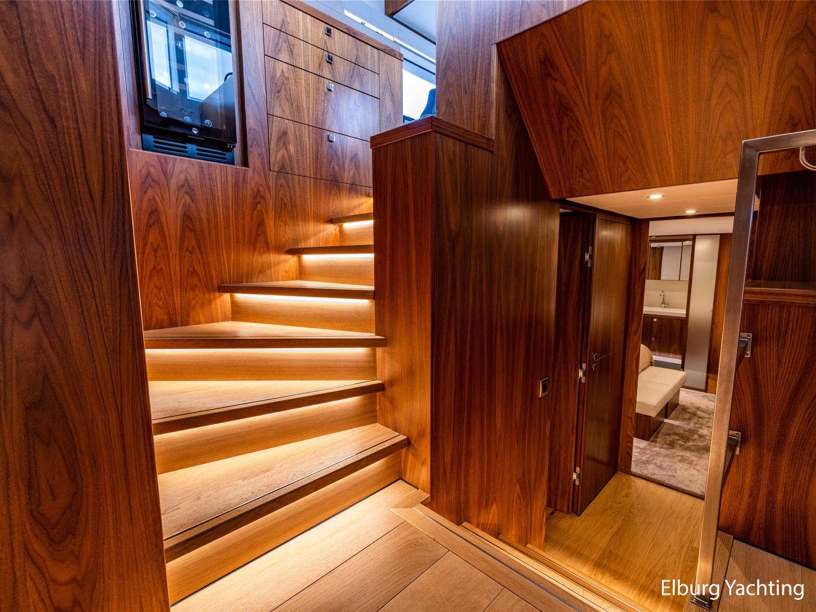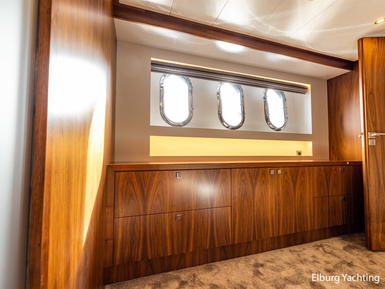 De Van den Hoven Executive is voorzien van o.a.: Vetus hydraulische stabilisatoren, Yachtcontrol software, Hull Vane , hydraulisch bedienbare aluminium mast, r.v.s. reling met een bovenbuis van 42mm, 10 bolders 90 mm op bolderplaten met omgezette randen, 4 ovale kikkers, 2 x r.v.s. vlaggenstok, ronde stootlijsten, instrumentenbeugel op mast, r.v.s. ankerkluis zijboeg, losse r.v.s trap voor afstap roef-/salondek, losse r.v.s. trap voor afstap gangboord/zwemtrap, 3 thermostaten, radiator in salon, gehele schip onder de waterlijn geïsoleerd met 4 cm purschuimisolatie, 12 patrijspoorten (175 x 375 mm) (Gebo) voorzien van los vliegenhor, 6 patrijspoorten romp (310 x 690 mm) volledig r.v.s. opendraaiend met vliegenhor, buiten en binnenverlichting waarvan 55 led plafondspots , 4 wandspots, 2 x dimmer in salon en eigenaarshut, 3 x ruitenwisser Exalto 240BS met wisserarmen, 2 x luxe badkamer met meubel, spoelbak en 2 x vrij hangend toilet, toegang tot flybridge d.m.v. geïntegreerde trap + afsluitbaar luik Gebo, bar/grill, zitgedeelte met tafel, mast op flybridge, airco in mastercabin, salon en omschakelbaar naar VIP en Guest cabin, alarminstallatie incl. rookmelders met melding naar gsm, wateronthardingssysteem, 1 x schuifraam salon verwerkt in plakbeglazing, verwarming achterdek d.m.v. warmtelucht unit met capaciteit van 10 KW gekoppeld aan Kabola KB40 kachel.