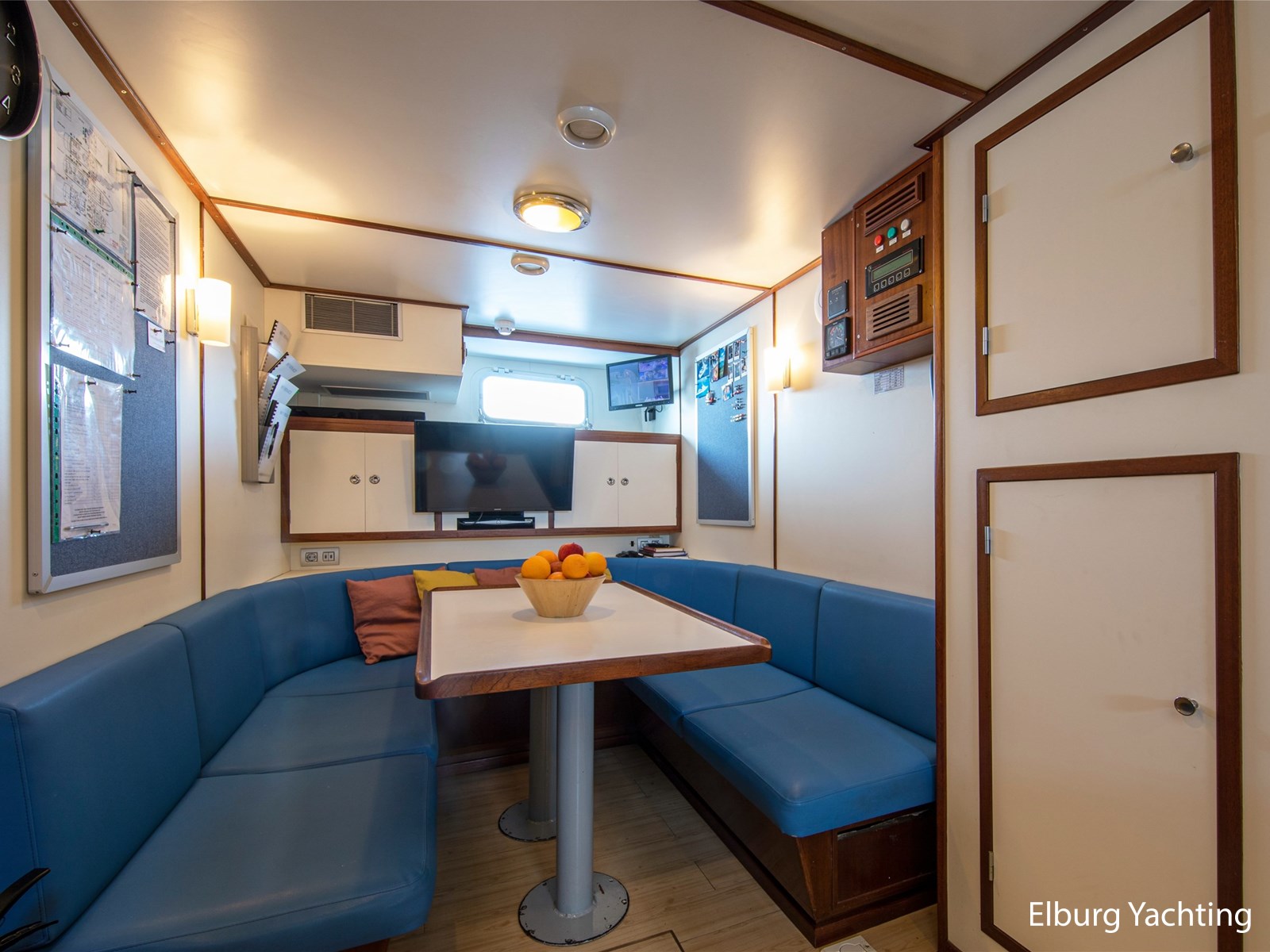 Binnen biedt de open, ruime salon informele zitplaatsen met grote banken en stoelen. Daarnaast bevindt zich ook een formeel eetgedeelte. Verder naar voren op het hoofddek treft u de ruime eigenaarshut met eigen badkamer en inloopkast.
