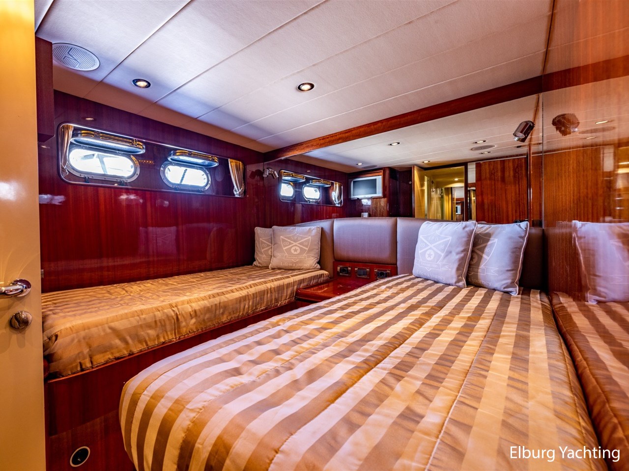 Yaretti 2520 Superior is een snelvarend polyester jacht met een ruime flybridge. Dit royaal gebouwde jacht biedt alle comfort en is uitermate geschikt om op te wonen of lang op te verblijven. Ruime achterdek met vaste bank en ovale tafel met r.v.s. poot, r.v.s pui met ruime schuifdeur, ruime salon met binnenbar aansluitend aan achterdek, L-dinette en loveseat, vrijstaande eettafel in salon naast de kombuis, kombuis afsluitbaar incl. eigen buitendeur, werkbureau in salon, eventueel contact van werkbureau naar kombuis mogelijk door schuifluik. Het is hierdoor eenvoudig om te communiceren voor schipper, werkbureau en kombuis. Overzichtelijke stuurstand met Bensenzoni elektrische vaarstoel, MAN motormanagement, zijdeur naar stuurstand, owners cabin midscheeps met 2 pers. vrijstaand bed en en-suite badkamer, 4 x grote zij-patrijspoorten die ook open kunnen, walk-in-closet in de eigenaarshut, ruime gangen met veel loopruimte, guest cabin met 2 pers. bed en en-suite badkamer, marmeren topbladen, nieuwe vloerbedekking (2021) + ondertapijt - Vosco Navtex, centrale verwarming in alle ruimtes, warm interieur door Sipo Mahoniehout met hoogglans afwerking. Luie trap naar flybridge, Bensenzoni kraan op flybridge, ruime flybridge met grote vaste rondzitbank, zonne-sofa/ligbed, hardtop op flybridge, volledige buitenkeuken, marmeren topbladen, Lewmar 1200 elektrische kaapstanders, groot zwemplateau, 2 x luie trap naar zwemplateau, overdekte gangboorden, 2 x zijdeur, vaste verschansing + r.v.s. reling, meevaarbank op voordek, 2 grote opbergvakken op voordek, r.v.s. fenderhouders, veel r.v.s. afwerking, buiten/achter ingang machinekamer, elektra is vernieuwd, kijkglas in deur van machinekamer, AEG wasmachine/droger 7000 serie (2020), extra opbergruimte (hut) in achterschip, 2 x nieuwe omvormer, 3 x 2-armige ruitenwissers, veel bergruimte, volledige documentatie aanwezig. Teakdek heeft een volledige refit ondergaan (2025). De Yaretti 25.20 Superior beschikt over een CVO Certificaat. U bent van harte welkom voor een bezichtiging, er worden werkzaamheden uitgevoerd aan boord van het jacht. Voor vragen en/of het maken van een afspraak bent u 7 dagen per week van harte welkom bij Elburg Yachting.