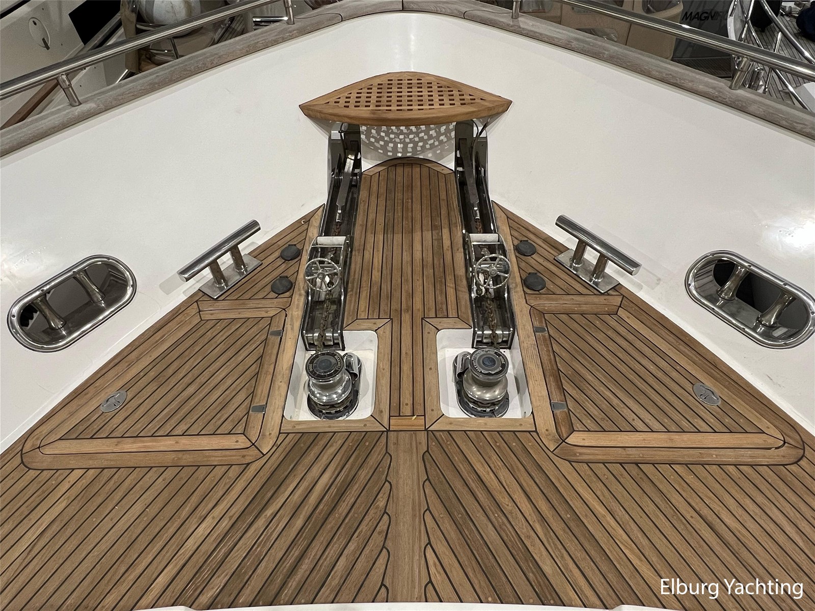 2 x Maxwell 3500 met RVS ankers, achterschip 2 x kaapstander Maxwel 1200 + ankerstop