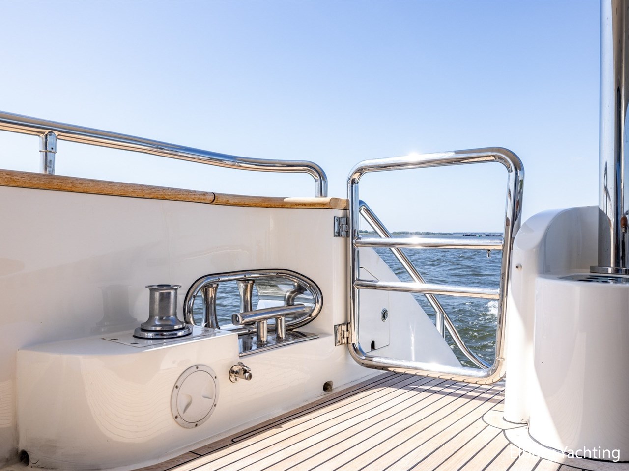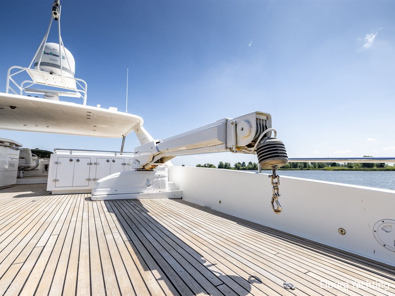 Besenzoni kraan op Flybridge ca. 600 kg draagvermogen, Besenzoni gangway uitschuifbaar (3 delig)