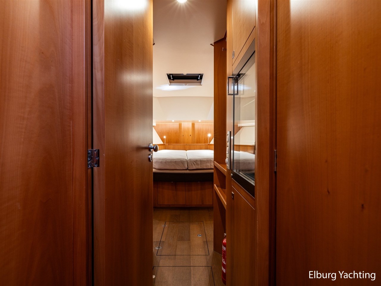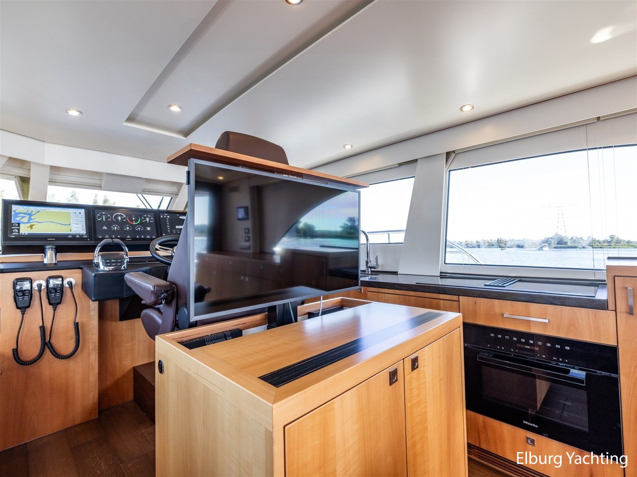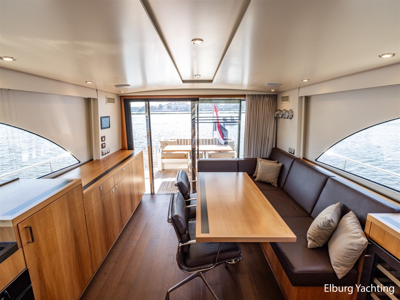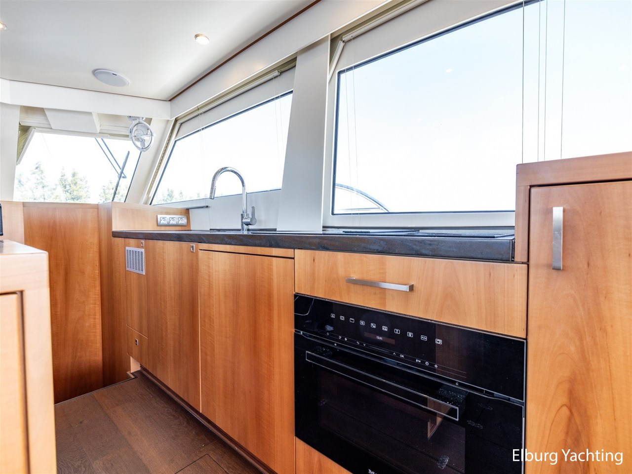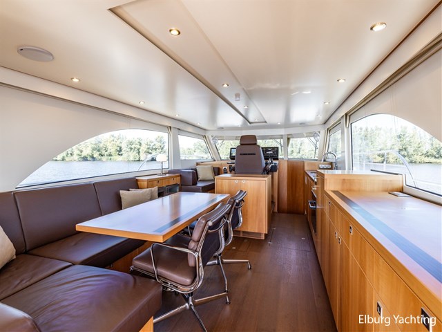 Modern scheepsinterieur afgewerkt met peren houtlook