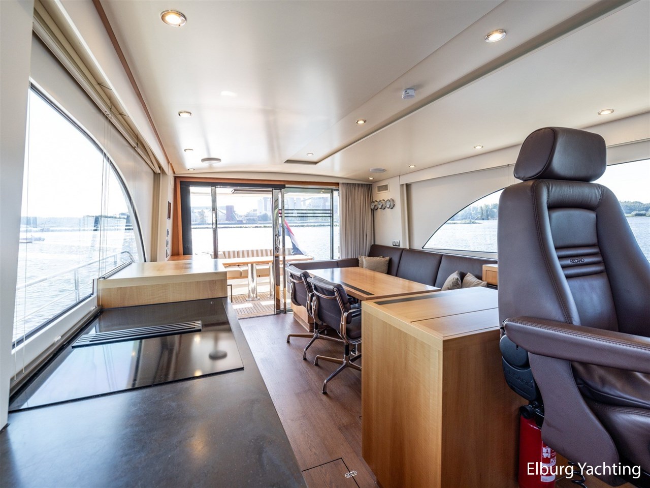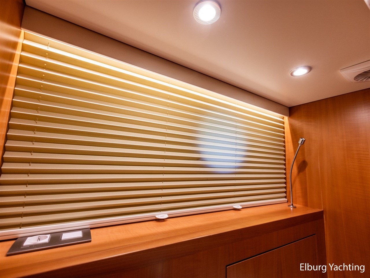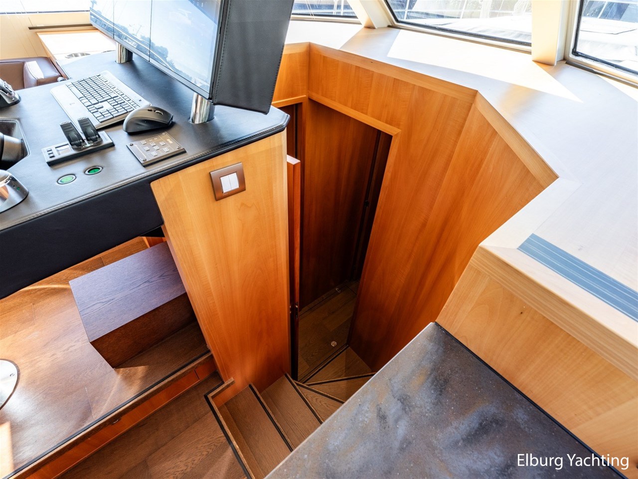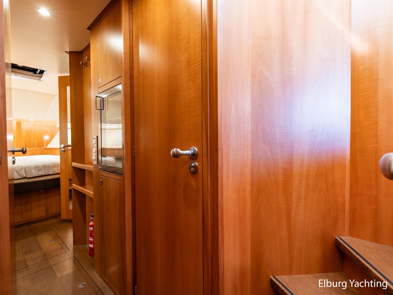 Modern scheepsinterieur afgewerkt met peren houtlook