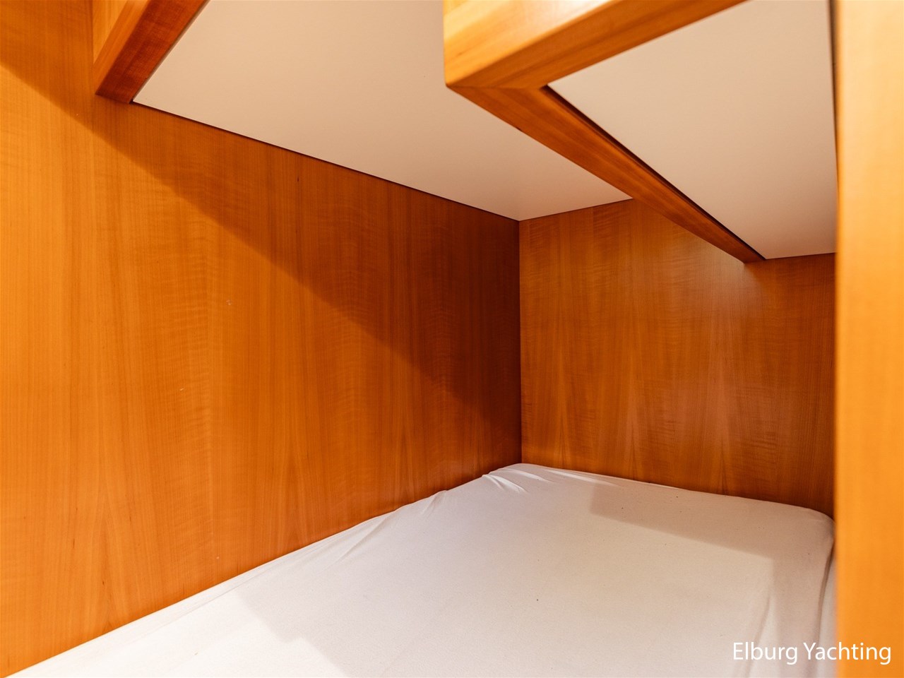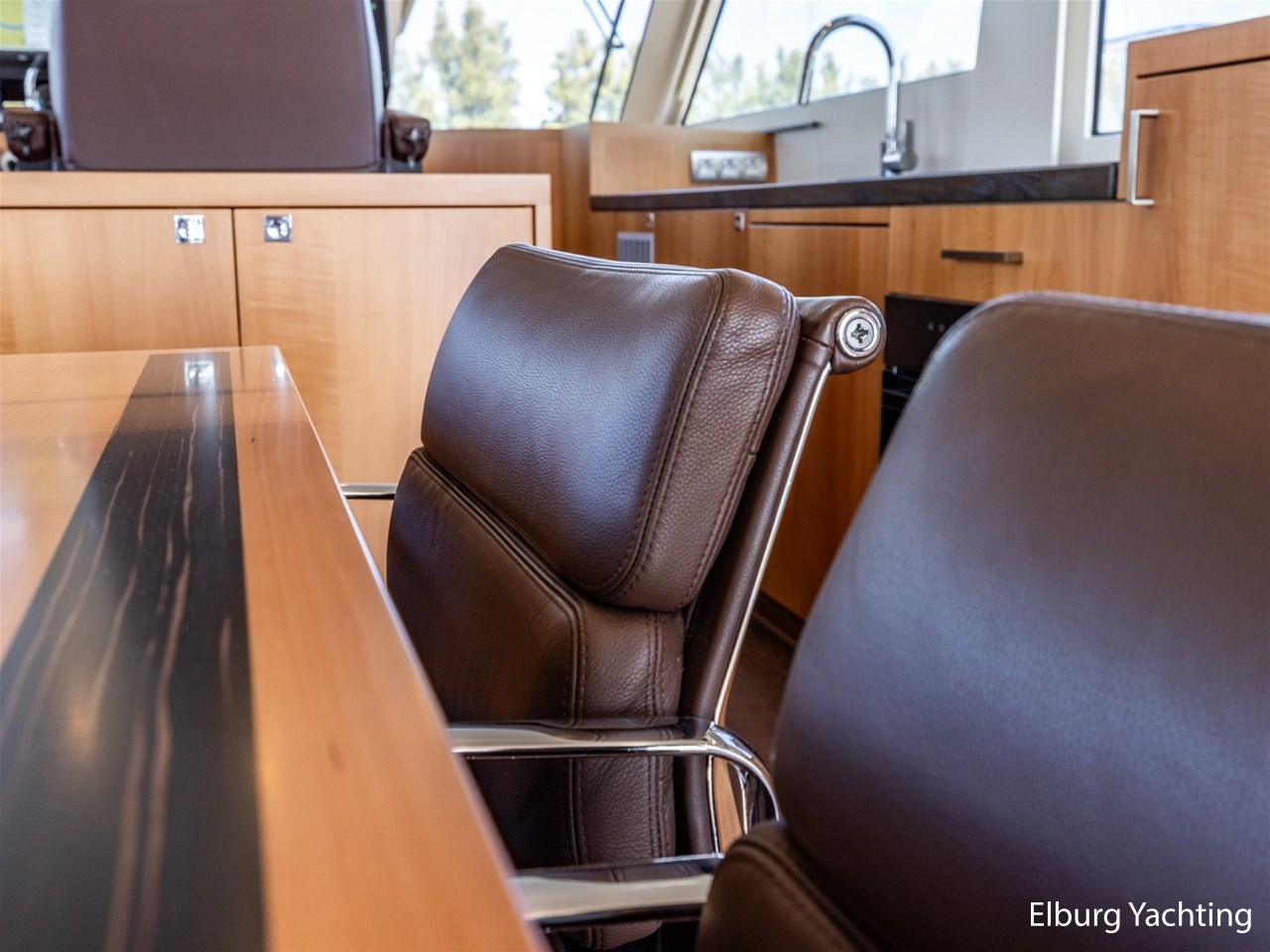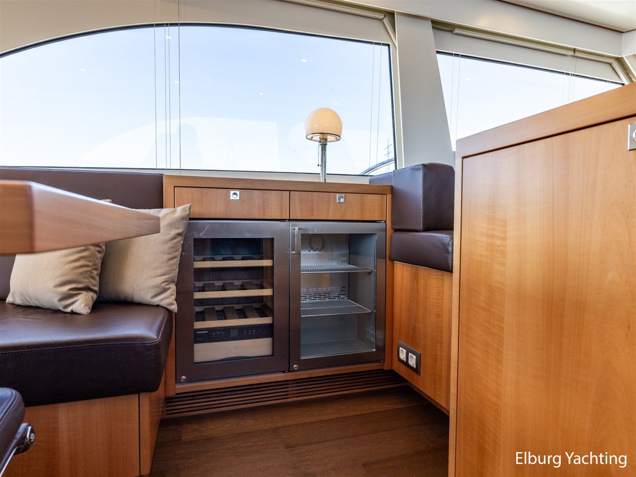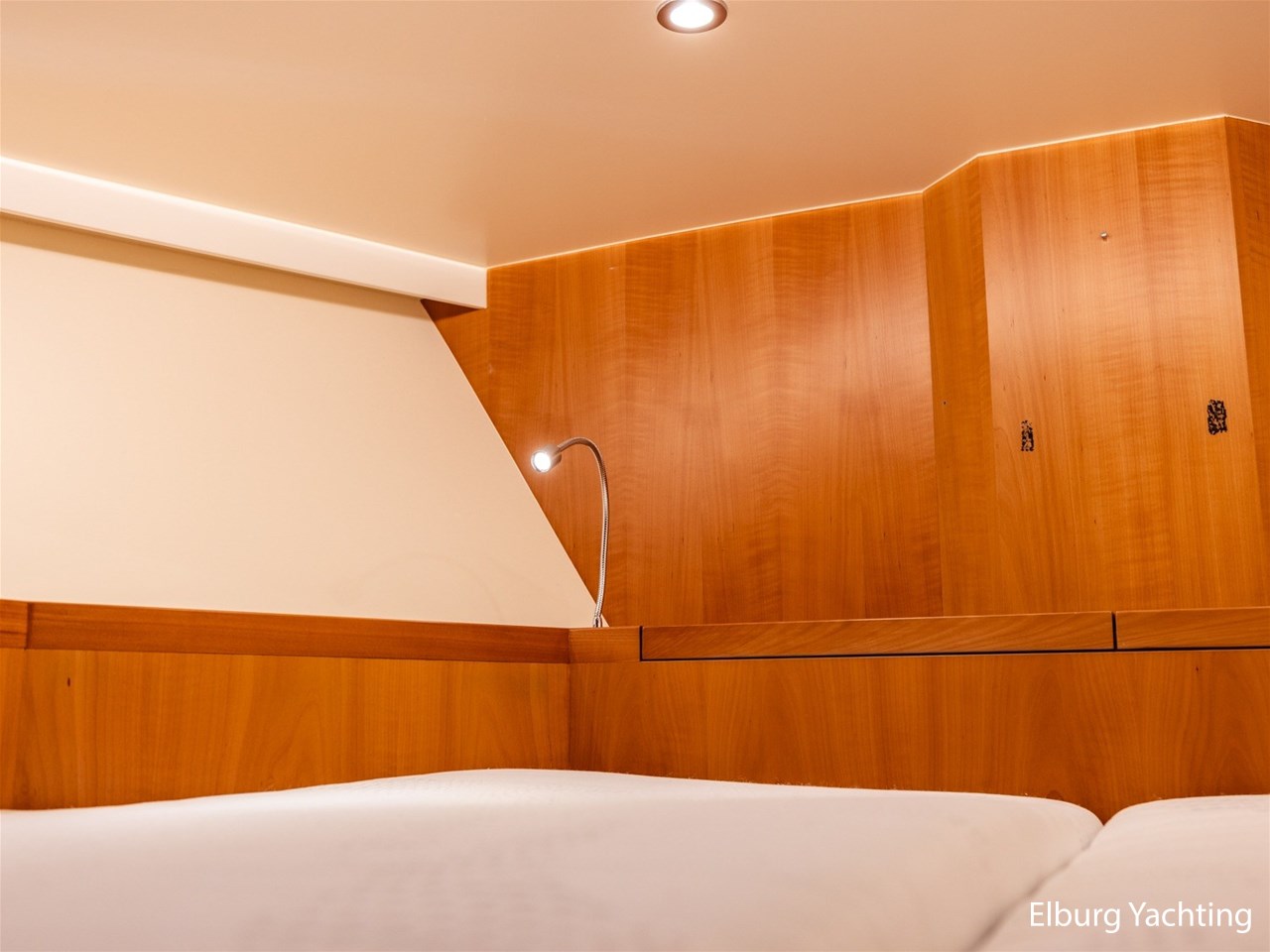 Modern scheepsinterieur afgewerkt met peren houtlook