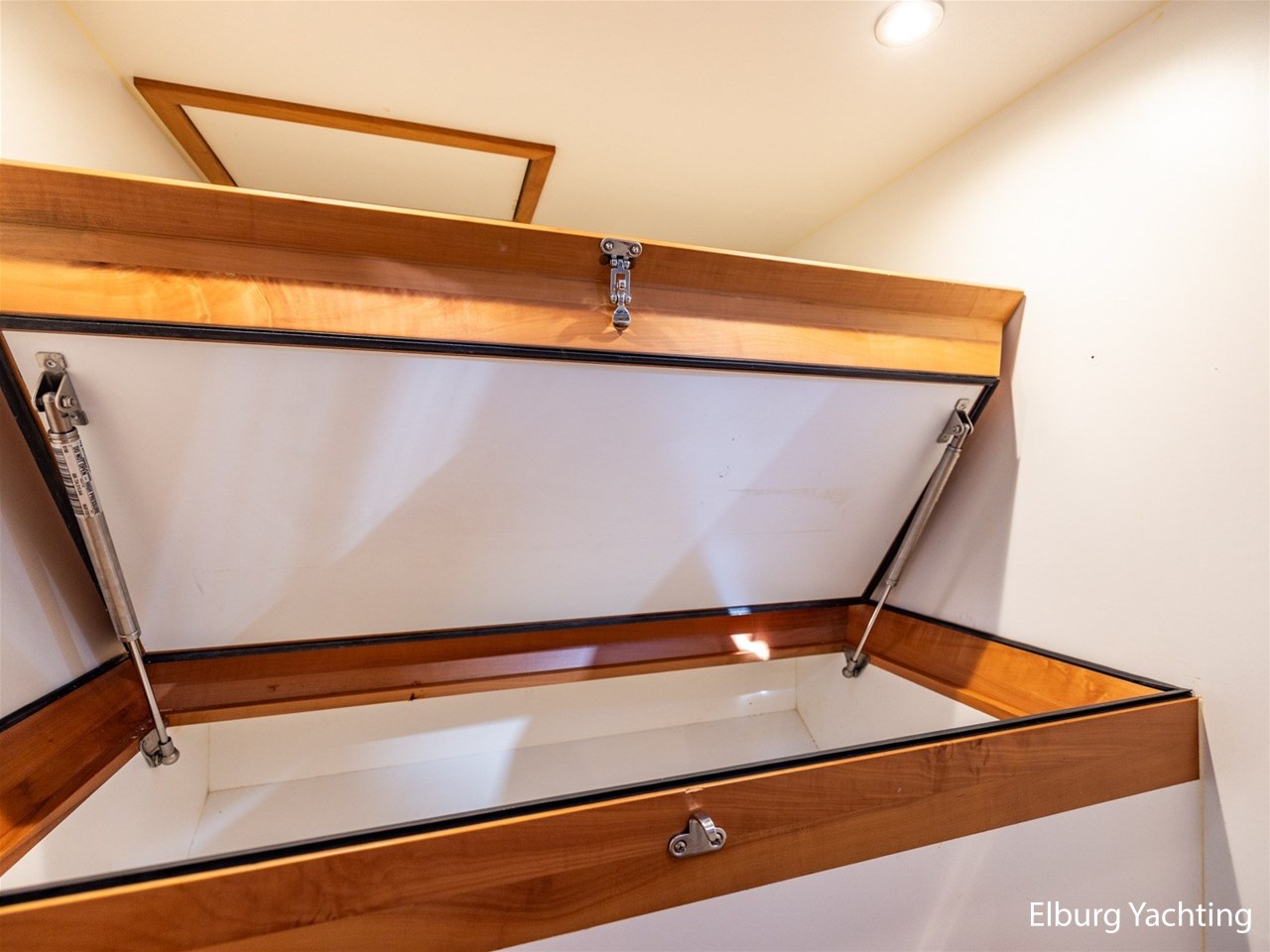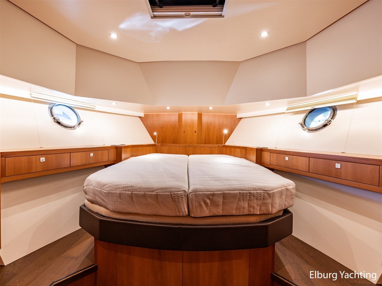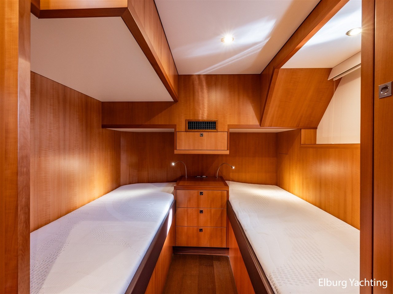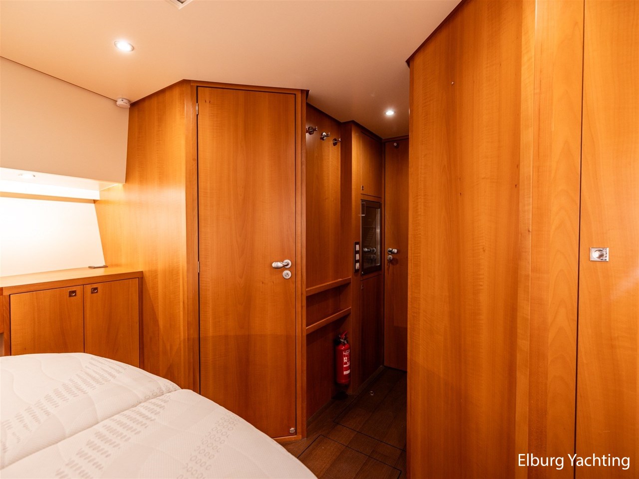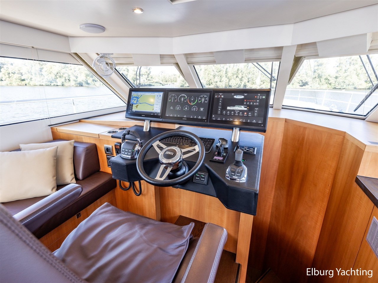 Modern scheepsinterieur afgewerkt met peren houtlook