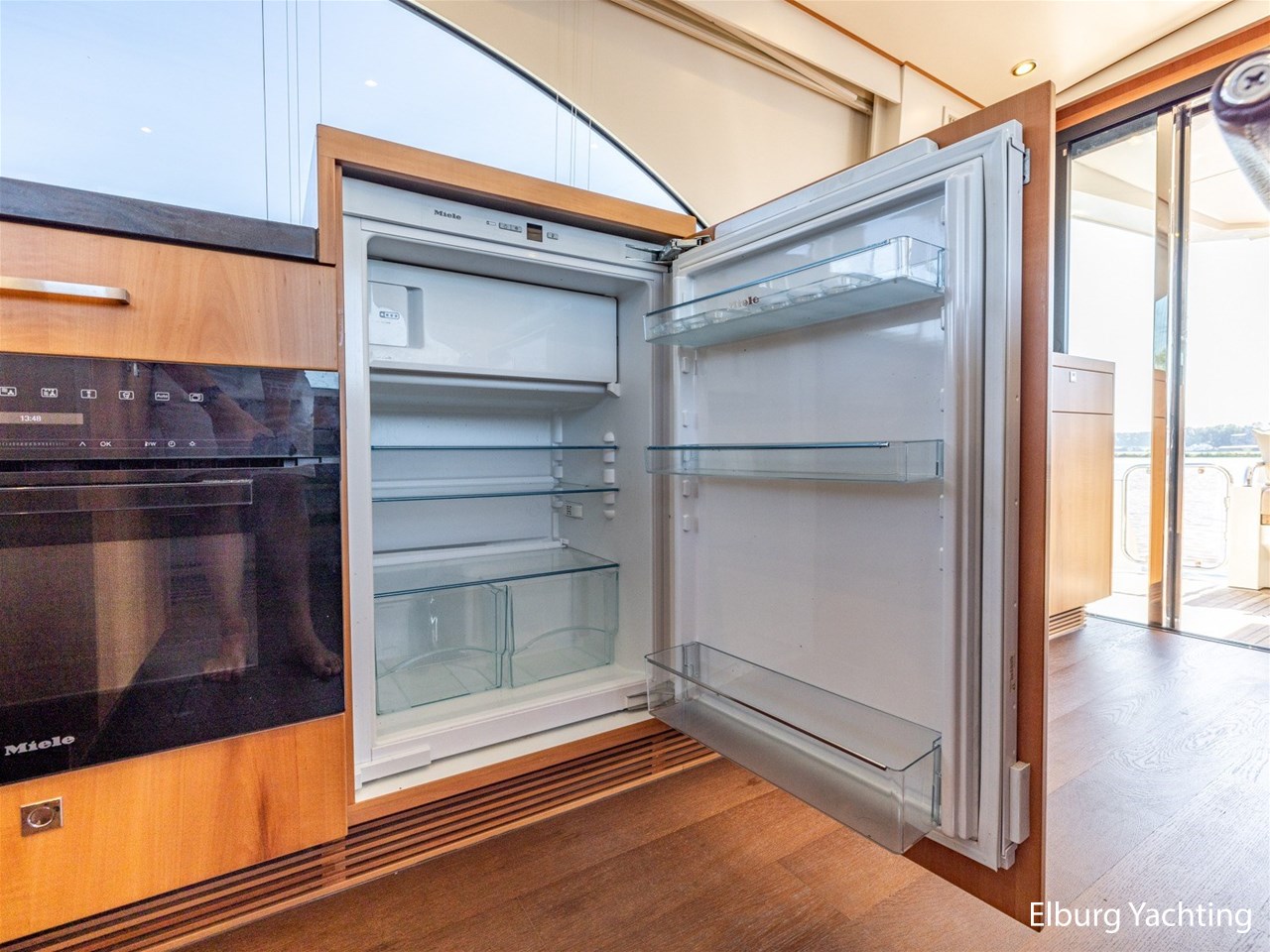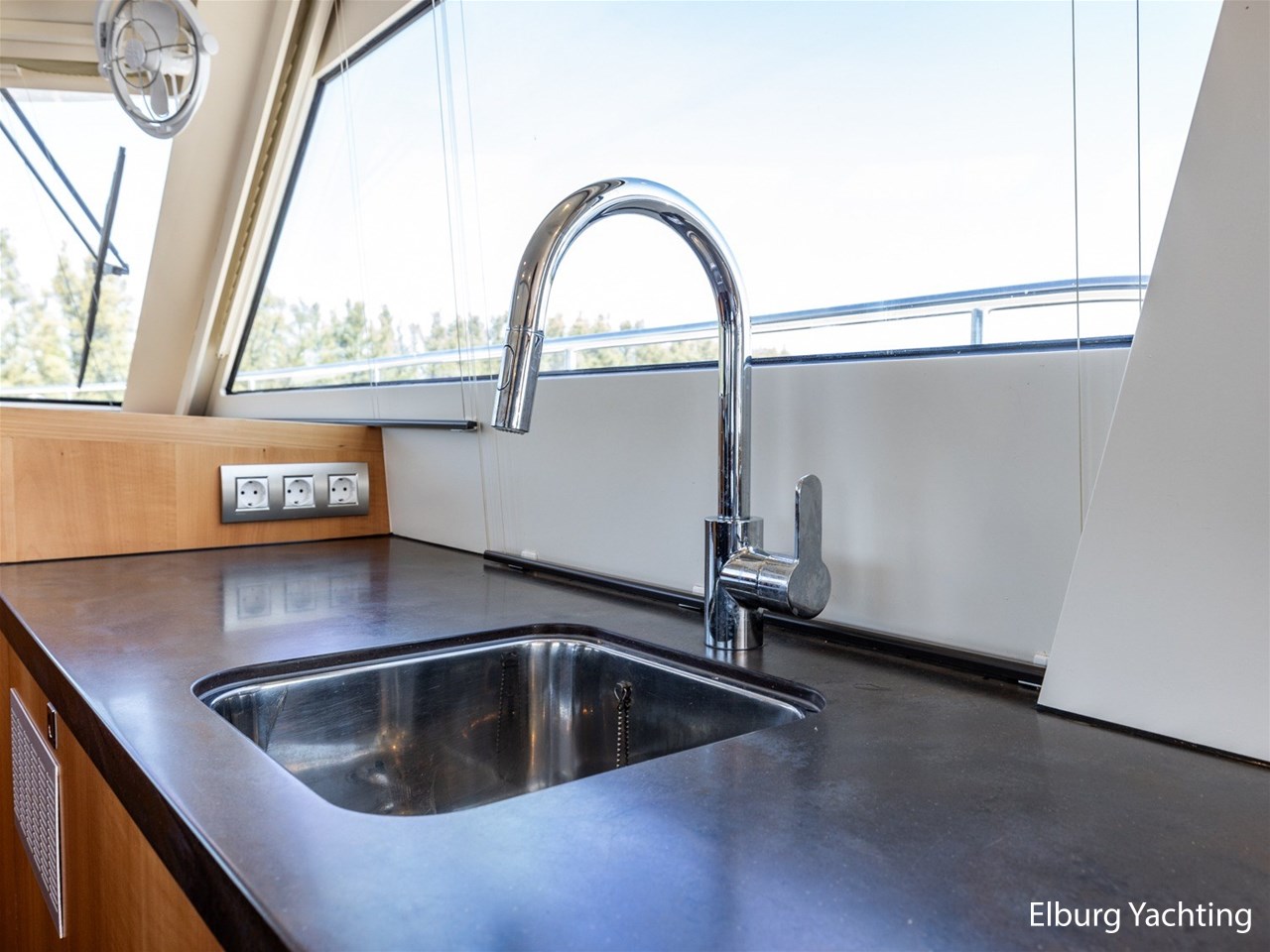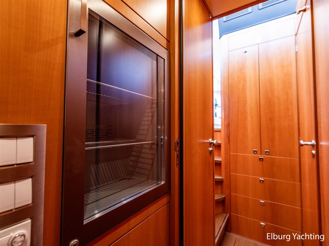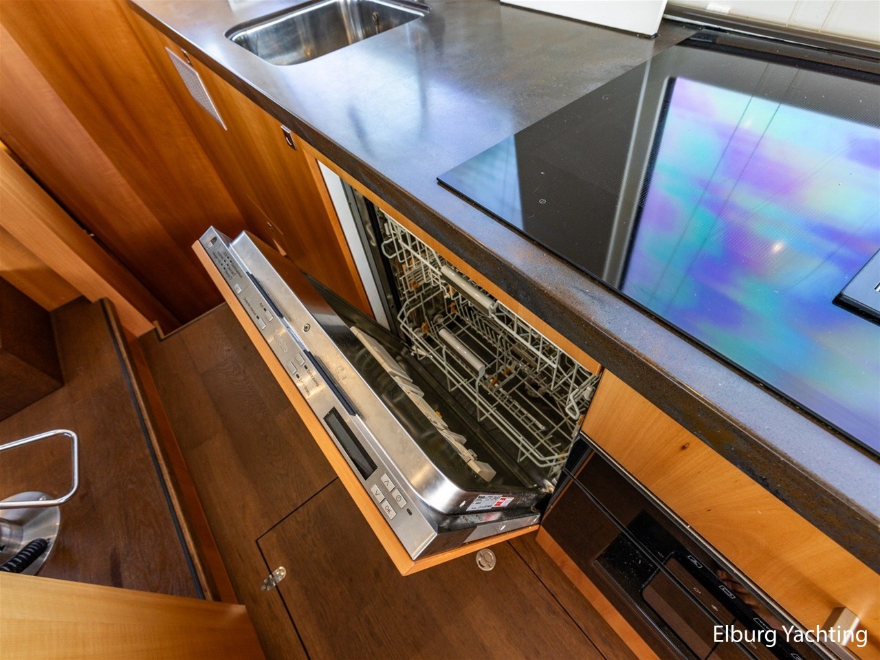 Modern scheepsinterieur afgewerkt met peren houtlook