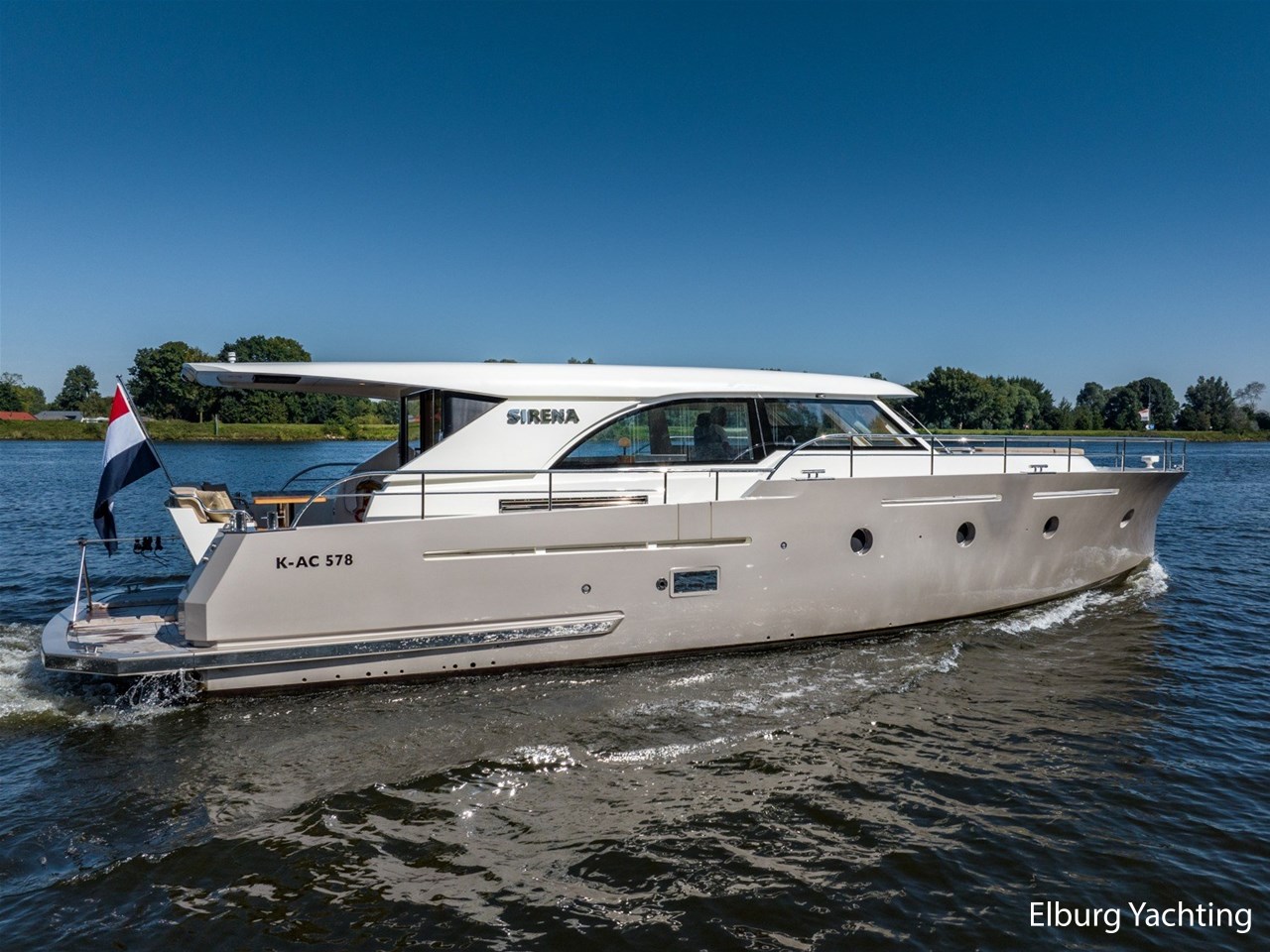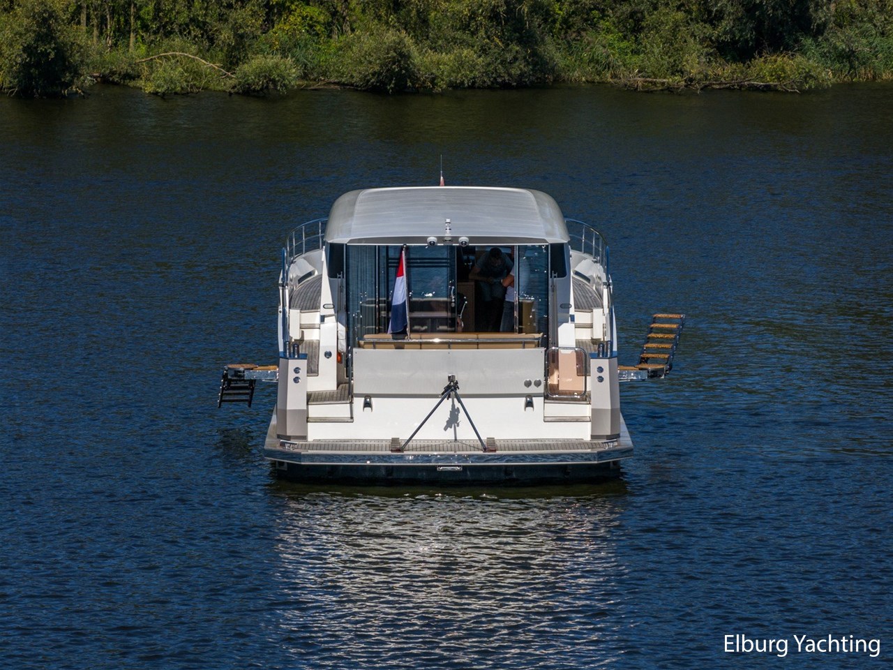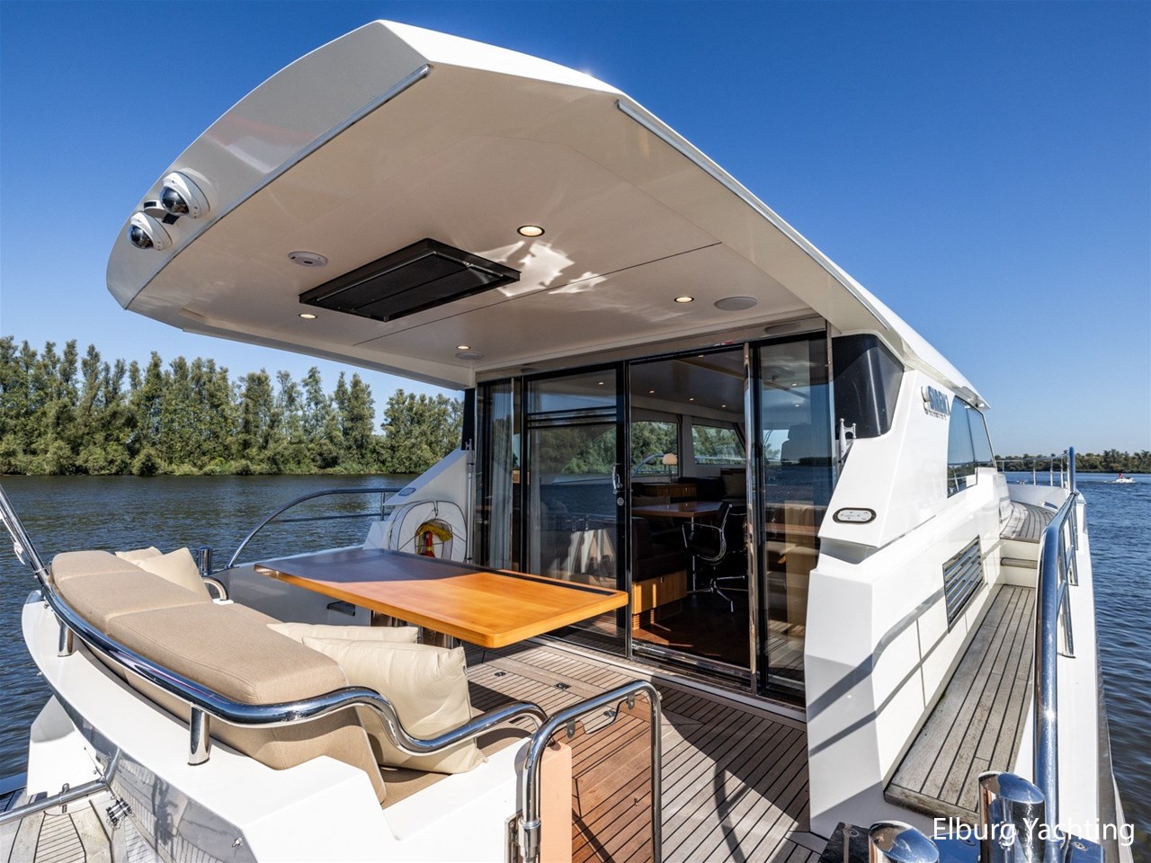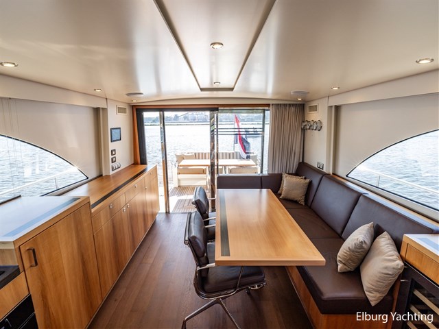 De Altena 52 - Fast Going - Aluminium is een snelvarend aluminium motorjacht ontworpen door Theo Werner, gebouwd door de gerenommeerde Nederlandse scheepswerf Altena. De kuip, salon en het stuurhuis zijn gelijkvloers en staan in open verbinding met elkaar. De r.v.s. schuifpui zorgt voor toegang naar de ruime leefsalon. Benedendeks biedt dit jacht een slaapplaats voor vijf opvarenden, verdeeld in een tweepersoons frans bed in de voorhut / 2 x 1 persoons bed mid-scheeps aan SB zijde / 1 persoons bed mid-scheeps aan BB zijde. Alle hutten beschikken over een eigen douche en toilet ruimte. In de vloer van de openkuip heb je toegang tot een ruime berging en het hart van de elektrische installaties. Een watervaste deur vanuit de ruime berging geeft toegang tot de machinekamer. Uniek zijn de twee geïntegreerde zijtrappen (SB+BB) die op steigerhoogte kunnen worden afgesteld voor het gemakkelijk op en afstappen. Het jacht is o.a. voorzien van verlichting en een verwarmingselement in plafond over achterdek, de kuip is volledig af te sluiten met een afneembare tent, vele r.v.s. details aan dek, 2 x spiegeldeur naar zwemplateau, zonnebed op voordek met afneembare kussens, bergruimte in voorpiek voor fenders en lijnen, veel licht inval en goed zicht rondom door het grote raamoppervlakte, waardoor u kunt genieten van het ultieme gevoel op het water. Verder is zij voorzien van elektrisch bedienbare plissé gordijnen, TV op lift, Volvo Penta dockingstation, AIS, 2 x elektrisch bedienbare telescopische spudpalen (voor + achter) waarmee aanmeren kinderspel wordt en de mooiste ankerlocaties bereikbaar zijn, ruime berging in vloer bij kombuis, tanks met mangaten, professioneel ingerichte machinekamer met goede toegankelijkheid tot de techniek, doorvaarthoogte ca. 3,45m. Voor vragen en/of het maken van een afspraak bent u 7 dagen per week van harte welkom bij Elburg Yachting.
