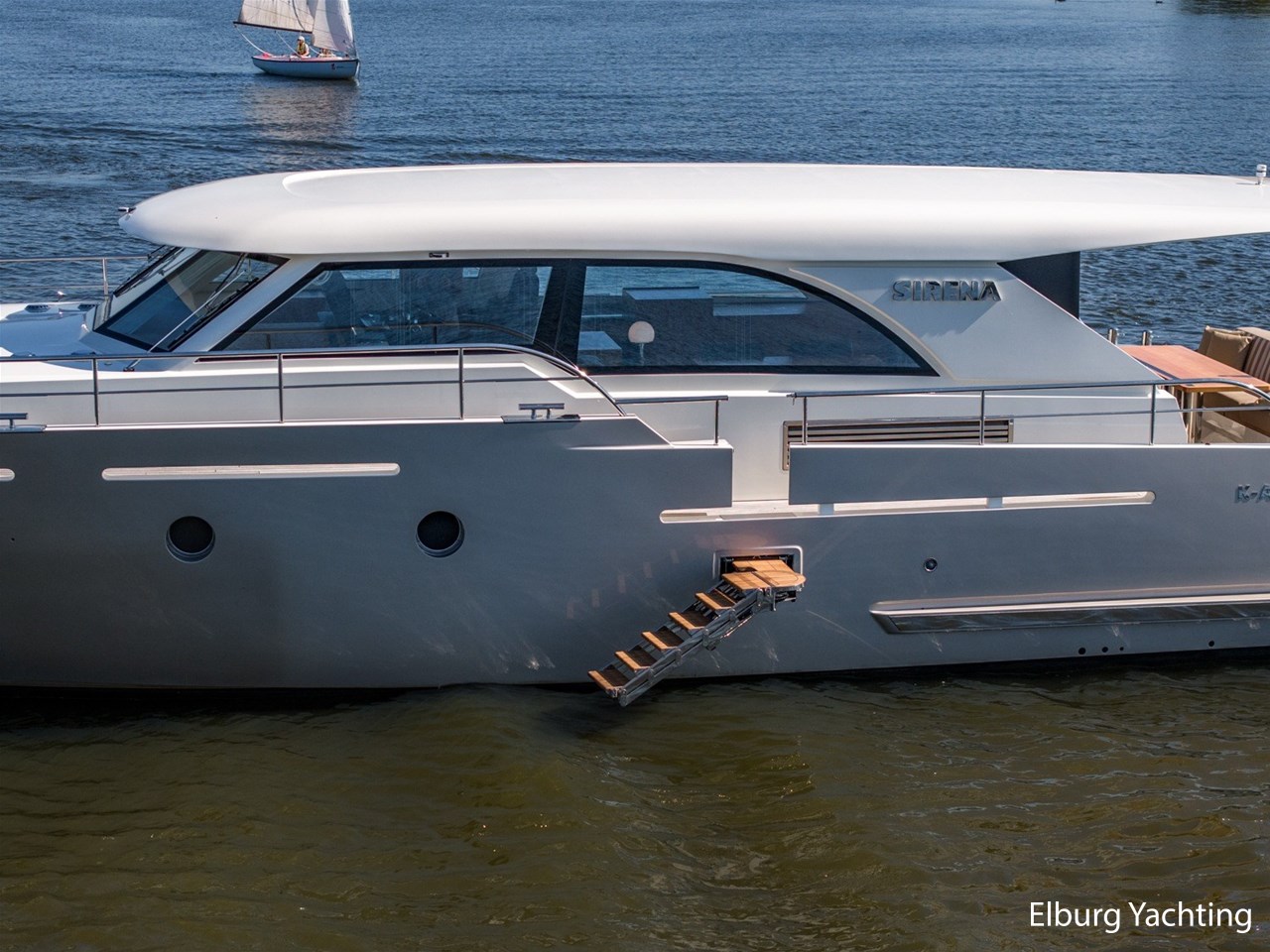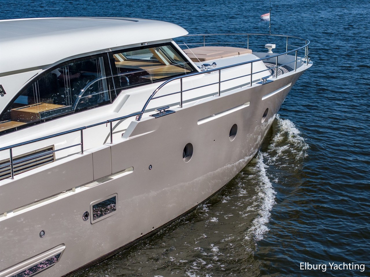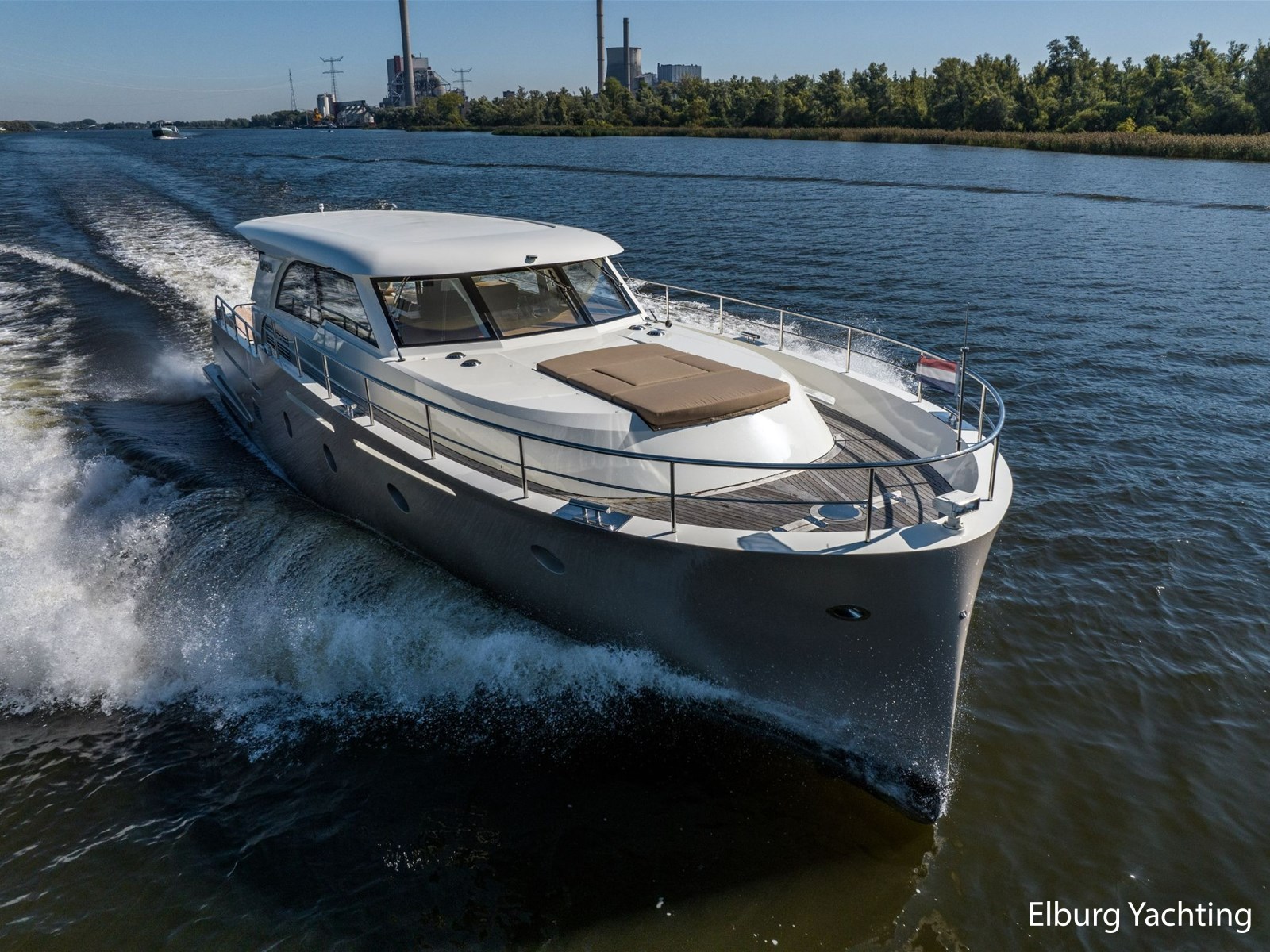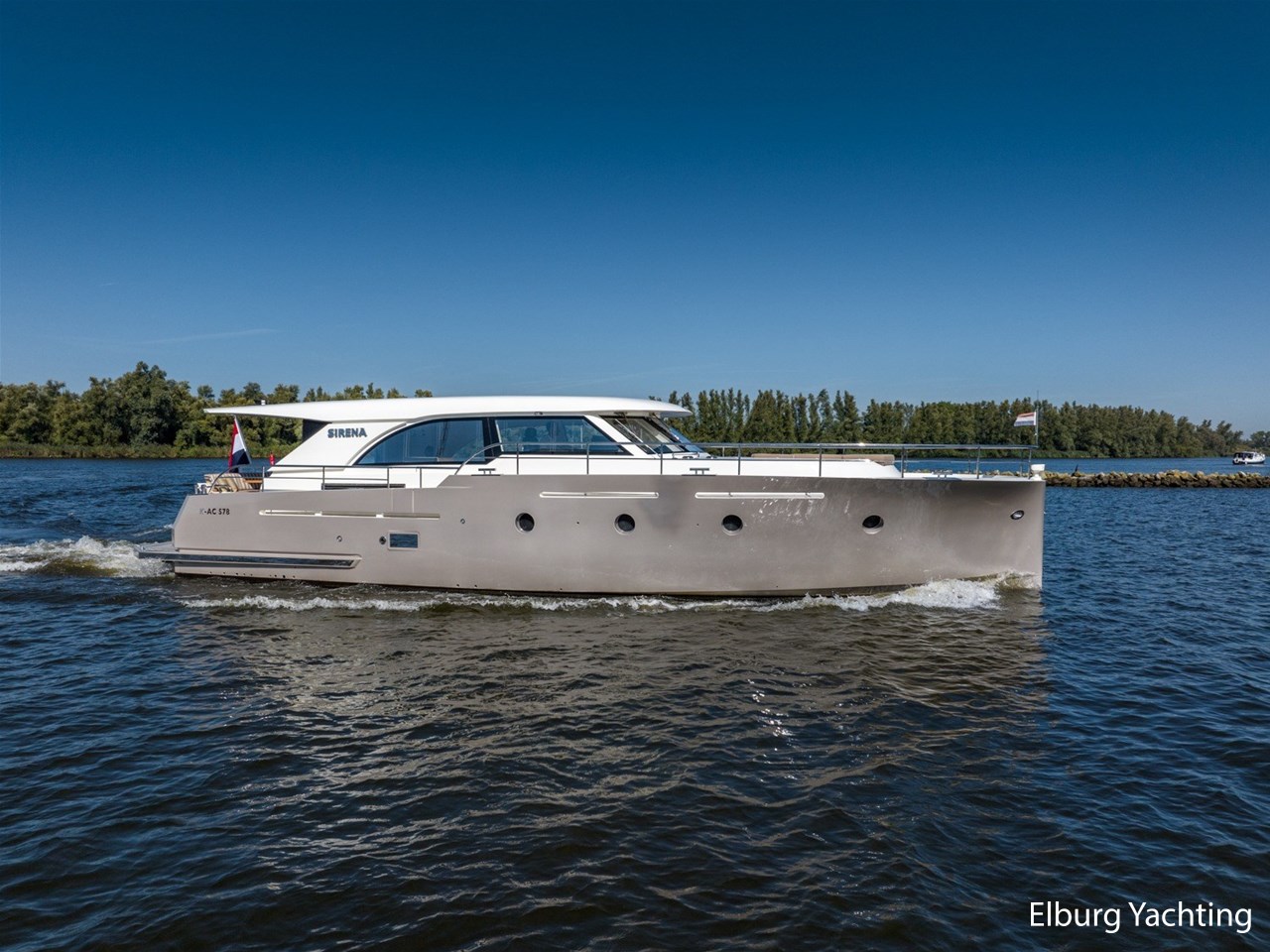 De Altena 52 - Fast Going - Aluminium is een snelvarend aluminium motorjacht ontworpen door Theo Werner, gebouwd door de gerenommeerde Nederlandse scheepswerf Altena. De kuip, salon en het stuurhuis zijn gelijkvloers en staan in open verbinding met elkaar. De r.v.s. schuifpui zorgt voor toegang naar de ruime leefsalon. Benedendeks biedt dit jacht een slaapplaats voor vijf opvarenden, verdeeld in een tweepersoons frans bed in de voorhut / 2 x 1 persoons bed mid-scheeps aan SB zijde / 1 persoons bed mid-scheeps aan BB zijde. Alle hutten beschikken over een eigen douche en toilet ruimte. In de vloer van de openkuip heb je toegang tot een ruime berging en het hart van de elektrische installaties. Een watervaste deur vanuit de ruime berging geeft toegang tot de machinekamer. Uniek zijn de twee geïntegreerde zijtrappen (SB+BB) die op steigerhoogte kunnen worden afgesteld voor het gemakkelijk op en afstappen. Het jacht is o.a. voorzien van verlichting en een verwarmingselement in plafond over achterdek, de kuip is volledig af te sluiten met een afneembare tent, vele r.v.s. details aan dek, 2 x spiegeldeur naar zwemplateau, zonnebed op voordek met afneembare kussens, bergruimte in voorpiek voor fenders en lijnen, veel licht inval en goed zicht rondom door het grote raamoppervlakte, waardoor u kunt genieten van het ultieme gevoel op het water. Verder is zij voorzien van elektrisch bedienbare plissé gordijnen, TV op lift, Volvo Penta dockingstation, AIS, 2 x elektrisch bedienbare telescopische spudpalen (voor + achter) waarmee aanmeren kinderspel wordt en de mooiste ankerlocaties bereikbaar zijn, ruime berging in vloer bij kombuis, tanks met mangaten, professioneel ingerichte machinekamer met goede toegankelijkheid tot de techniek, doorvaarthoogte ca. 3,45m. Voor vragen en/of het maken van een afspraak bent u 7 dagen per week van harte welkom bij Elburg Yachting.