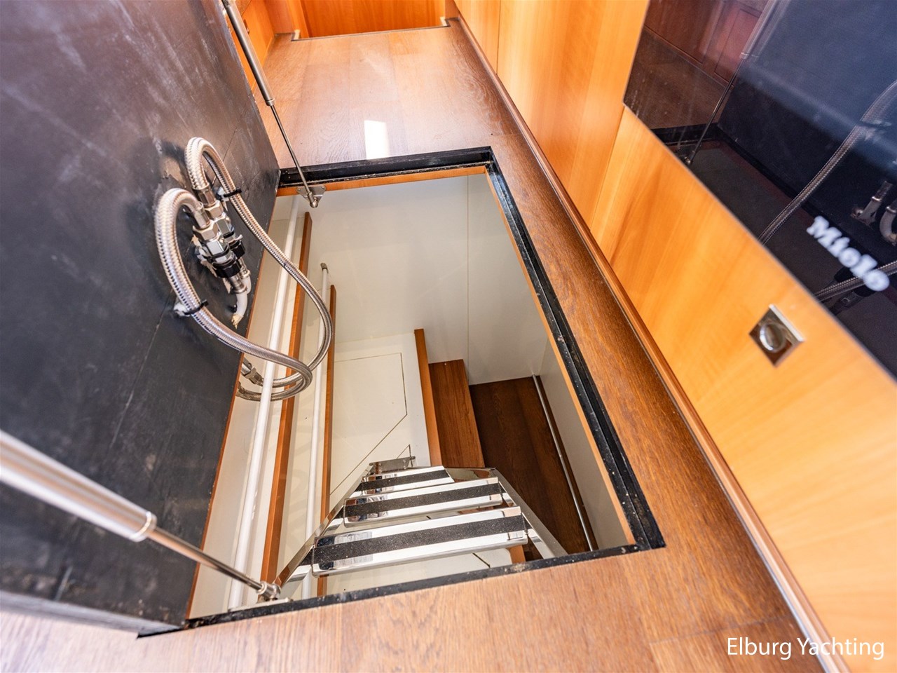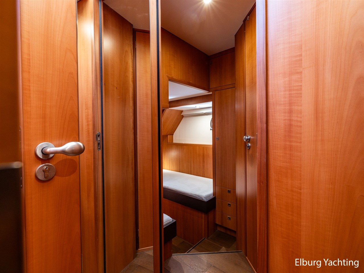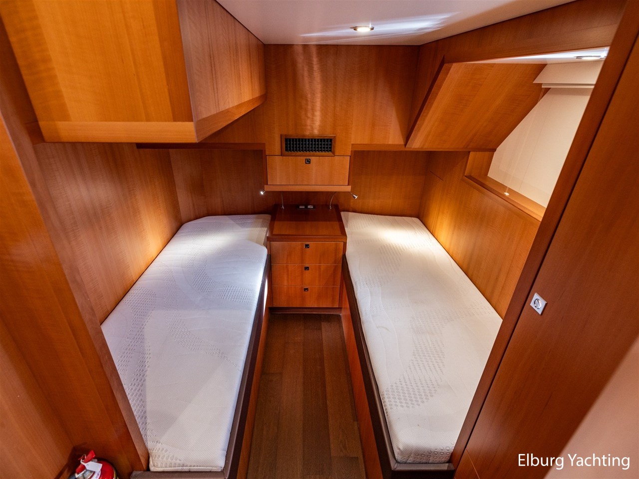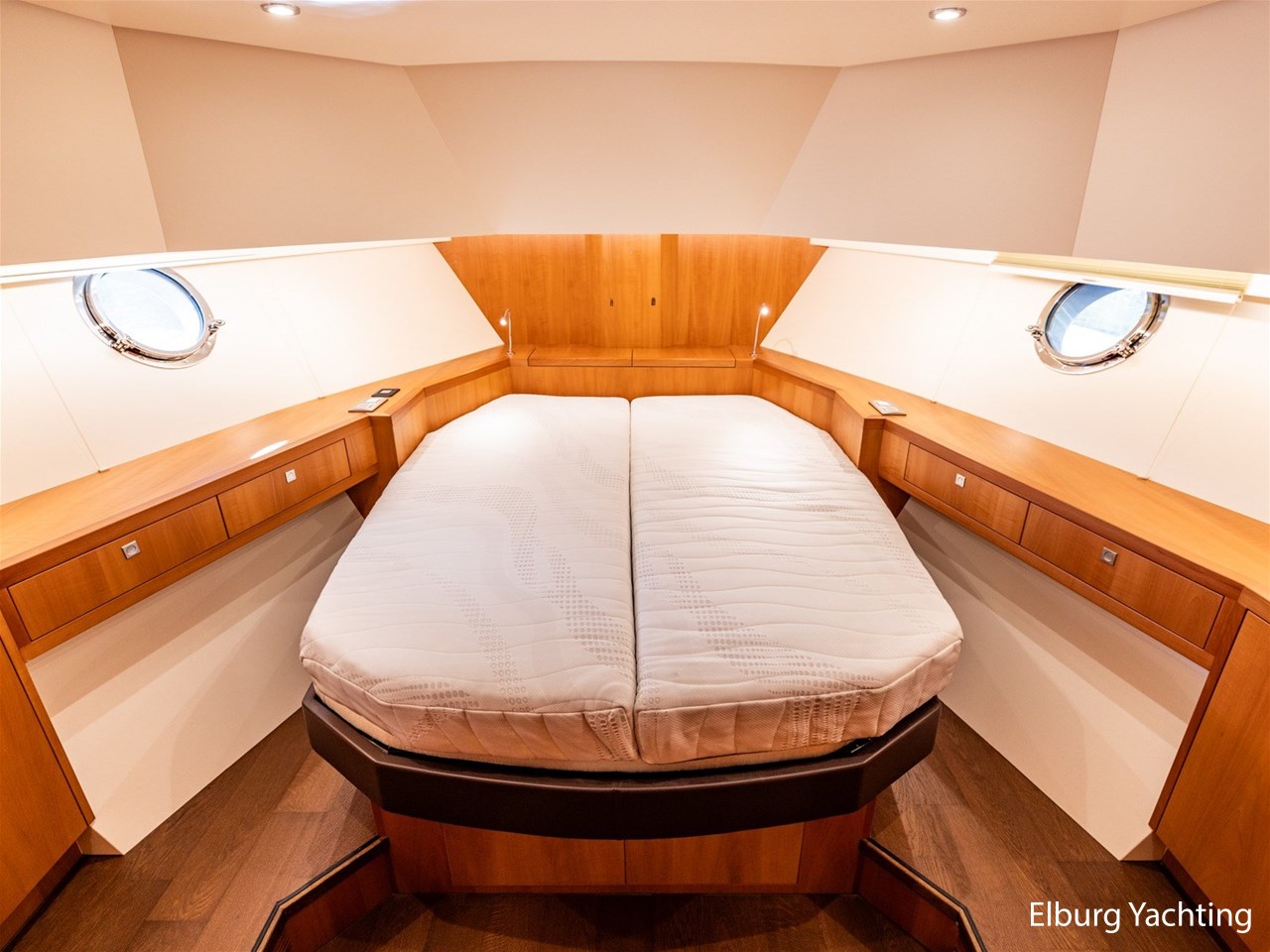 De Altena 52 - Fast Going - Aluminium is een snelvarend aluminium motorjacht ontworpen door Theo Werner, gebouwd door de gerenommeerde Nederlandse scheepswerf Altena. De kuip, salon en het stuurhuis zijn gelijkvloers en staan in open verbinding met elkaar. De r.v.s. schuifpui zorgt voor toegang naar de ruime leefsalon. Benedendeks biedt dit jacht een slaapplaats voor vijf opvarenden, verdeeld in een tweepersoons frans bed in de voorhut / 2 x 1 persoons bed mid-scheeps aan SB zijde / 1 persoons bed mid-scheeps aan BB zijde. Alle hutten beschikken over een eigen douche en toilet ruimte. In de vloer van de openkuip heb je toegang tot een ruime berging en het hart van de elektrische installaties. Een watervaste deur vanuit de ruime berging geeft toegang tot de machinekamer. Uniek zijn de twee geïntegreerde zijtrappen (SB+BB) die op steigerhoogte kunnen worden afgesteld voor het gemakkelijk op en afstappen. Het jacht is o.a. voorzien van verlichting en een verwarmingselement in plafond over achterdek, de kuip is volledig af te sluiten met een afneembare tent, vele r.v.s. details aan dek, 2 x spiegeldeur naar zwemplateau, zonnebed op voordek met afneembare kussens, bergruimte in voorpiek voor fenders en lijnen, veel licht inval en goed zicht rondom door het grote raamoppervlakte, waardoor u kunt genieten van het ultieme gevoel op het water. Verder is zij voorzien van elektrisch bedienbare plissé gordijnen, TV op lift, Volvo Penta dockingstation, AIS, 2 x elektrisch bedienbare telescopische spudpalen (voor + achter) waarmee aanmeren kinderspel wordt en de mooiste ankerlocaties bereikbaar zijn, ruime berging in vloer bij kombuis, tanks met mangaten, professioneel ingerichte machinekamer met goede toegankelijkheid tot de techniek, doorvaarthoogte ca. 3,45m. Voor vragen en/of het maken van een afspraak bent u 7 dagen per week van harte welkom bij Elburg Yachting.