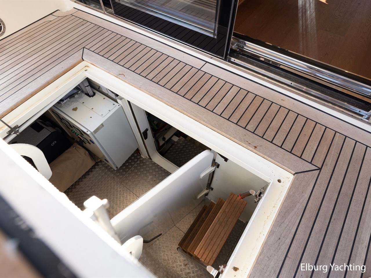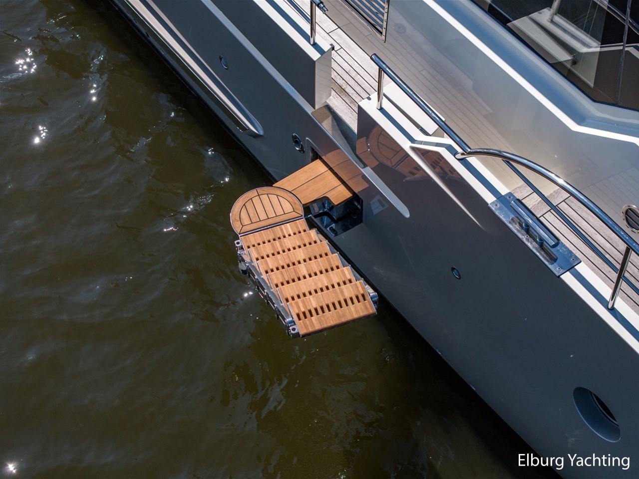 Geïntegreerd met teak + r.v.s. zwemtrap