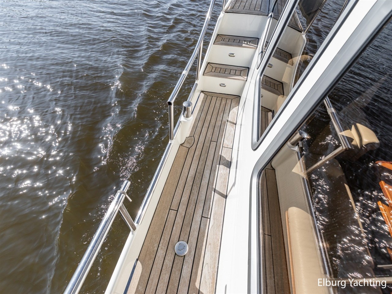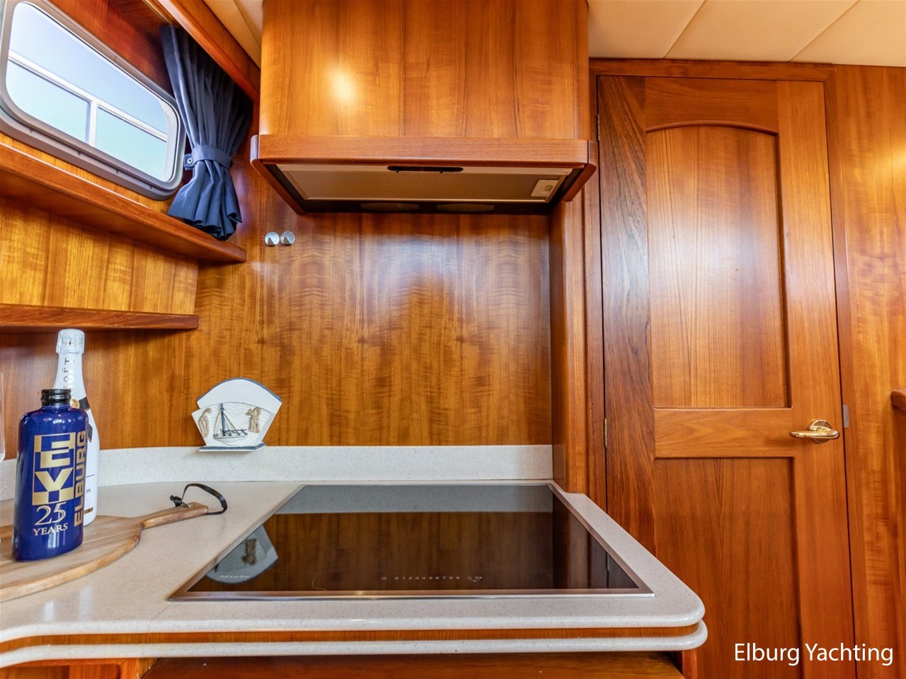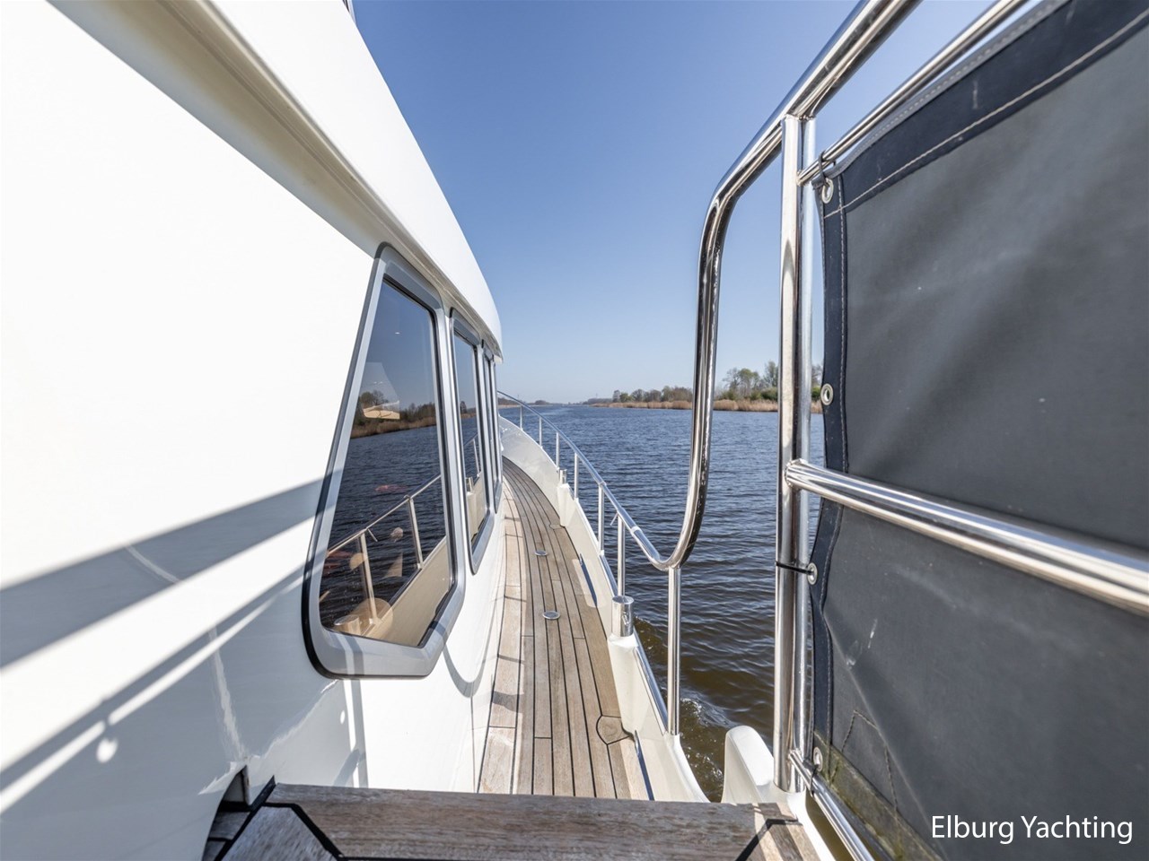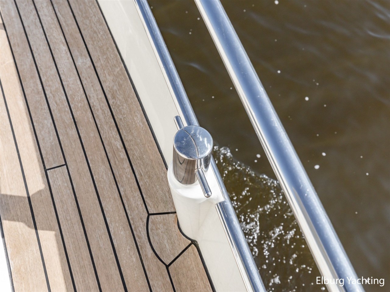 Verder uitgerust met een zeer overzichtelijke motorkamer met alle componenten bereikbaar, Corian werkbladen in kombuis en natte ruimtes, comfortabele stuurstoel, bimini, kussens op vaste bakskisten, prachtige hoogglans kuiptafel op 2 dikke RVS poten, dubbele bolders voor en achter, WIFI + router, 2 x middenbolder aan beide boorden, doorgang in zeereling midscheeps, 2 x klapbaar raam in salon, breed gangboord met vaste verschansing, poolanker met RVS slijtstrips op romp, 5 x voorraam, RVS handgrepen op opbouw voorschip, anti-fouling vernieuwd 2025.