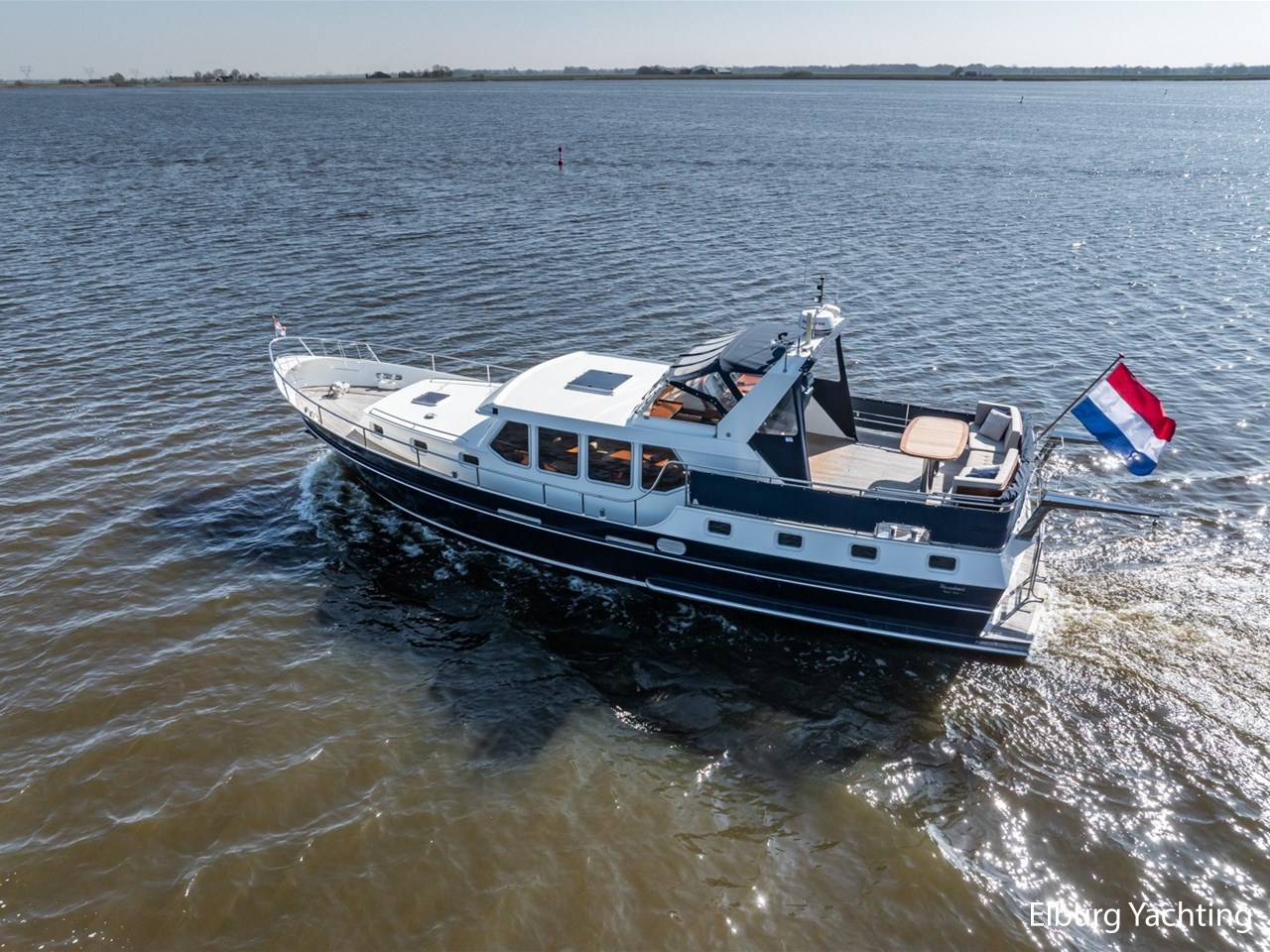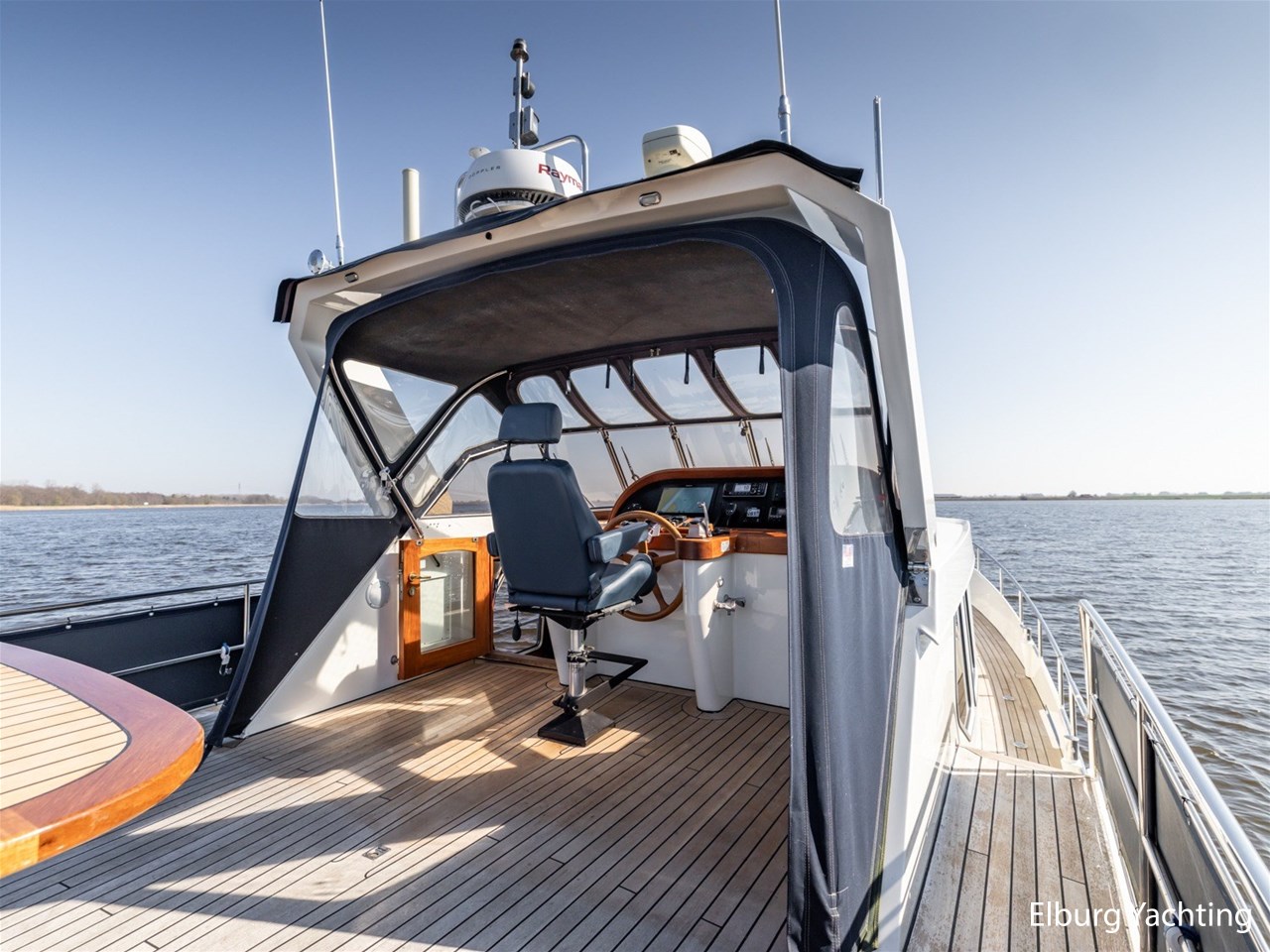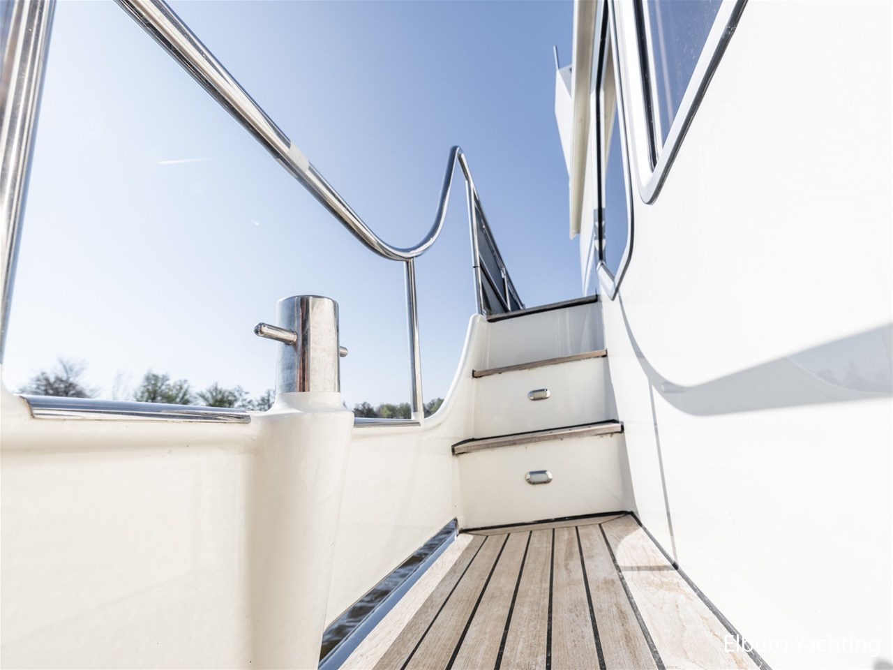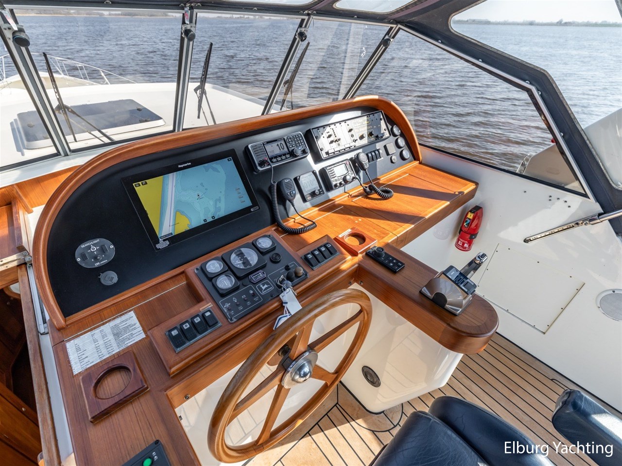 Verder uitgerust met een zeer overzichtelijke motorkamer met alle componenten bereikbaar, Corian werkbladen in kombuis en natte ruimtes, comfortabele stuurstoel, bimini, kussens op vaste bakskisten, prachtige hoogglans kuiptafel op 2 dikke RVS poten, dubbele bolders voor en achter, WIFI + router, 2 x middenbolder aan beide boorden, doorgang in zeereling midscheeps, 2 x klapbaar raam in salon, breed gangboord met vaste verschansing, poolanker met RVS slijtstrips op romp, 5 x voorraam, RVS handgrepen op opbouw voorschip, anti-fouling vernieuwd 2025.