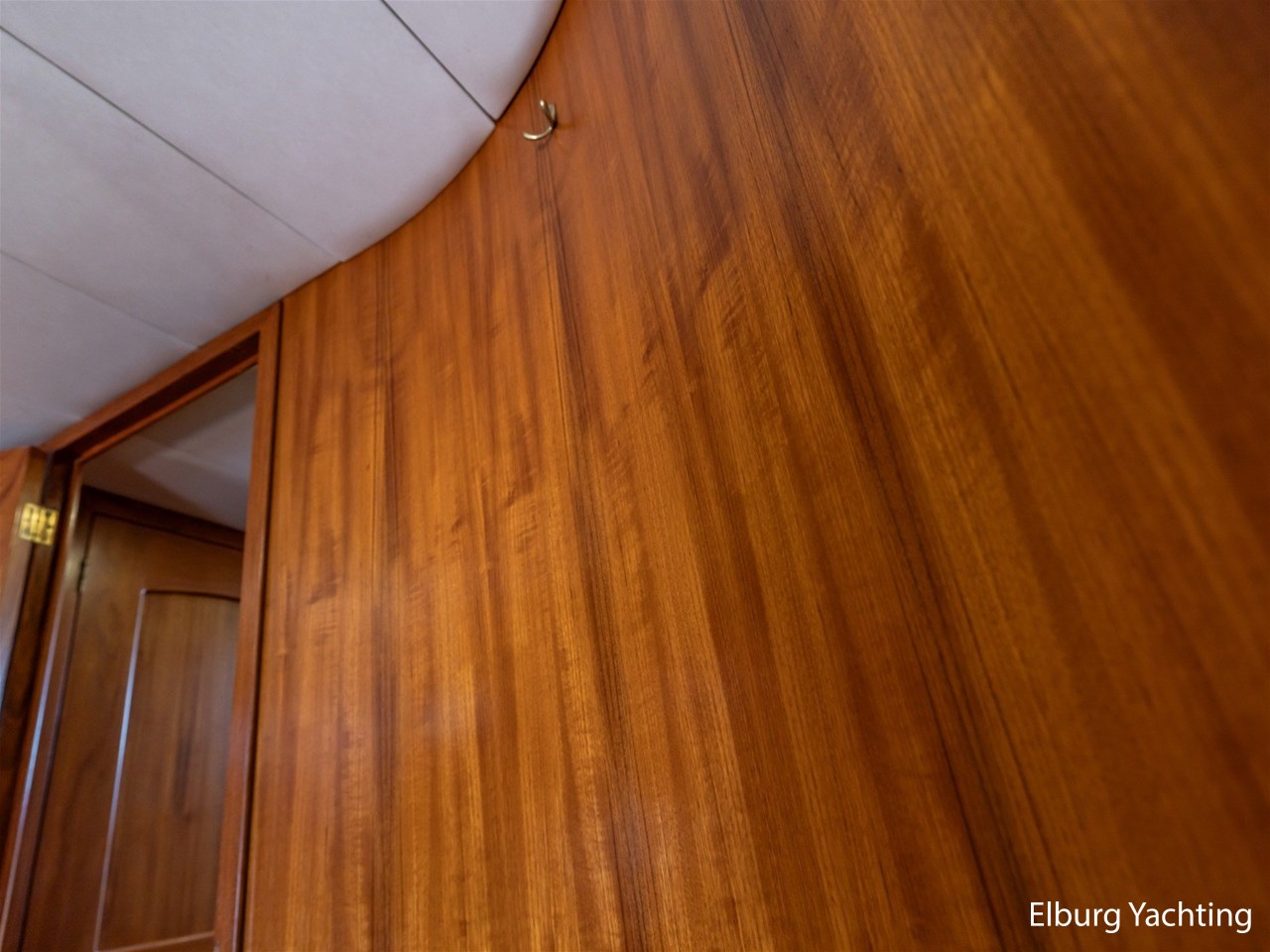 - Zeer hoogwaardig teakhouten interieur + Merbau treden + veel rondingen in de houtafwerking