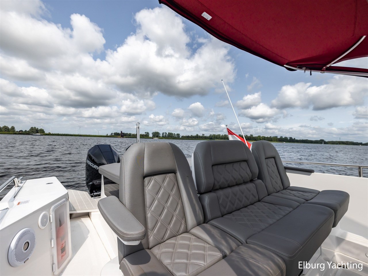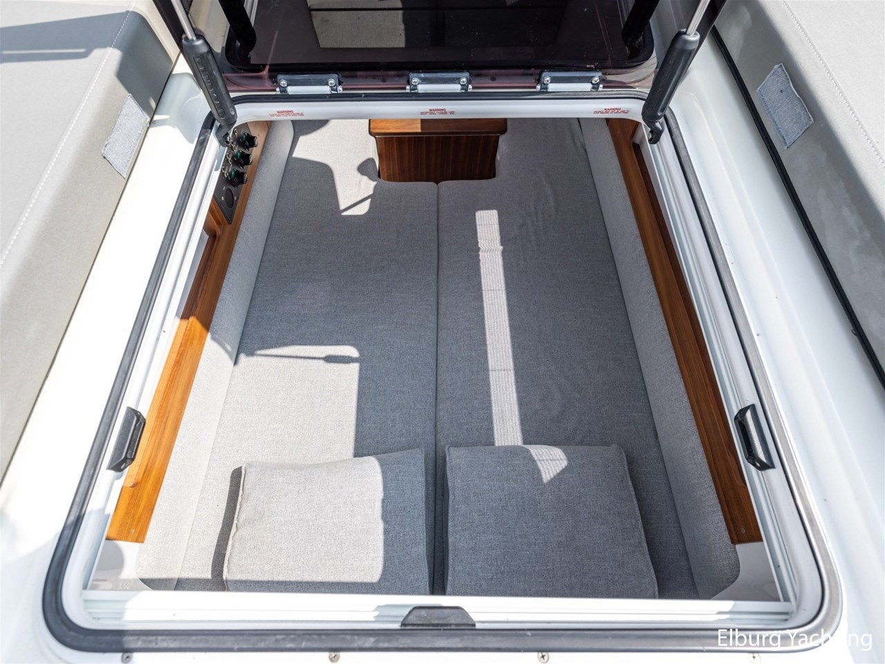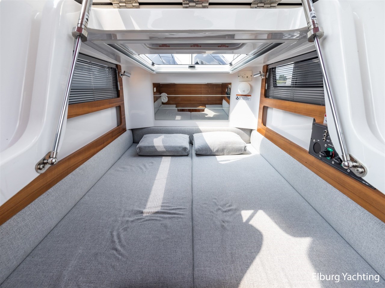 De optionele achterkajuit biedt een comfortabele slaapgelegenheid voor twee personen en dient tevens als zonnedek. De bestuurdersstoelen kunnen worden omgedraaid waardoor er een eet gelegenheid ontstaat.