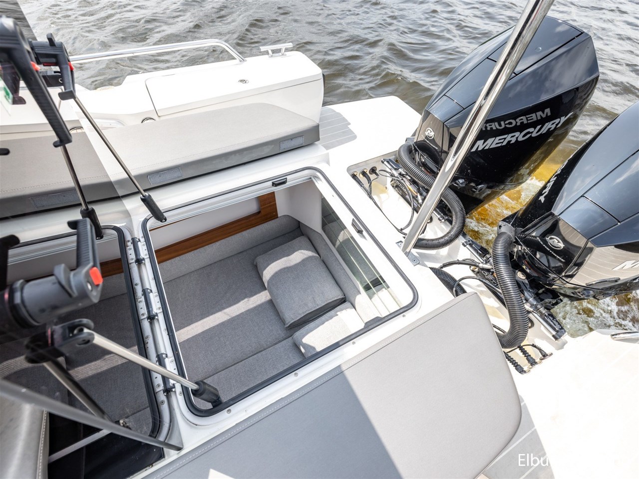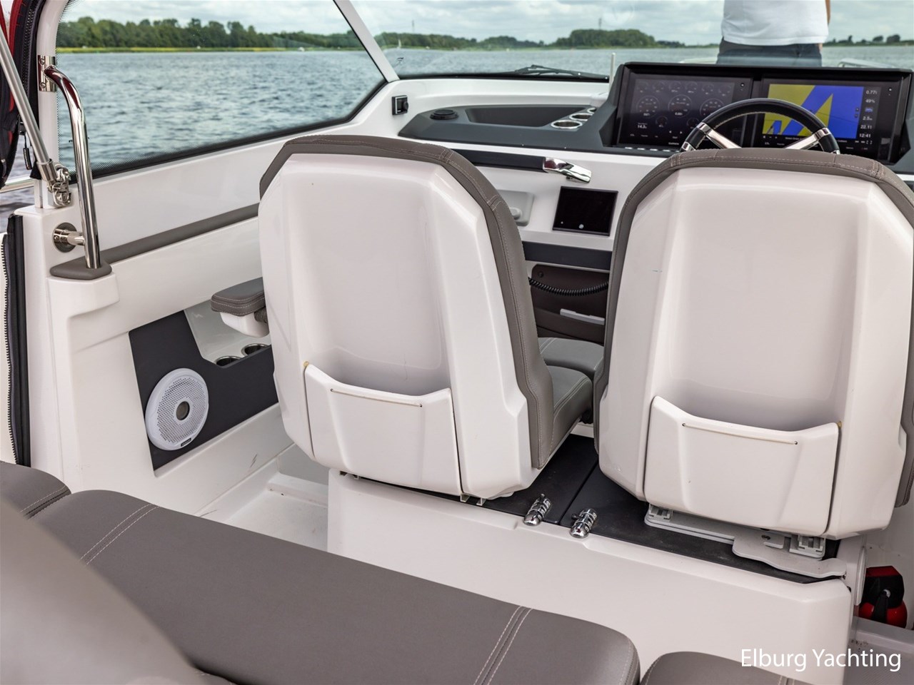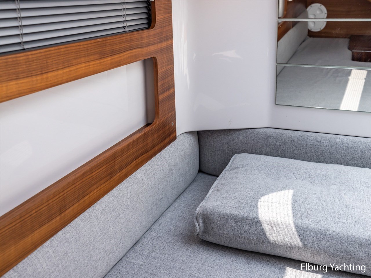 De optionele achterkajuit biedt een comfortabele slaapgelegenheid voor twee personen en dient tevens als zonnedek. De bestuurdersstoelen kunnen worden omgedraaid waardoor er een eet gelegenheid ontstaat.