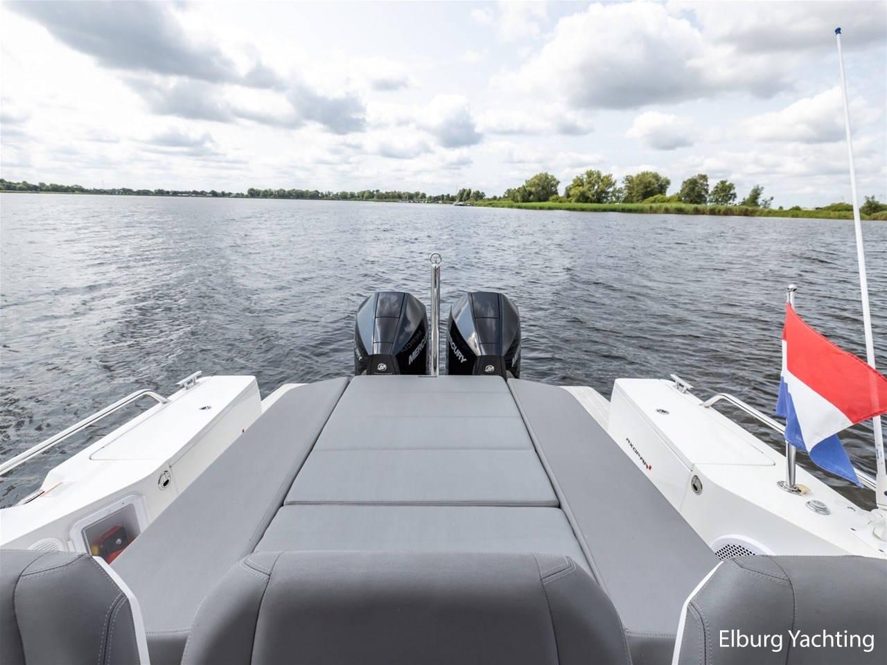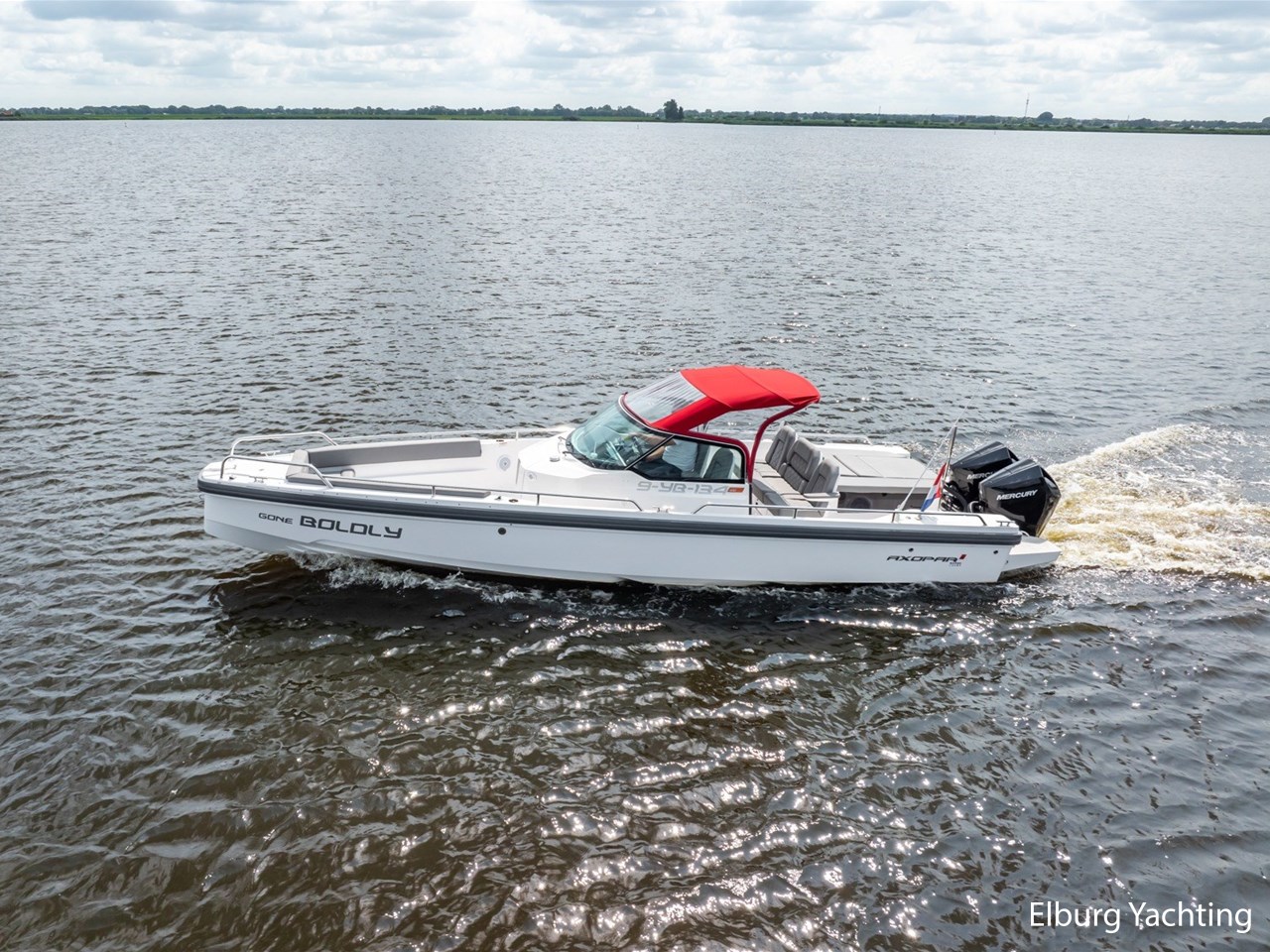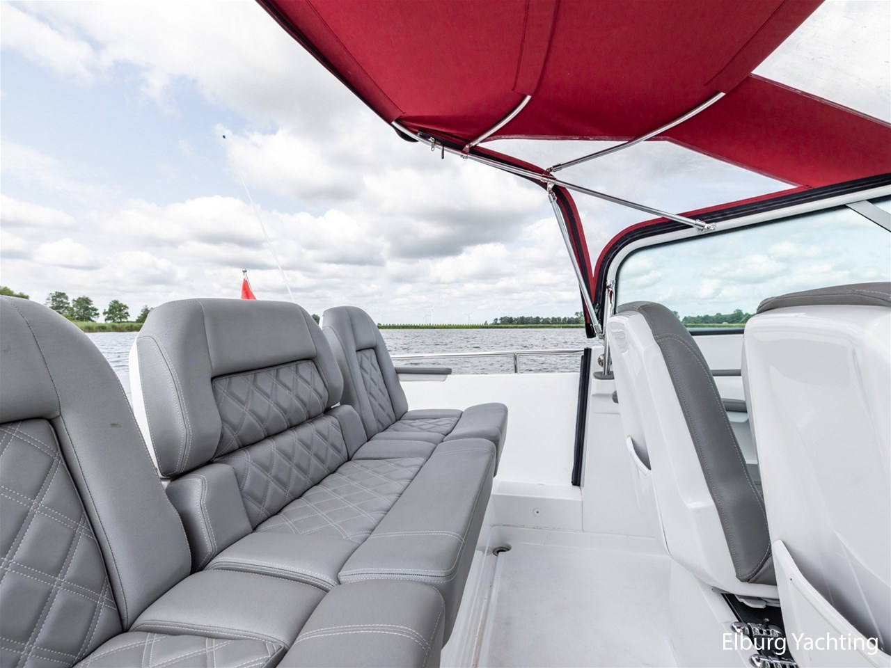 De Axopar 28 Open is een modern vaartuig met een wendbare en zuinige romp. Door zijn brede gangboorden kunt u zich gemakkelijk door de boot bewegen.