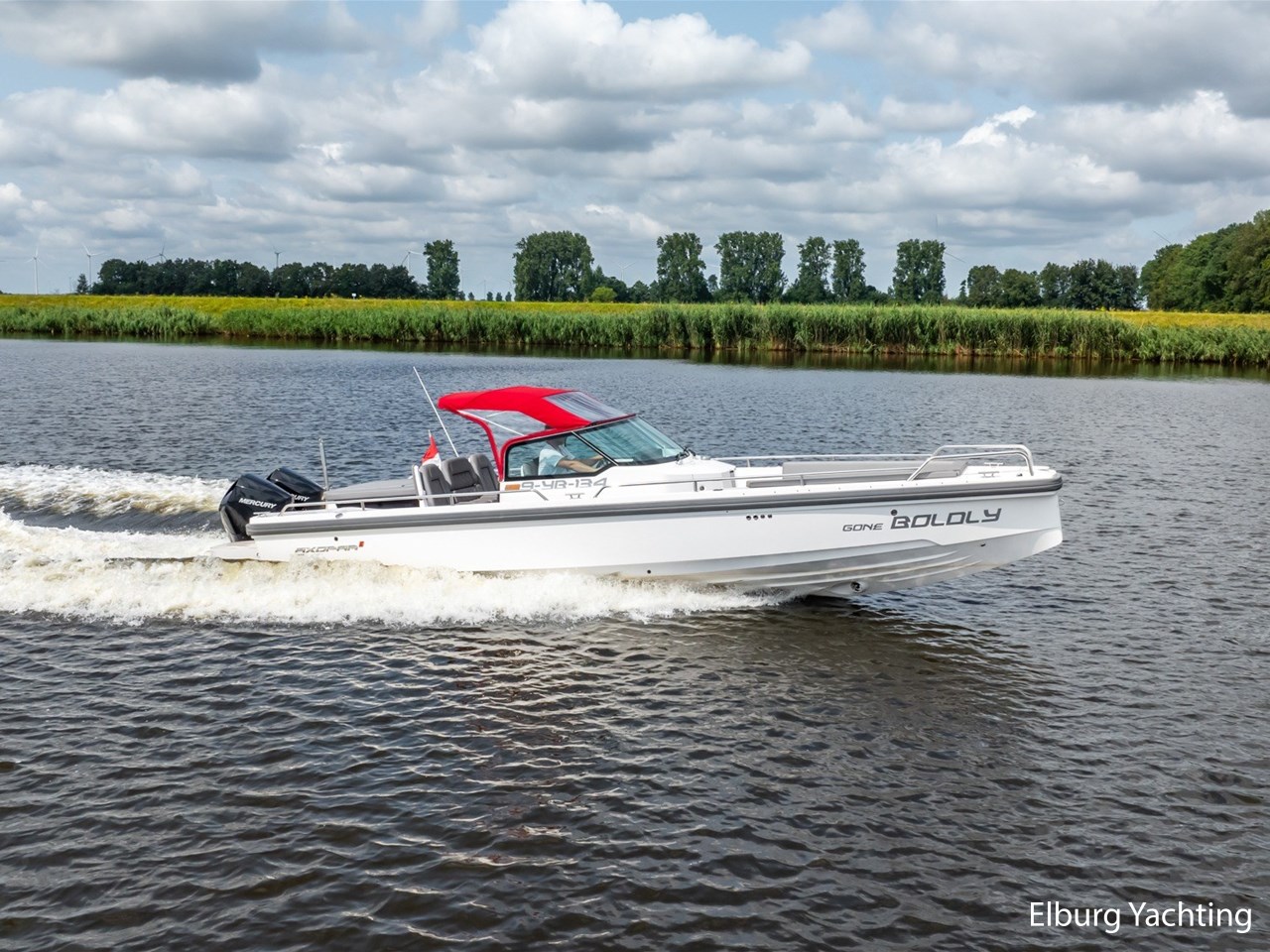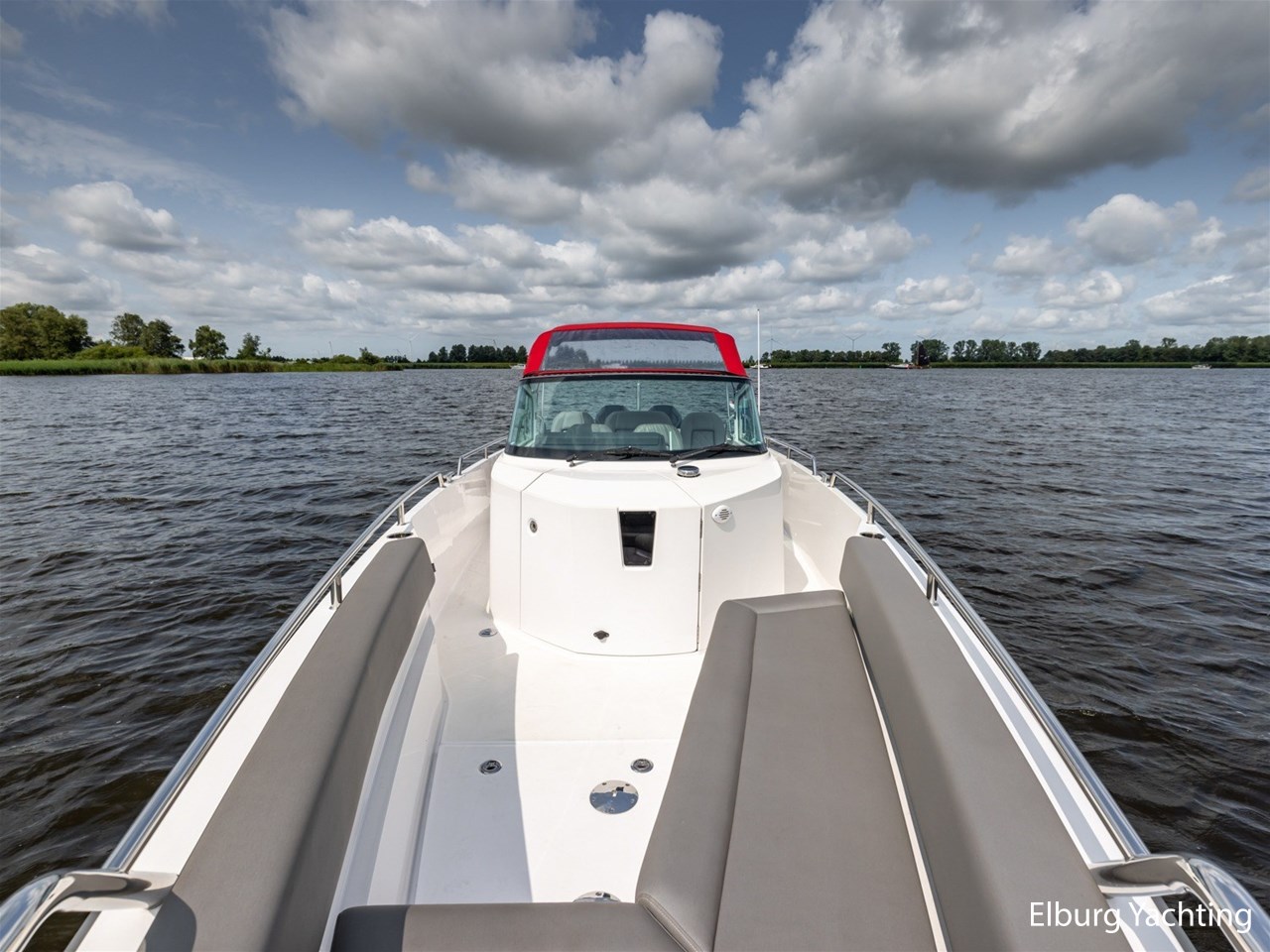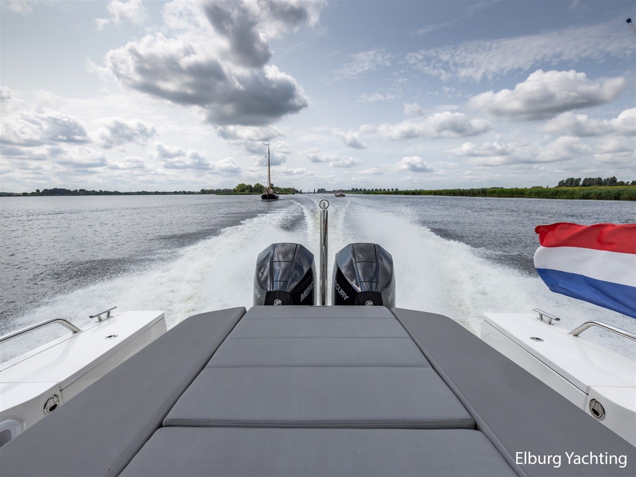 De Axopar 28 Open is een modern vaartuig met een wendbare en zuinige romp. Door zijn brede gangboorden kunt u zich gemakkelijk door de boot bewegen.