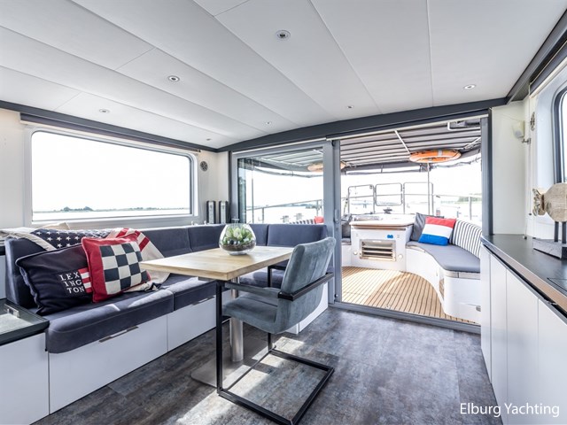 Het jacht is voorzien van een CBB certificaat Rijn, geldig tot 2027, laden van de accu's gebeurt in volgorde a) zonnepanelen b) walstroom en c) kleine generator via autostart als laadstatus onder 60% is, of als de motor draait via de 140 A dynamo, Leeuwenstein spudpalen 4.50 meter onder het schip, zeer complete documentatie met tekeningen, schema's en isolatieplan, complete eigenaarshistorie bekend, camerasysteem (boeg / mast voorwaarts / beide gangboorden voorwaarts / achteruit vanaf dak / motorkamer), was-droogcombinatie Siemens (2024), Siemens vaatwasser, dekwaspomp (gebruikt uit watertank) Router met WIFI, buitenkussens kuip (2024), kuiptent geïmpregneerd 2024, beunkoeling, bijboot 2012, RVS BBQ-plateau aan kuiprand, geventileerde elektraruimte in boeg met accu's, omvormers, walscheidingstrafo etc., zoeklicht, blauw bord (voor passeren stuurboord-stuurboord op de rivieren), sunscreens bij de voorste schuif zijramen en midden voorraam, hor bij beide dakluiken, lamellen stuurhuis, dekdouche in kuip, perslucht middels compressor, Promac-Stuwa hoofd-noodbesturing, noodbedieningspaneel hoofdmotor en keerkoppeling, touchscreen, roerstandaanwijzer op Sigma 500, Intelivision scherm voor uitgebreide motorinformatie tijdens vaart, zeer veel RVS aan dek en verwerkt in casco, automatisch vetsmeringssysteem, reserve filters en snaren, 2 x carrousselkasten in kombuis.