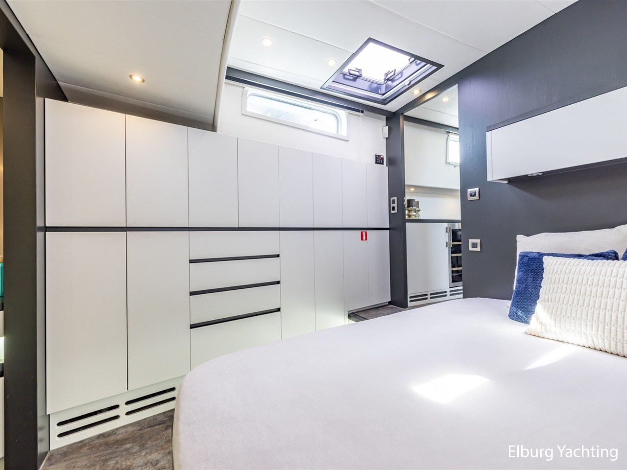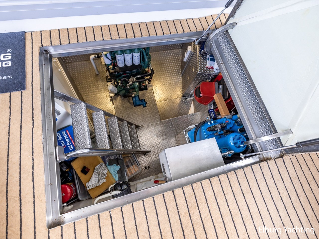 - Kabola HR 500 (19,7 kW) met vloerverwarming door gehele schip + Mar-IX airco in eigenaarshut op 24 Volt