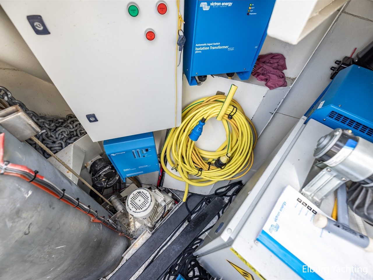 - Boeg; Elsto Elektrisch 400 Volt, 2,5 kW met twee poolankers van 95kg ieder. Hek: Elsto elektrisch 400 Volt met anker en ankerlijn, Leeuwenstein spudpalen.