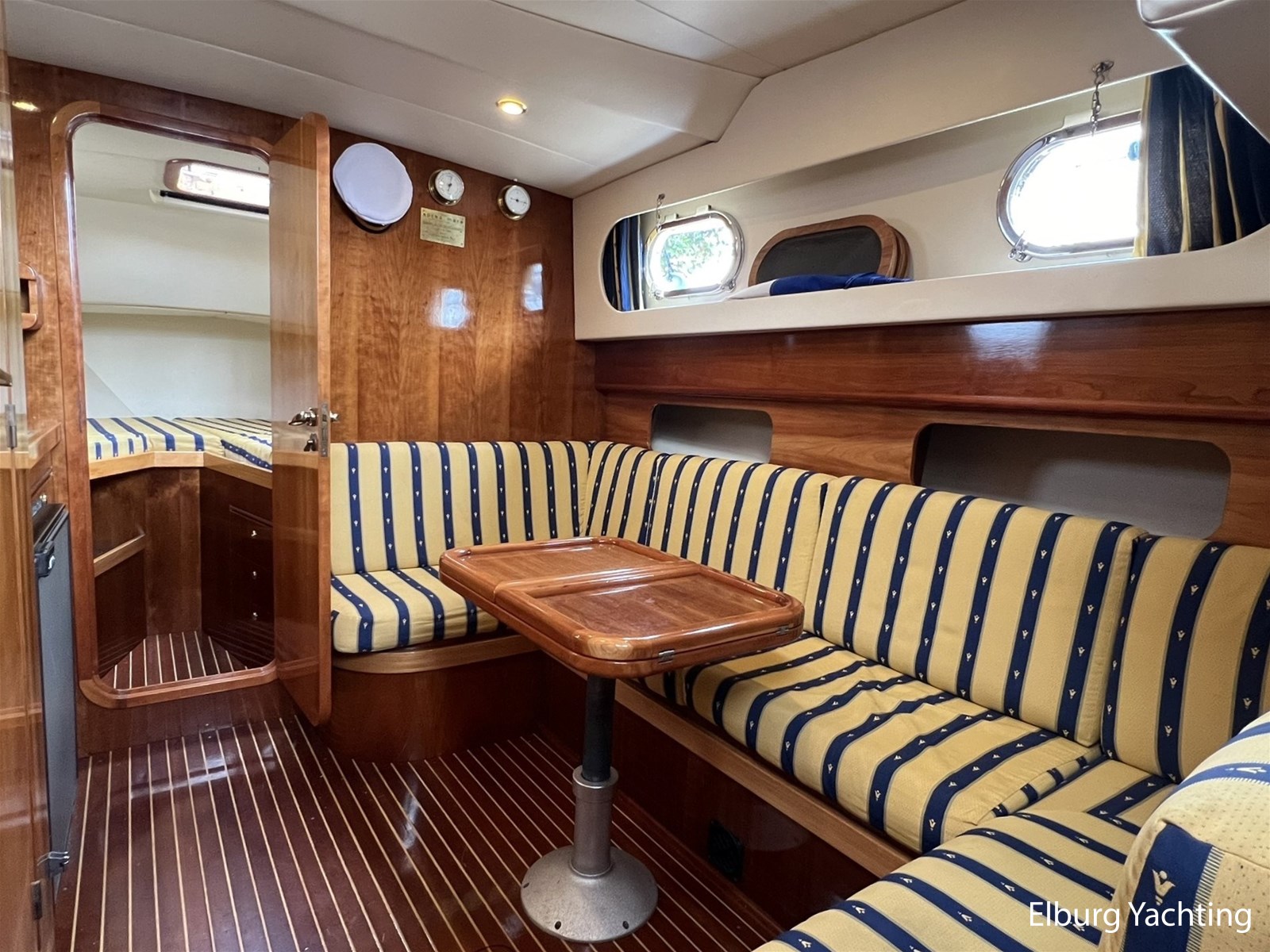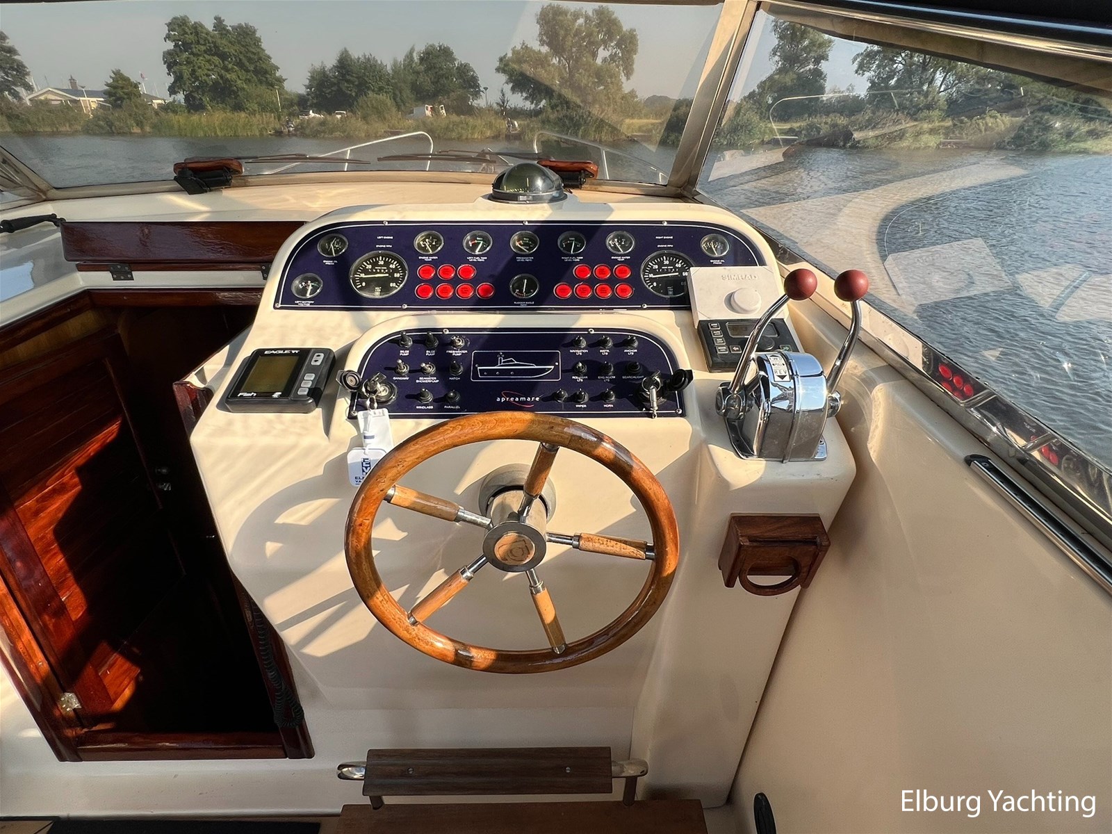Origineel Nederlands geleverde Apreamare 9 Semi Cabinato. Met haar charmante klassieke uitstraling is het een mooie verschijning op het water. Deze Apreamare is uitgerust met: Afsluitbare tent rondom stuurstand, geintegreede kuipbanken met bijbehorende kussens (2021), groot zwemplatform, Bluetooth radio + 2 x buiten speakers, LED verlichting in salon, vaste stuurstoel + meevaarbank, TV in salon, zonnebed op voordek, r.v.s. railing + r.v.s. bolders, dekwaspomp, elektrisch beweegbaar motorluik. In 2024 is al het houtwerk aan de buitenzijde kaal gehaald en daarna voorzien van 7 lagen Sigma Cetol TGX Gloss en nieuwe kitnaden aangebracht. Verder zijn er in 2024 de volgende werkzaamheden uitgevoerd: Antifouling en anodes vernieuwd, lichtaccu vervangen, acculader vernieuwd, verlichting spots vervangen door LED, Victron 2000W omvormer geïnstalleerd. In 2021 is het volledige dek vervangen voor kunststof Flexiteek voor minimaal onderhoud aan het dek.