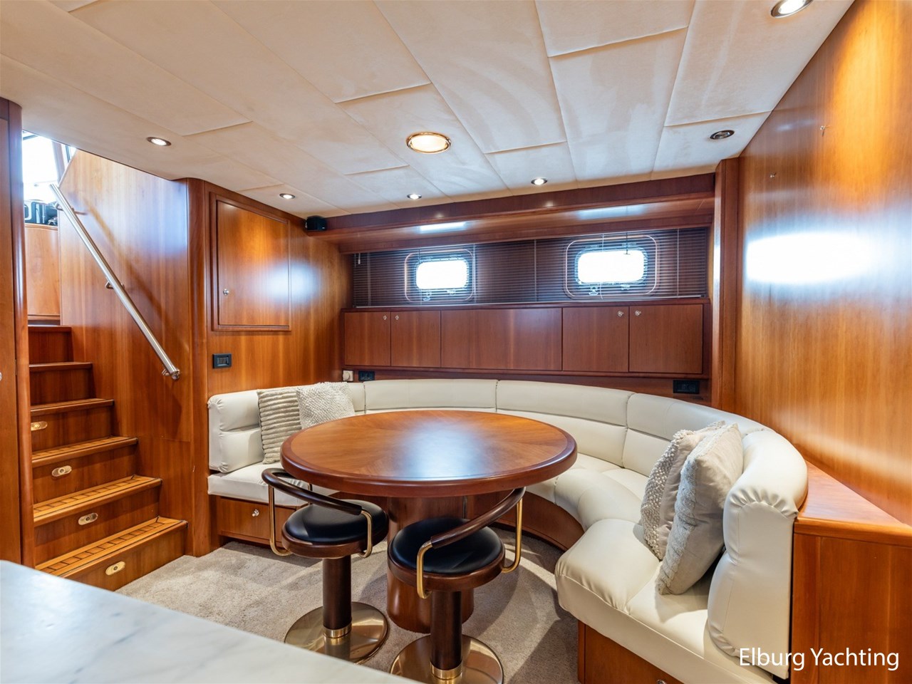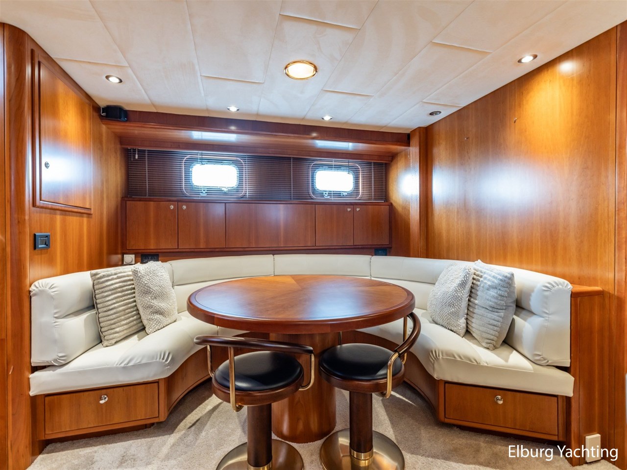 - Kersen scheepsinterieur + alcantara plafonddelen + teak vloer in de keuken