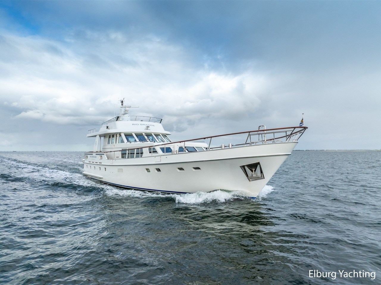 Deze Moonen 68 'Rio Grande' is gebouwd voor een zeer ervaren eigenaar uit de beroepsvaart. Tijdens de bouw is op verzoek van de eigenaar het schip geluidsarm gemaakt na een akoestisch onderzoek door Van Cappellen, hierdoor is het schip extra goed geïsoleerd en geluidsarm. De huidige en 3e eigenaar van de Rio Grande heeft in 2021 een flybridge laten vervaardigen waarmee er een prachtige extra zitgelegenheid is gecreëerd en een extra stuurstand met alle basis functies. De flybridge is ontworpen en gebouwd door Nederlandse gerenommeerde partijen in de scheepsbouw. Aan boord staan naast de 20 mappen van Moonen van de bouw en ook 2 nieuwe mappen waarin de refit en opbouw Flybridge goed is gedocumenteerd. Alle tekeningen en berekeningen zijn daarin opgenomen. Met de refit in 2021 zijn de o.a. de volgende werkzaamheden uitgevoerd: Gehele schip opnieuw gestoffeerd, matrassen vernieuwd, extra kinderbed aangebracht in SB voorhut, verlichting geheel vervangen voor LED verlichting, zonwering binnenzijde / jaloezieën aangebracht, AIS Class A & Navigatieapparatuur vervangen met PC Navigo, motorbediening en actuatoren vervangen (Aventics / Bosch / Rexroth), volledig nieuwe flybridge geplaatst met banken en windscherm, tweede stuurstand op flybridge geplaatst, extra tendersteunen aan achterzijde geplaatst voor Williams Sport 395 (niet inbegrepen), nieuwe keuken geplaatst in stuurhuis met koelkast/kookplaat/wasbak/kastruimte, keuken / dinette benedendeks gerefit, nieuwe tent rondom kuip, nieuwe zeilen en buitenzonwering, teakdekken waar nodig hersteld / gereinigd / geschuurd, potdeksels en houtwerk buitenzijde opnieuw gelakt, stabilisatoren gereviseerd, schroefassen en schroeven gebalanceerd, alle pompen voorzien van nieuwe rubbers, hydrofoor en pomp vernieuwd, watertank gereinigd.