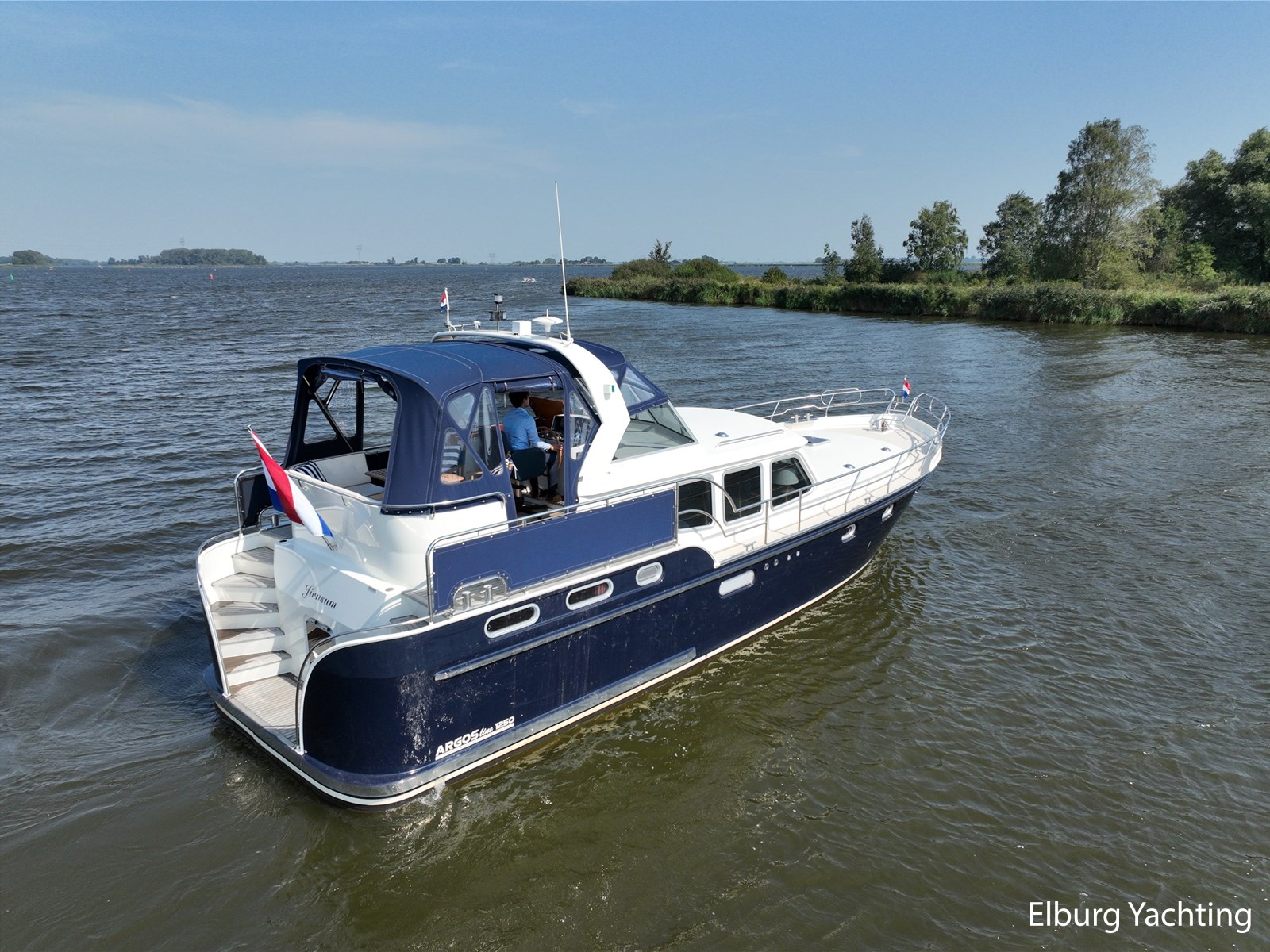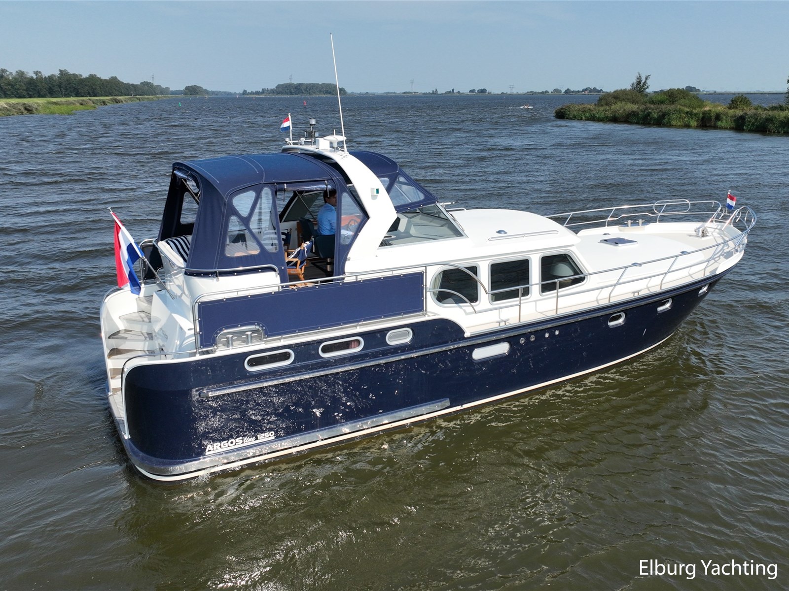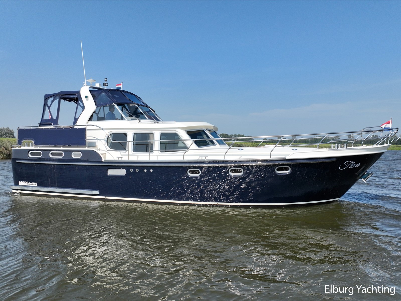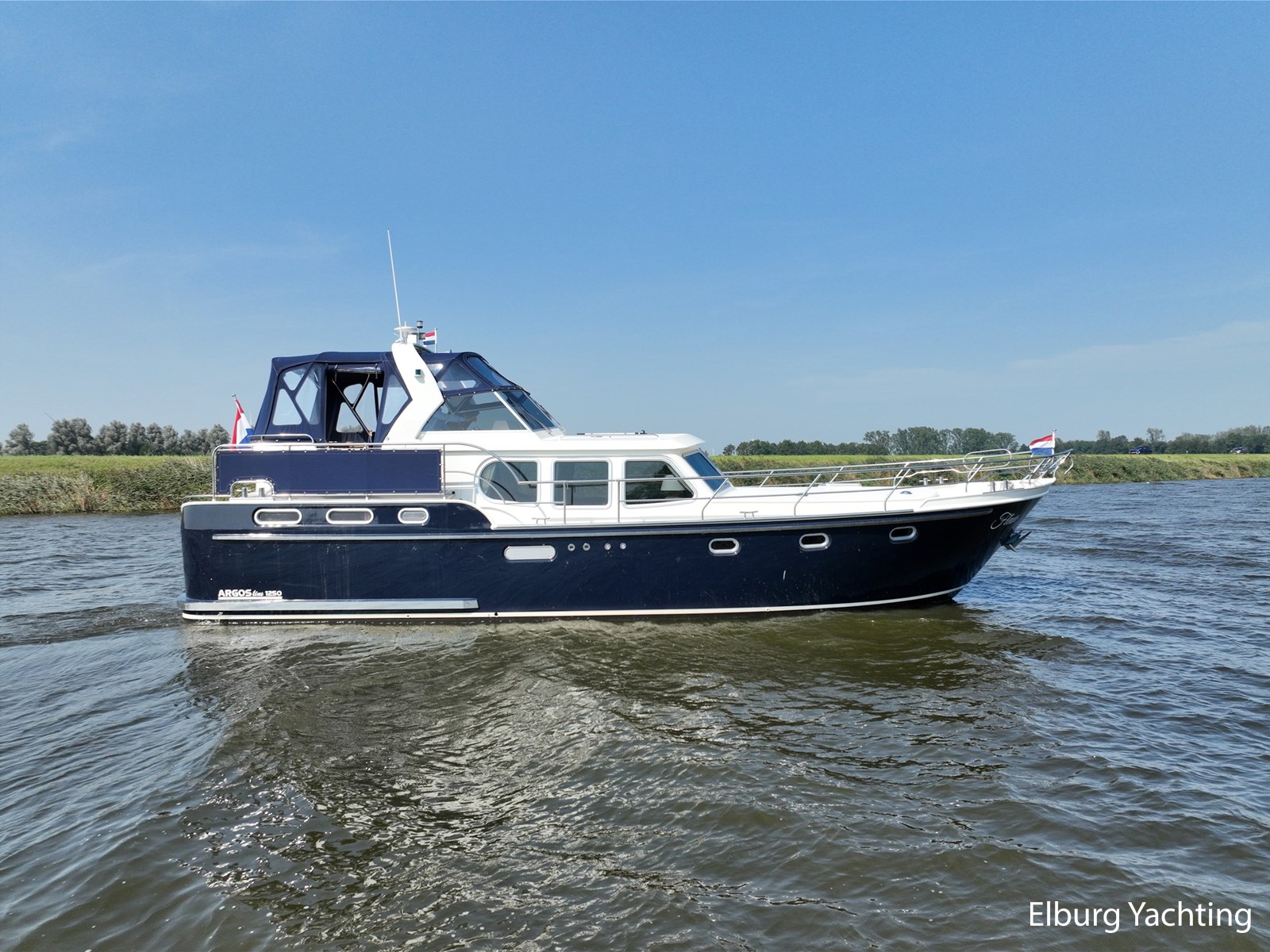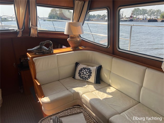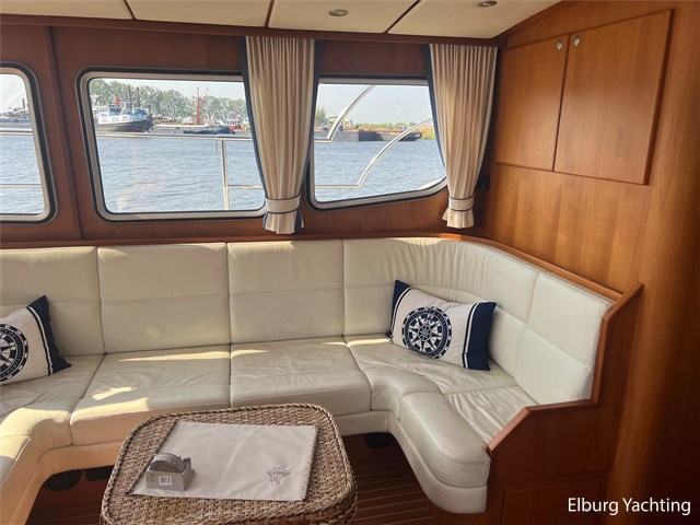 Deze Argos Line 12.50 wordt gekenmerkt door haar grote leefruimte zowel aan dek als in het interieur. Het schip heeft een ruime u bank op het achterdek met een comfortabele zit. De tent is over het gehele achterdek afsluitbaar zodat er ook met minder weer comfortabel buiten gezeten kan worden in combinatie met de uitblaasopeningen van de verwarming. De ramen in de tent zijn in 2024 vervangen. Daarnaast beschikt het schip over twee zeer ruime luie trappen naar het achterdek wat het zwemmen of op en afstappen erg vergemakkelijkt. Binnen is het schip uitgerust met een volwaardige salon, dinette en twee riante hutten met een vrijstaand bed en een frans bed. Verder wordt dit schip geleverd met o.a: r.v.s. bolders, ruime gangboorden, 2 x uitsparing in reling voor gemakkelijk afstappen, separate r.v.s. trap om vanuit de reling op laaggelegen steiger te komen, dubbele r.v.s. reling rondom, klapbare beugel, stalen gangboorden, overzichtelijk dashboard, ruim opgezet interieur, 3 x ruitenwissers, verlaagbare tafel in dinette voor extra te creëren slaapmogelijkheid, dubbel glas, vanaf boven de waterlijn volledig geisoleerd, raam in spiegel eigenaarshut, muggenhorren, separate douche, dubbele dynamo. Voor vragen en/of het maken van een afspraak bent u 7 dagen per week van harte welkom bij Elburg Yachting.