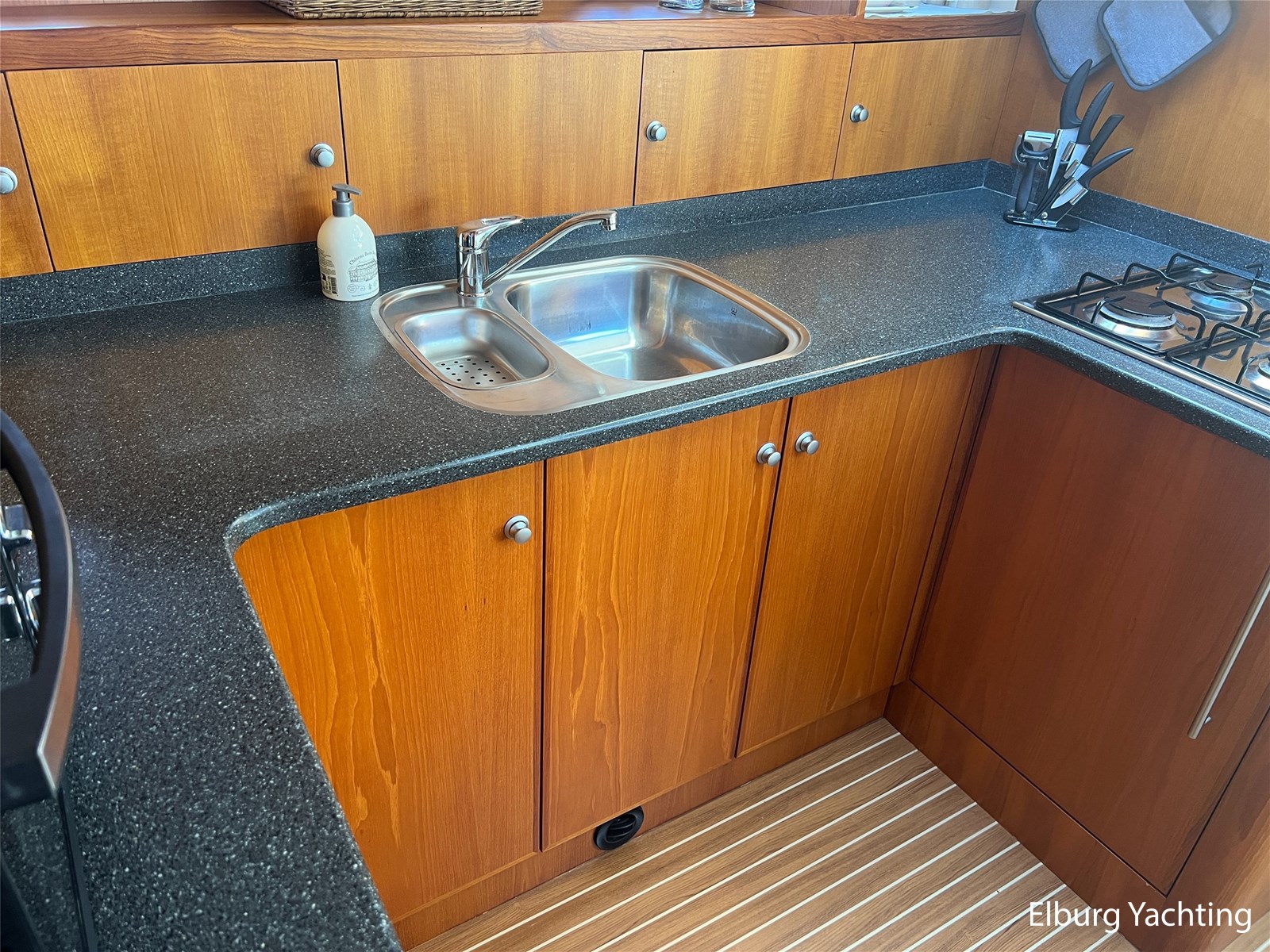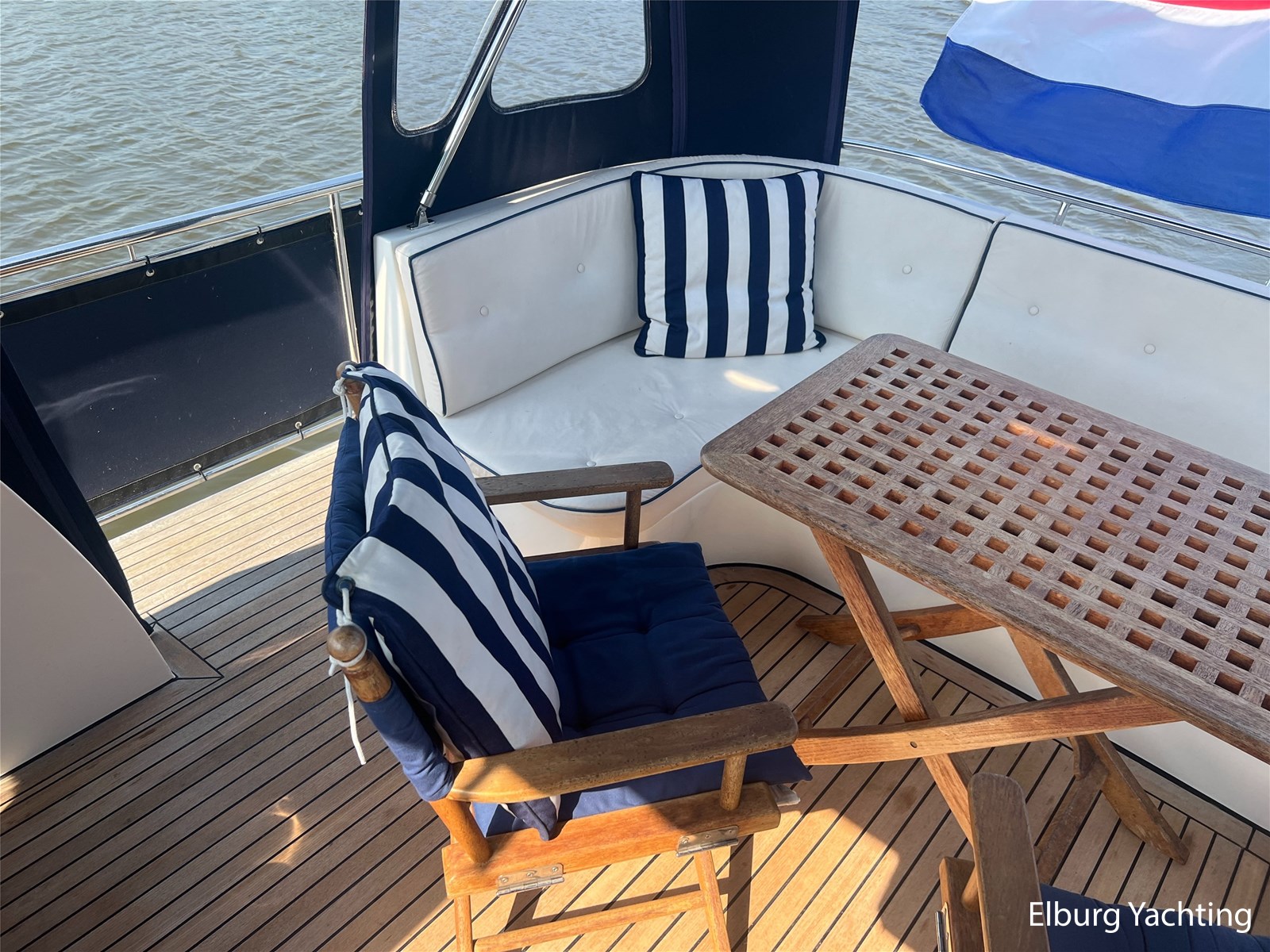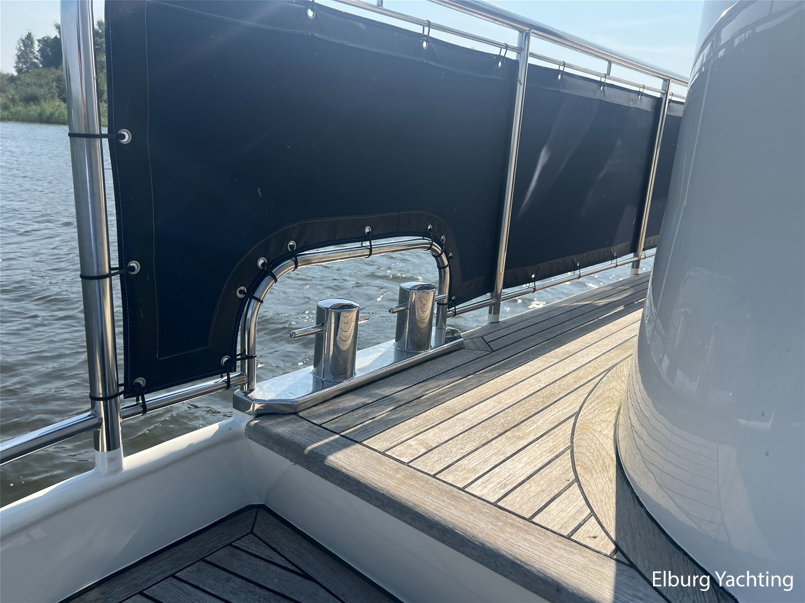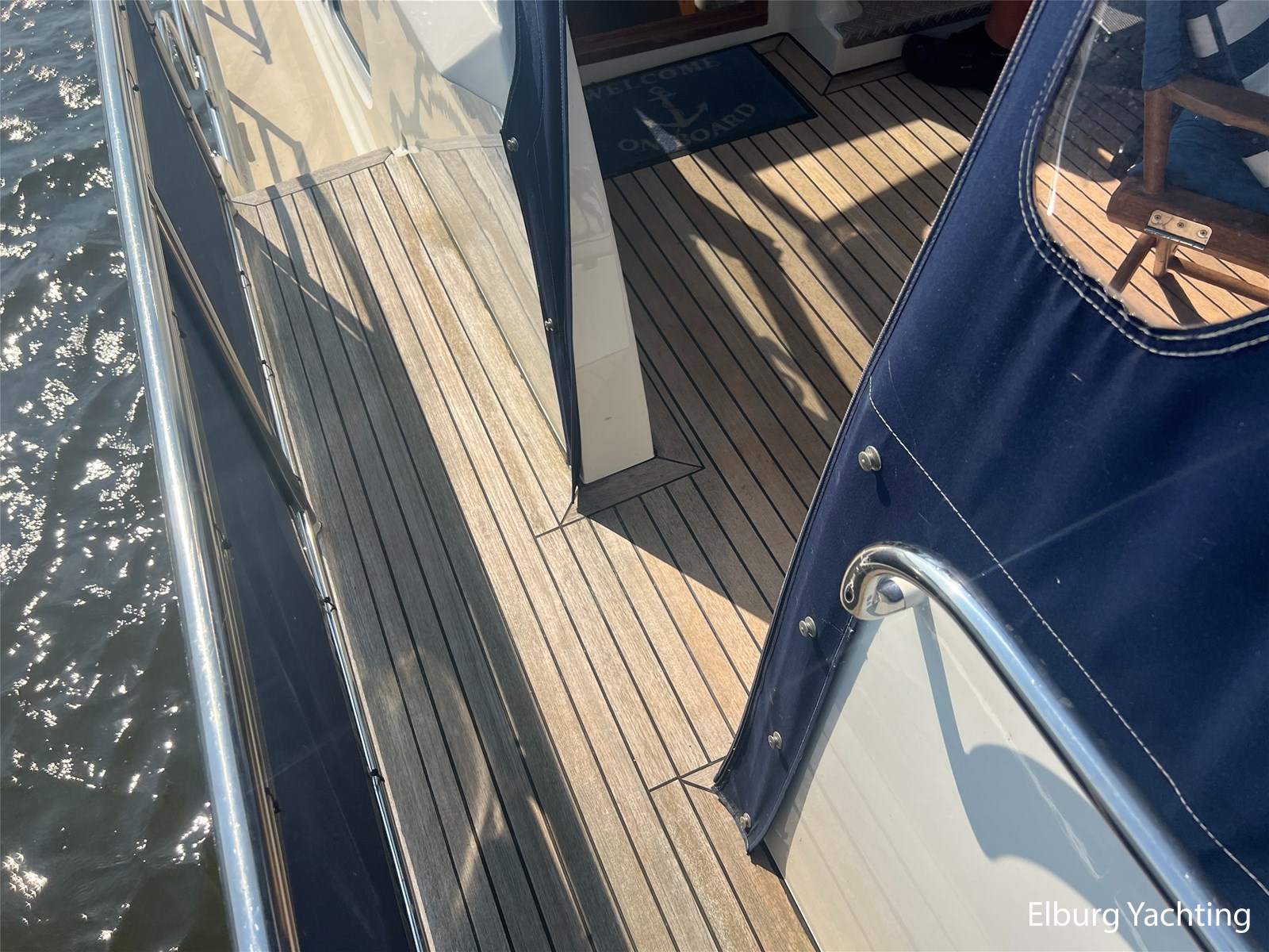 Teak dek op achterdek + gangboorden en boeg voorzin van anti-slip
