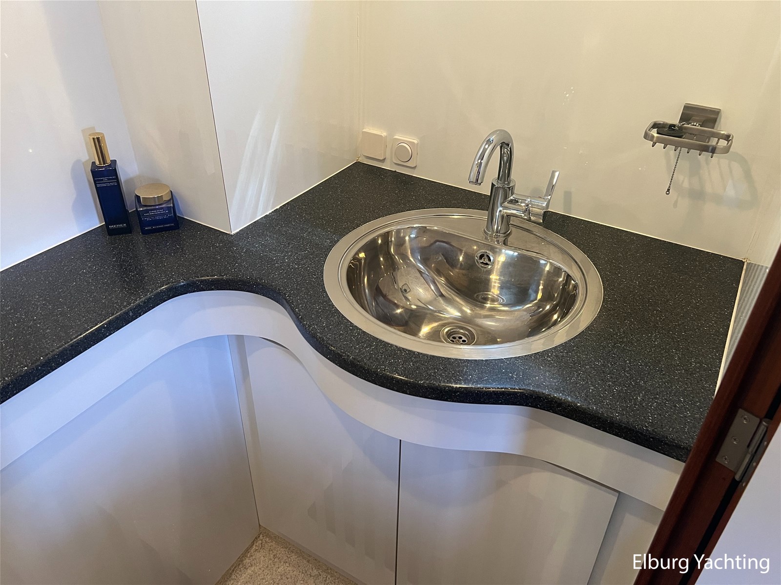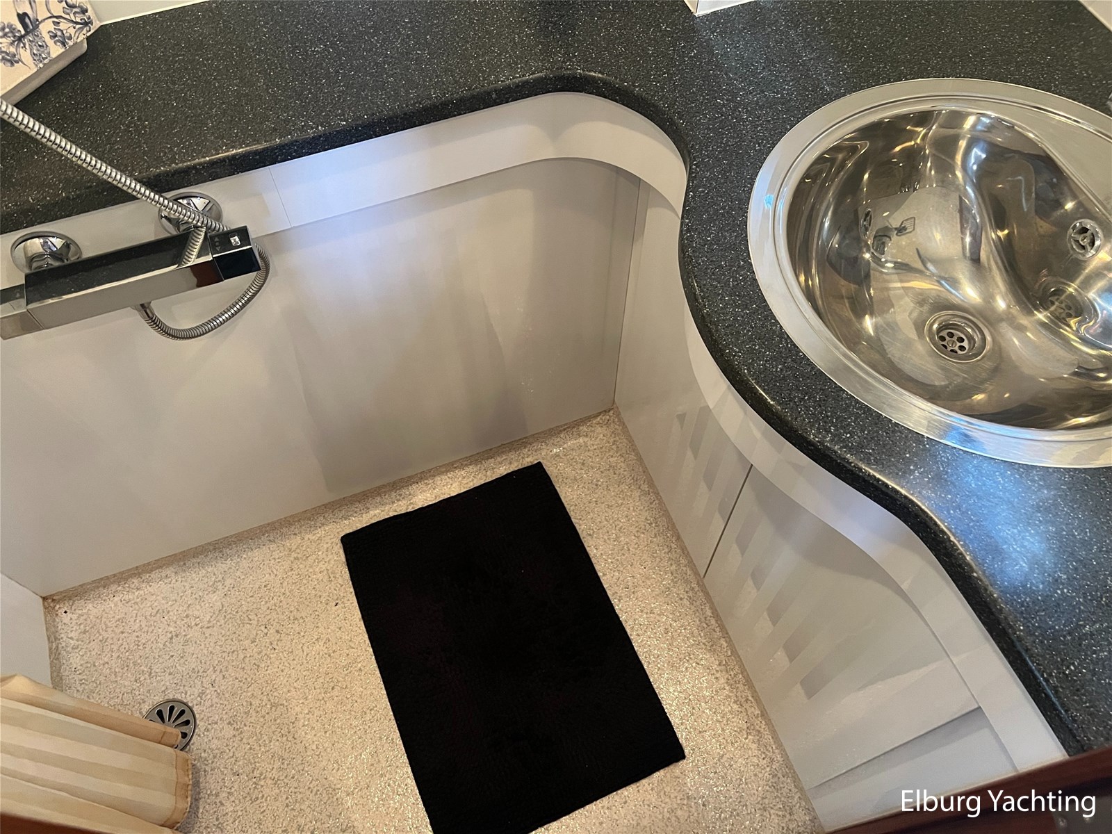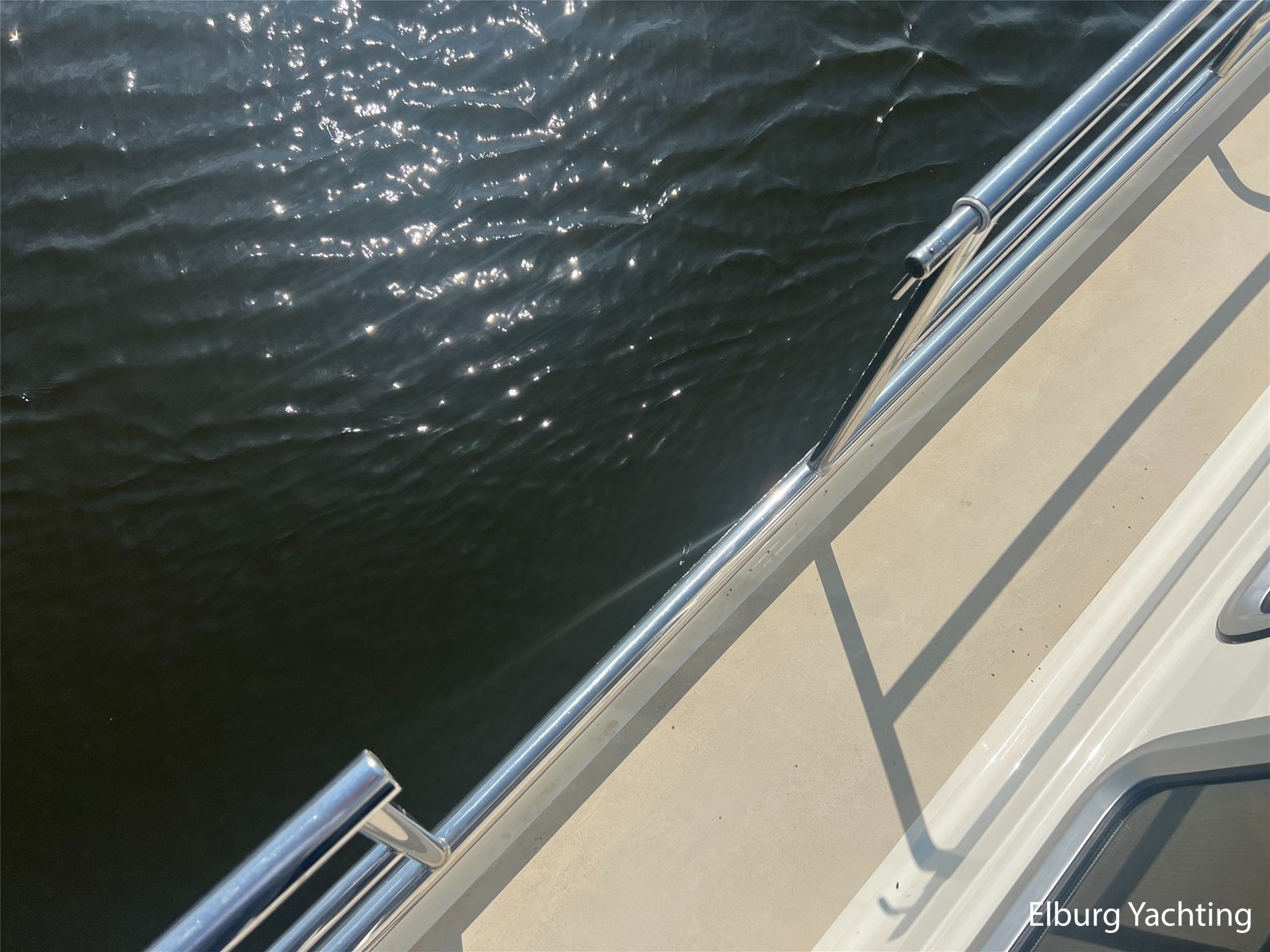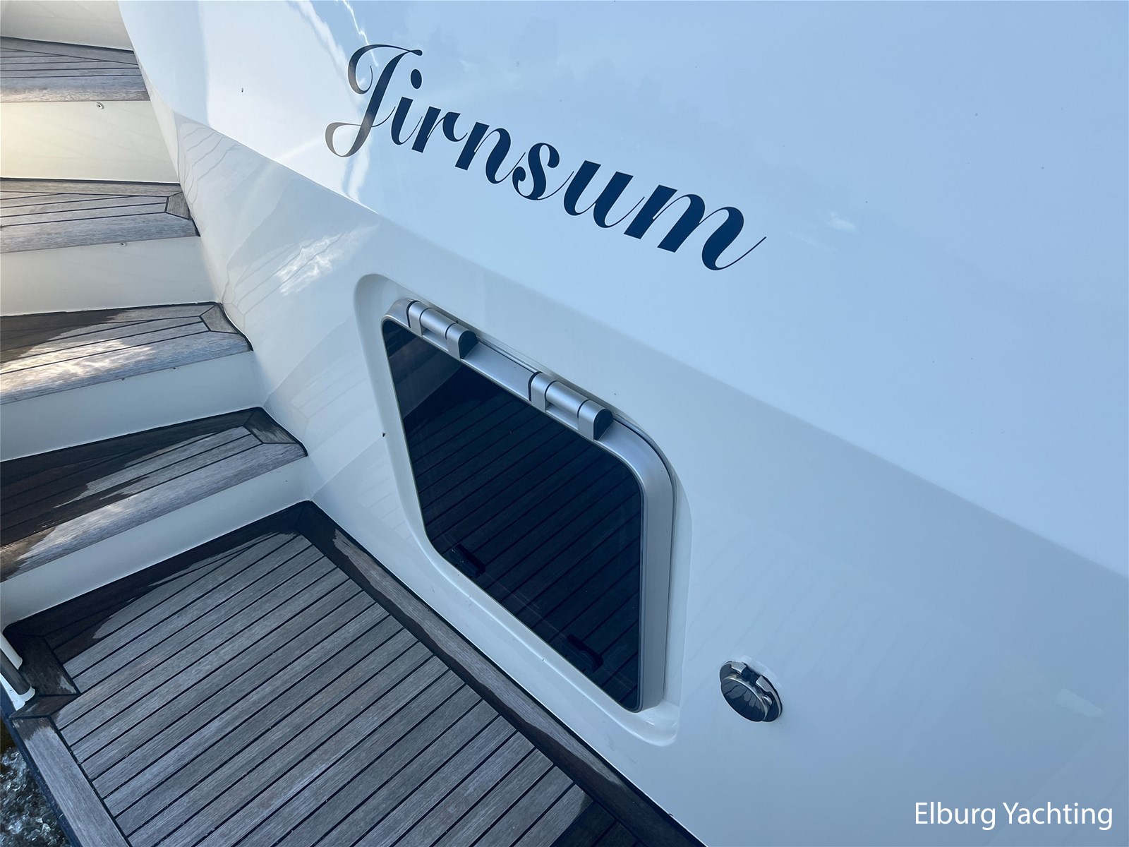 Geïntegreerd en ingelegd met teak + ruime dubbele ronde trappen + zwemtrap