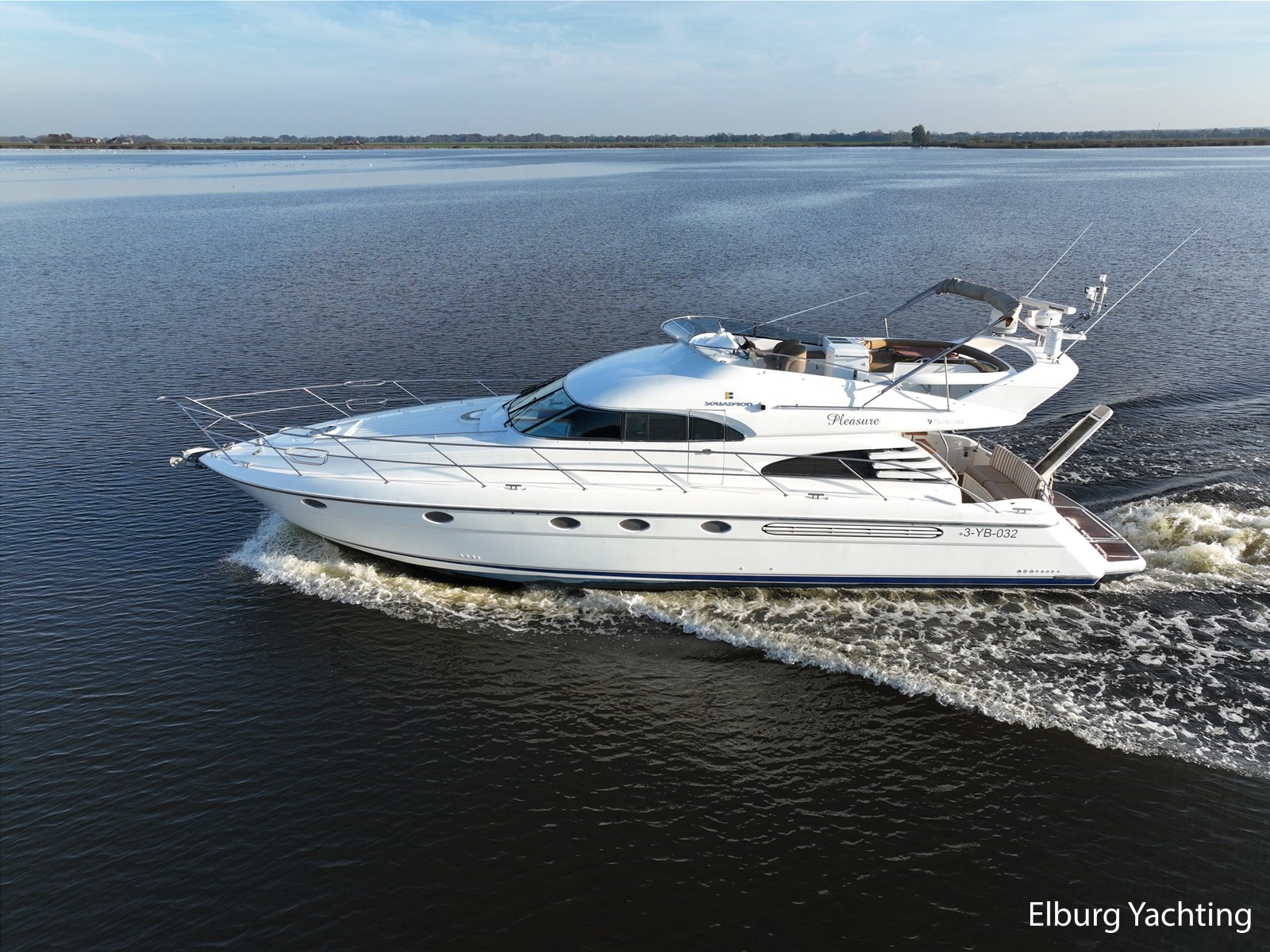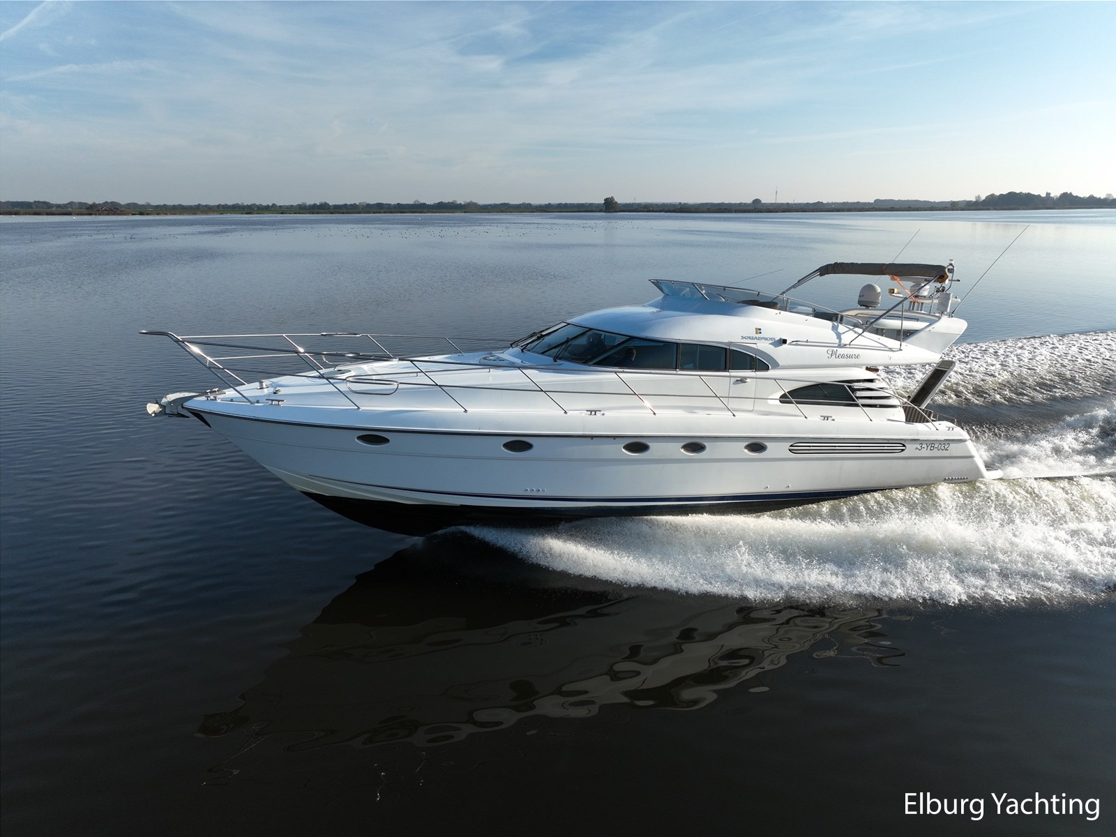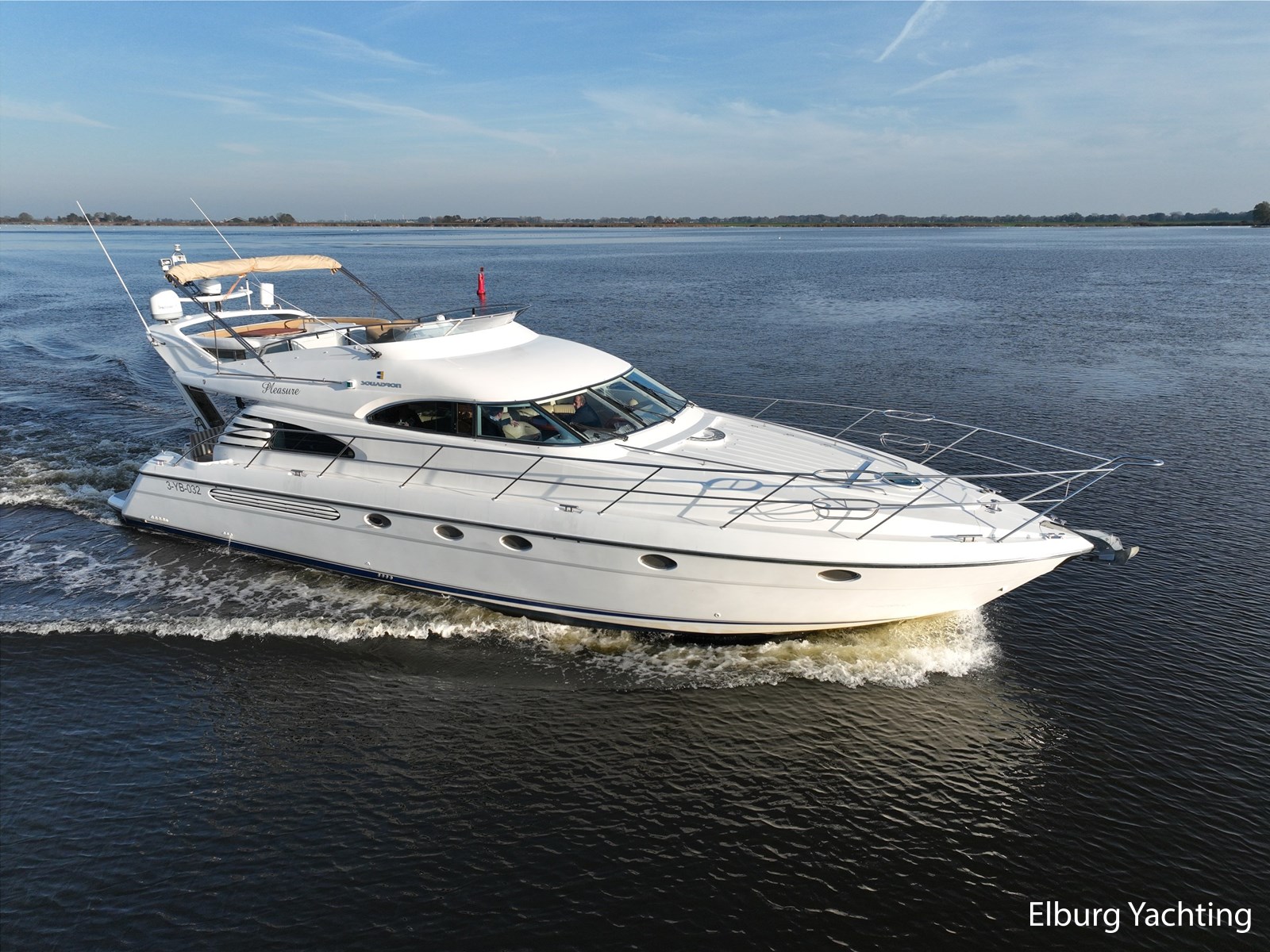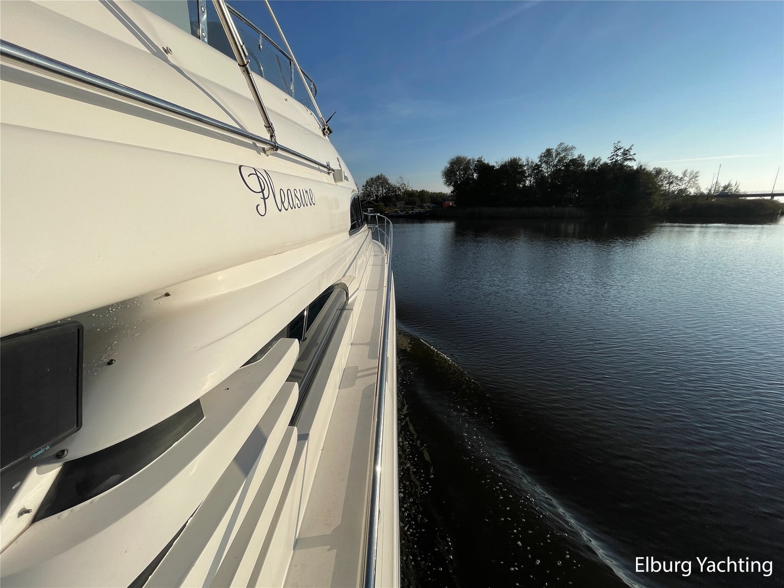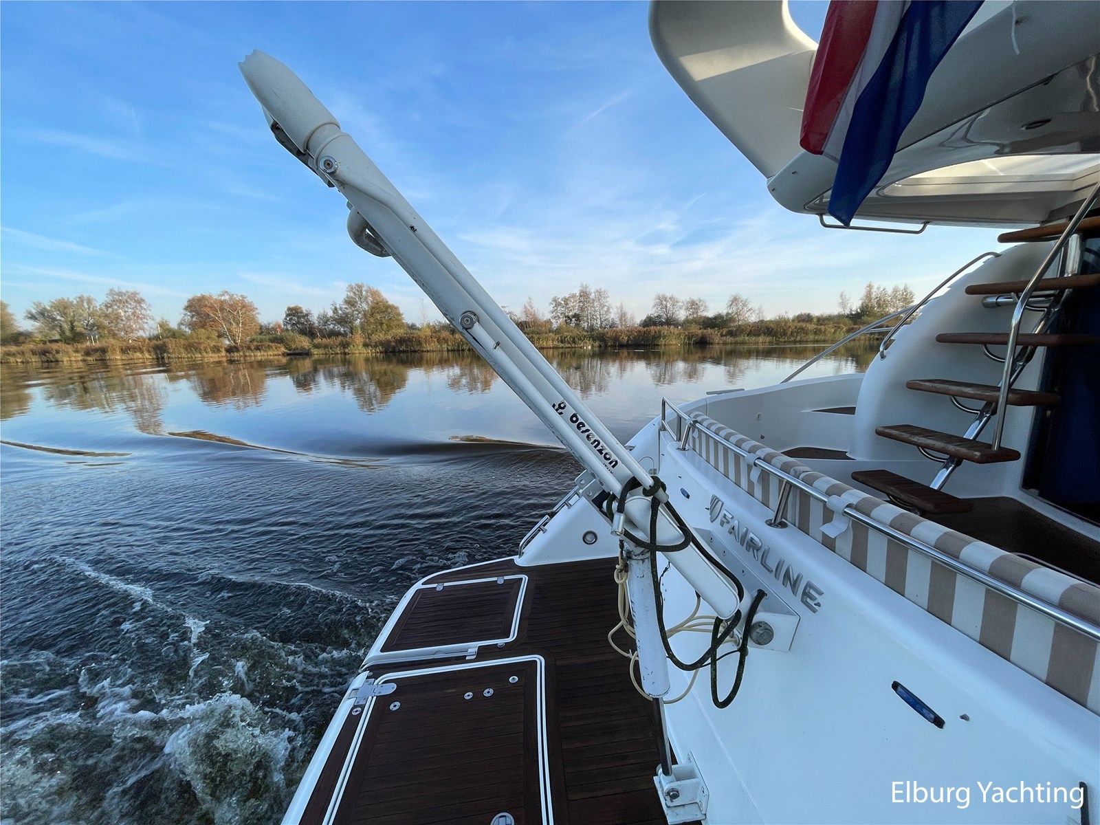 Deze snelvarende Fairline Squadron 55 biedt veel comfort en leefruimte met drie volwaardige 2-persoons vertrekken + 1 x crew. Het jacht beschikt o.a. over: Volledig afsluitbare achtertent, volledige cover over flybridge + losse covers voor bank en tafel, grote r.v.s. schuifdeur met toegang tot de salon, modern hoogglans kersenhouten interieur, 2 ruime zitbanken in de salon, utility room incl. wasmachine en koelkast, zowel binnen- als buitentrap naar flybridge, kussens voor bank op het achterdek, bekleding flybridge (2024), crew cabin met eigen slaapplaats (1 x 2 pers.) en toilet voorziening, groot opbergluik in open kuip, toegang tot machinekamer vanuit utility room en salon, Besenzoni hydraulische gangway tevens als bijboot lift te gebruiken, trim tabs, r.v.s. reling rondom, BB zijdeur in opbouw, 3 x dubbel armige ruitenwisser, volledige biminitop over flybridge, vlucht/ventilatie luiken met muggenhorren, dekwaspomp met aansluiting voor- en achterop,
