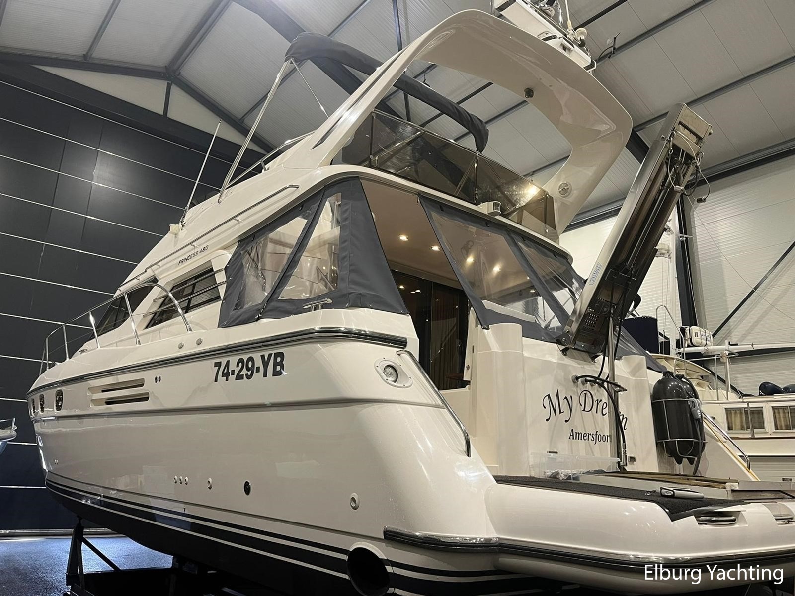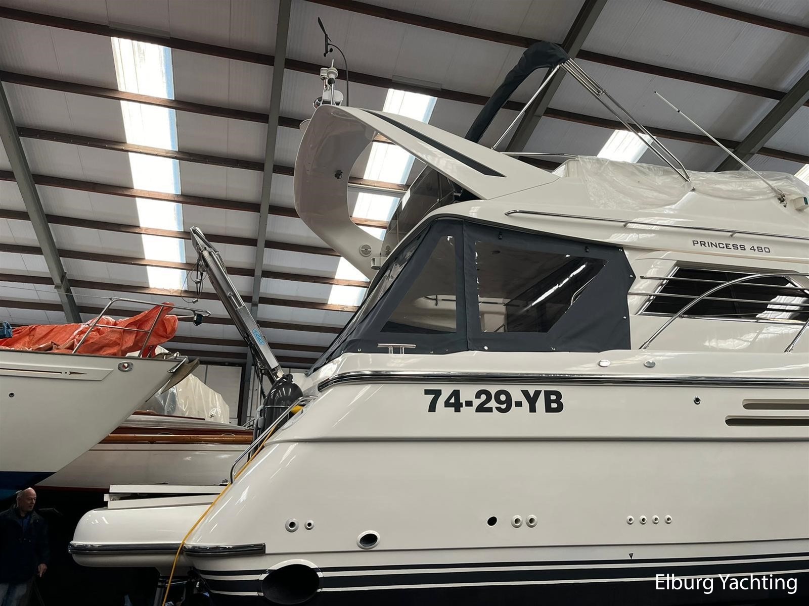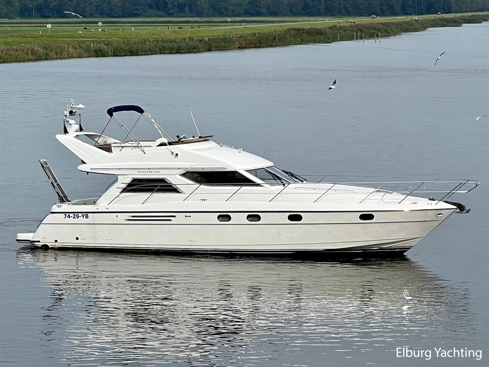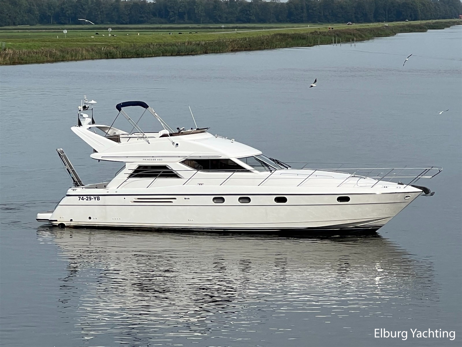 Prachtige Princess 480 Flybridge welke voorzien is van een zeer open en lichte salon / dinette indeling, twee comfortabele hutten en een ruime bering in het achterschip. Beide hutten hebben een 2-persoons bed met allebei toegang tot een eigen douche/toilet ruimte. Deze Princess 480 is uitgevoerd met: Vaste zitbank in open kuip met bijbehorende buitenkussens, de open kuip en salon gelijkvloers beloopbaar, r.v.s. schuifdeur naar salon, "luie" vaste trap naar flybridge, zonnebed op voordek, 2-persoons vaarbank op flybridge, trim tabs, volledige afsluitbare tent rondom kuip met uitristbare delen, r.v.s. buitenreling rondom, 2 x schuifraam in salon, biminitop op flybridge met afdekhoes 2024, buitendouche, ijsblokjesmachine, deur in spiegel naar zwemplatform, toegang machinekamer vanuit de open kuip en via salonvloer, zonneschermen rondom salonramen 2023, gordijnen in de salon vernieuwd in 2023. De verstuivers van de motoren zijn in 2024 gereviseerd, nieuwe antifouling + anode's 2024, nieuwe wasmachine 2024, nieuwe Eberspächer kachel 2024, nieuwe achtertent 2024, nieuwe biminihoes 2024 en zijn in 2023 beide dieseltanks gereinigd.
