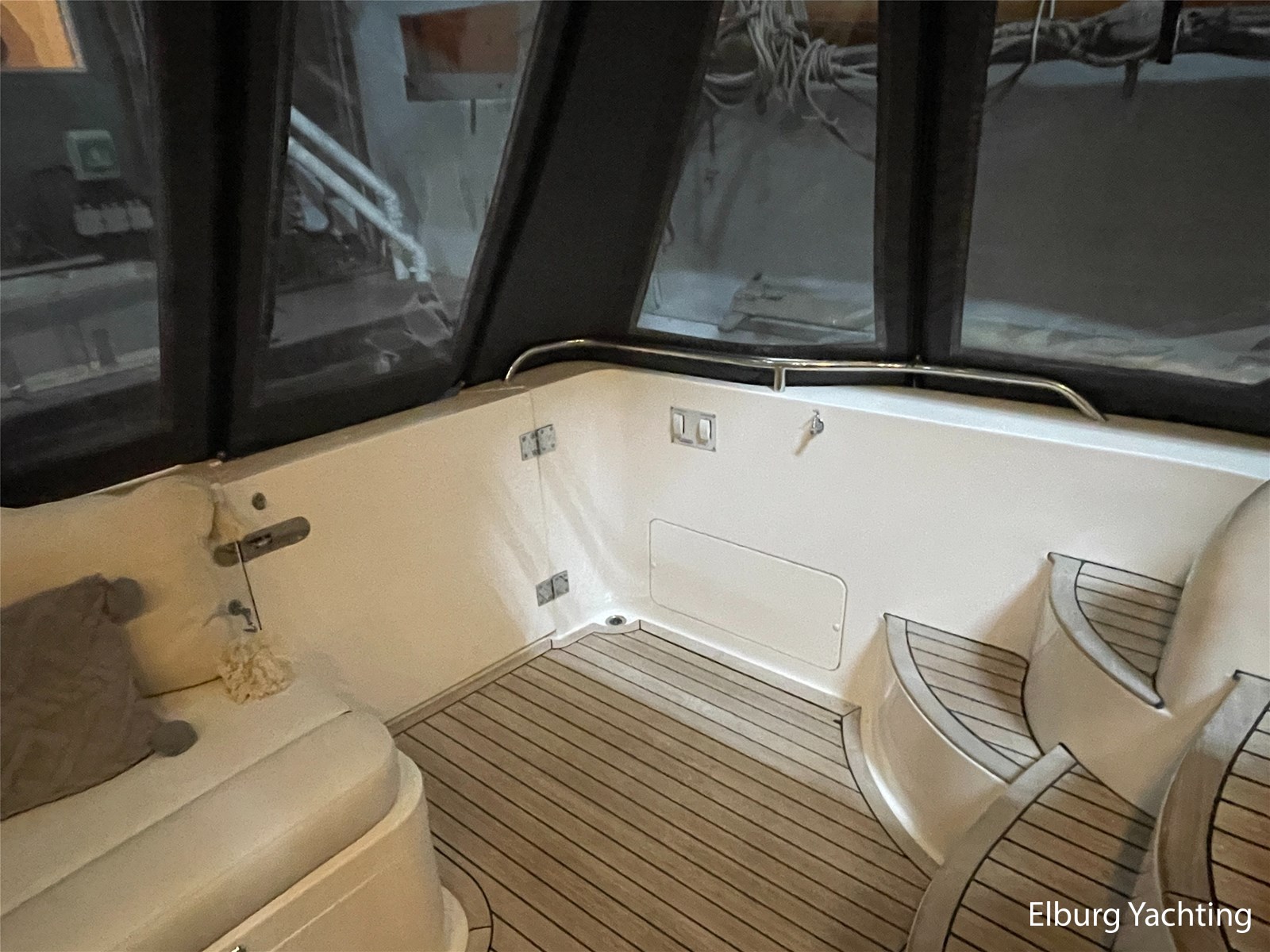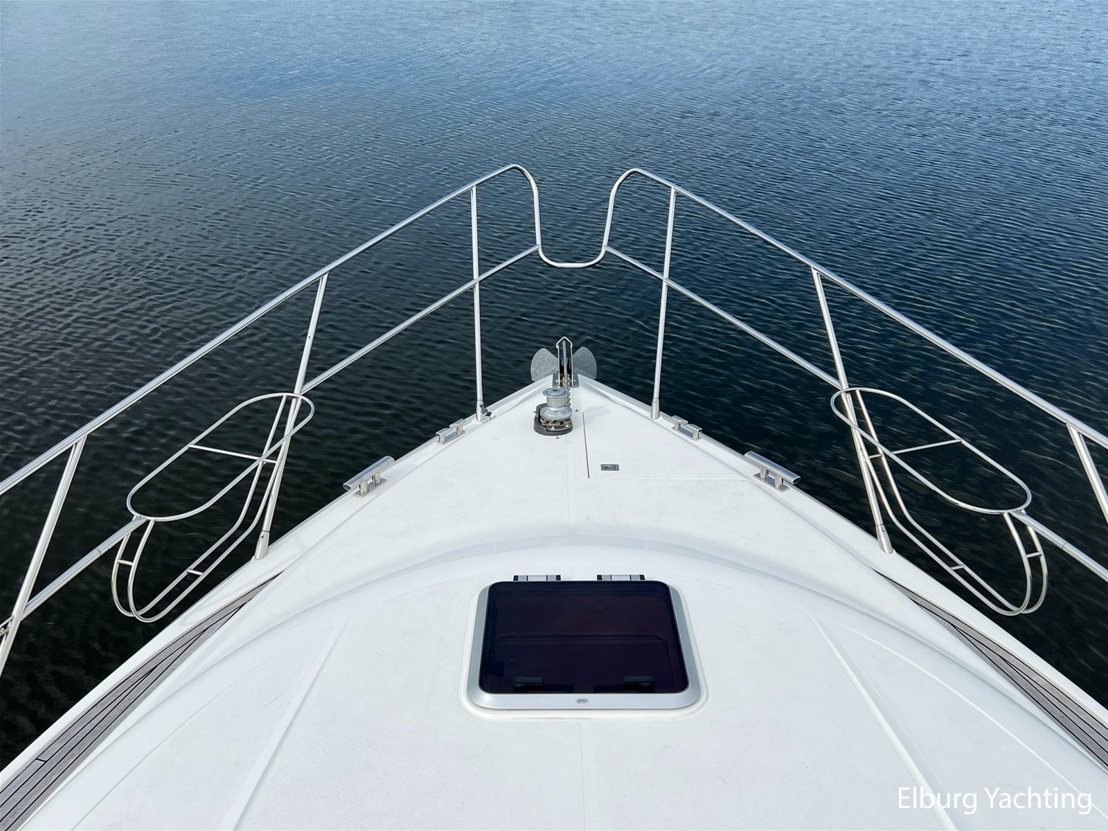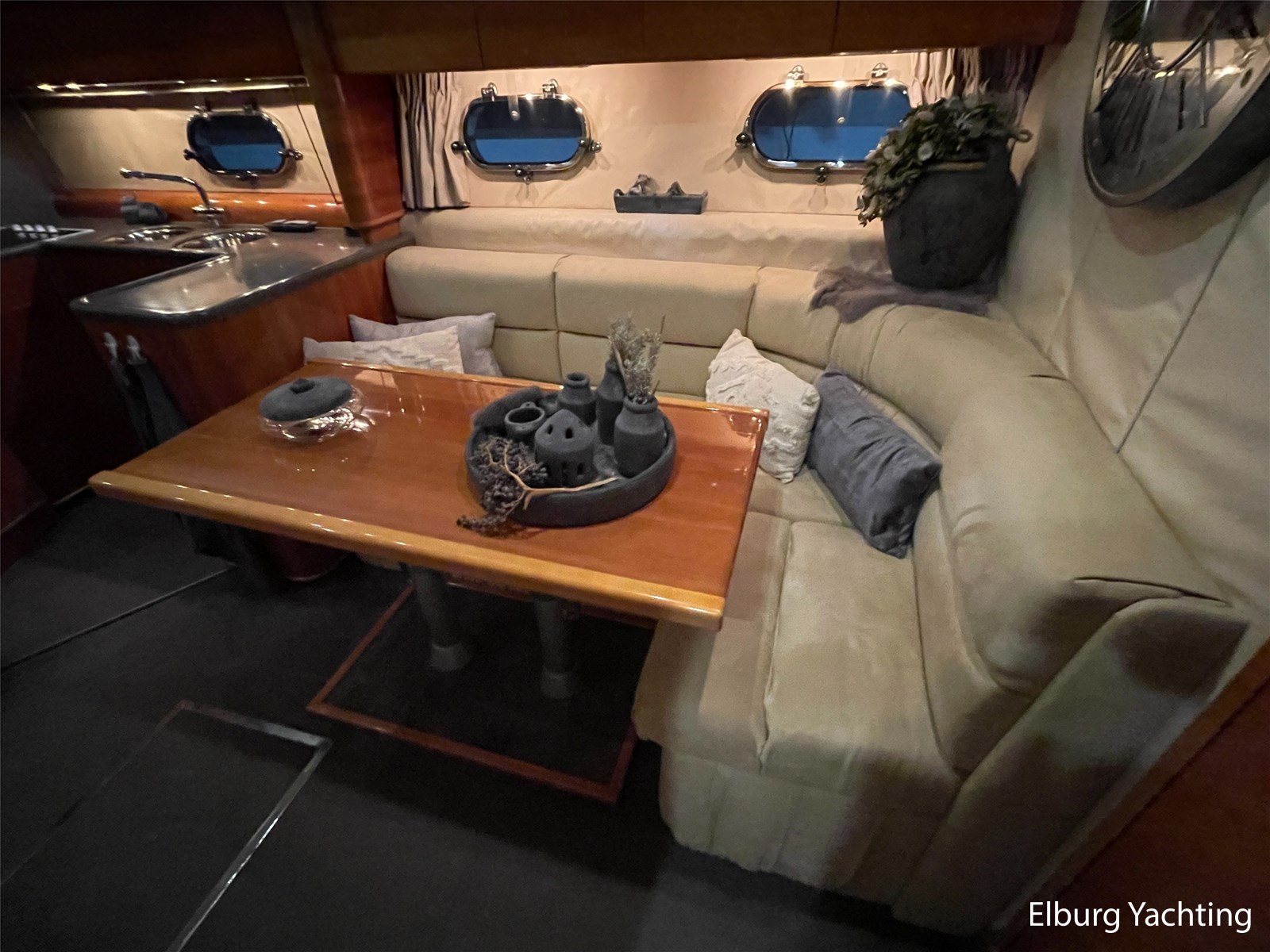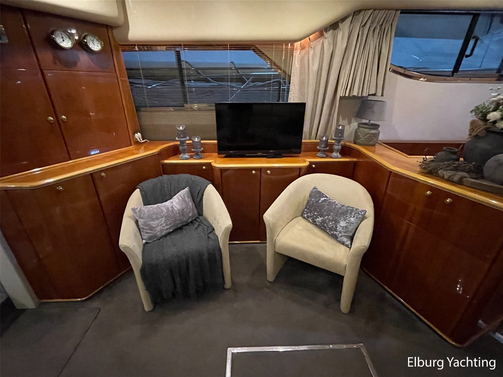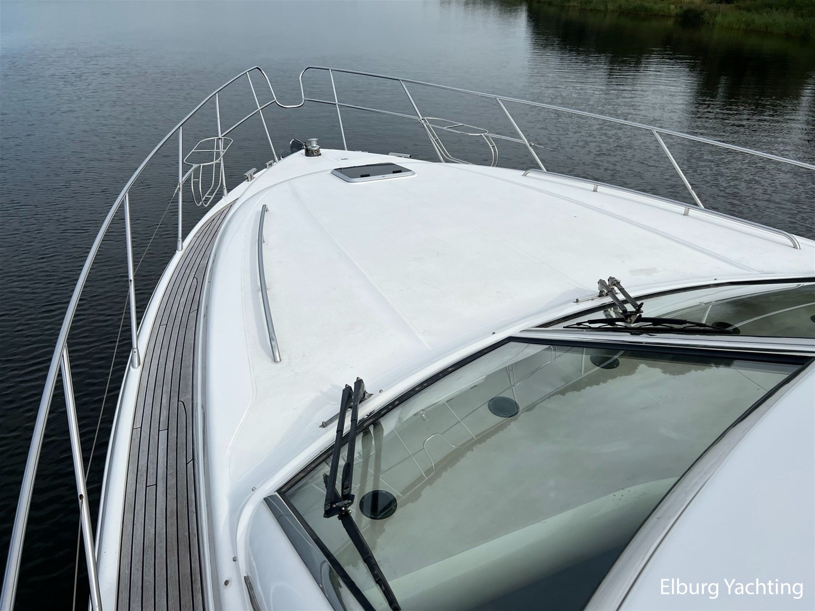 Prachtige Princess 480 Flybridge welke voorzien is van een zeer open en lichte salon / dinette indeling, twee comfortabele hutten en een ruime bering in het achterschip. Beide hutten hebben een 2-persoons bed met allebei toegang tot een eigen douche/toilet ruimte. Deze Princess 480 is uitgevoerd met: Vaste zitbank in open kuip met bijbehorende buitenkussens, de open kuip en salon gelijkvloers beloopbaar, r.v.s. schuifdeur naar salon, "luie" vaste trap naar flybridge, zonnebed op voordek, 2-persoons vaarbank op flybridge, trim tabs, volledige afsluitbare tent rondom kuip met uitristbare delen, r.v.s. buitenreling rondom, 2 x schuifraam in salon, biminitop op flybridge met afdekhoes 2024, buitendouche, ijsblokjesmachine, deur in spiegel naar zwemplatform, toegang machinekamer vanuit de open kuip en via salonvloer, zonneschermen rondom salonramen 2023, gordijnen in de salon vernieuwd in 2023. De verstuivers van de motoren zijn in 2024 gereviseerd, nieuwe antifouling + anode's 2024, nieuwe wasmachine 2024, nieuwe Eberspächer kachel 2024, nieuwe achtertent 2024, nieuwe biminihoes 2024 en zijn in 2023 beide dieseltanks gereinigd.