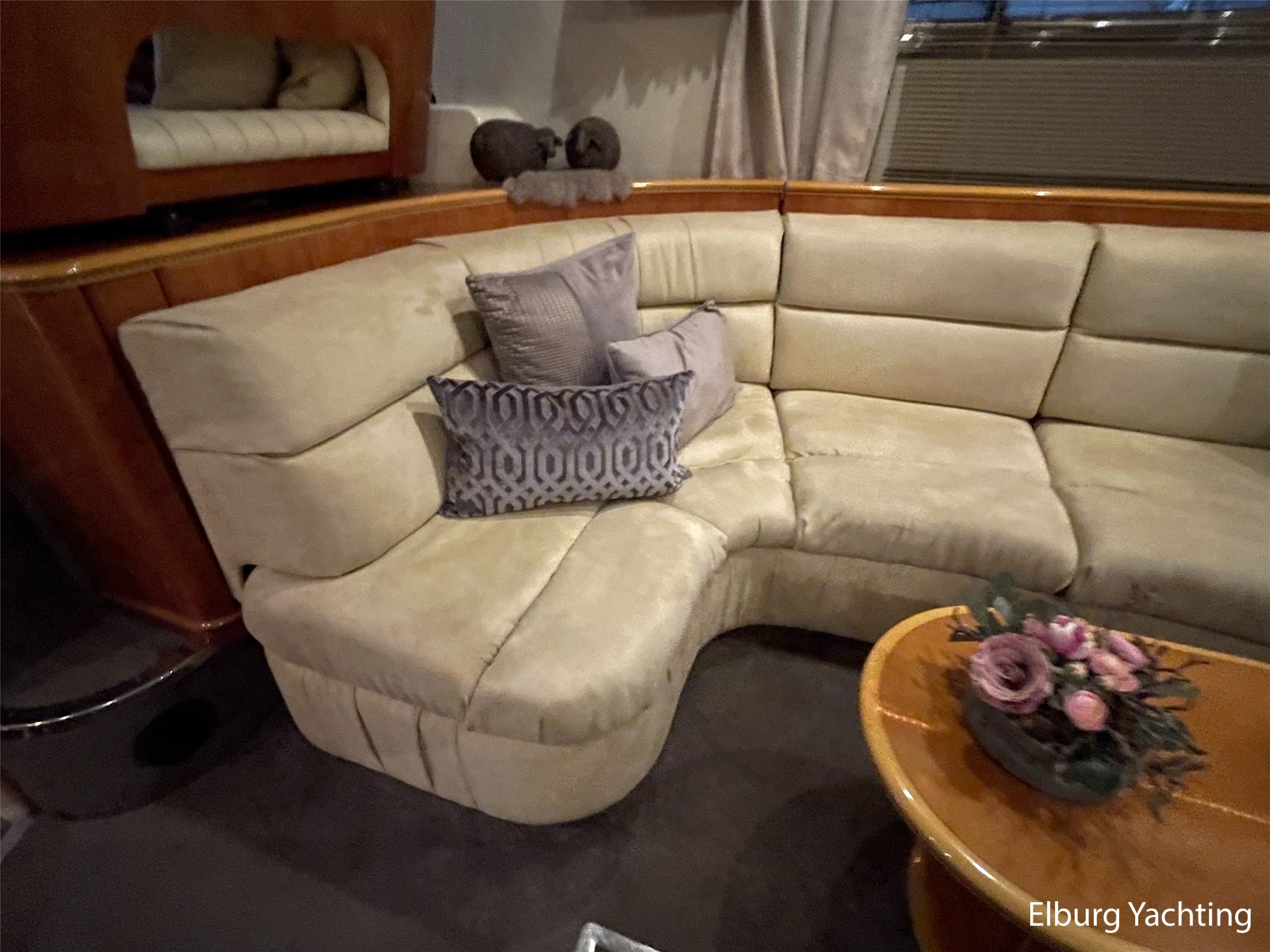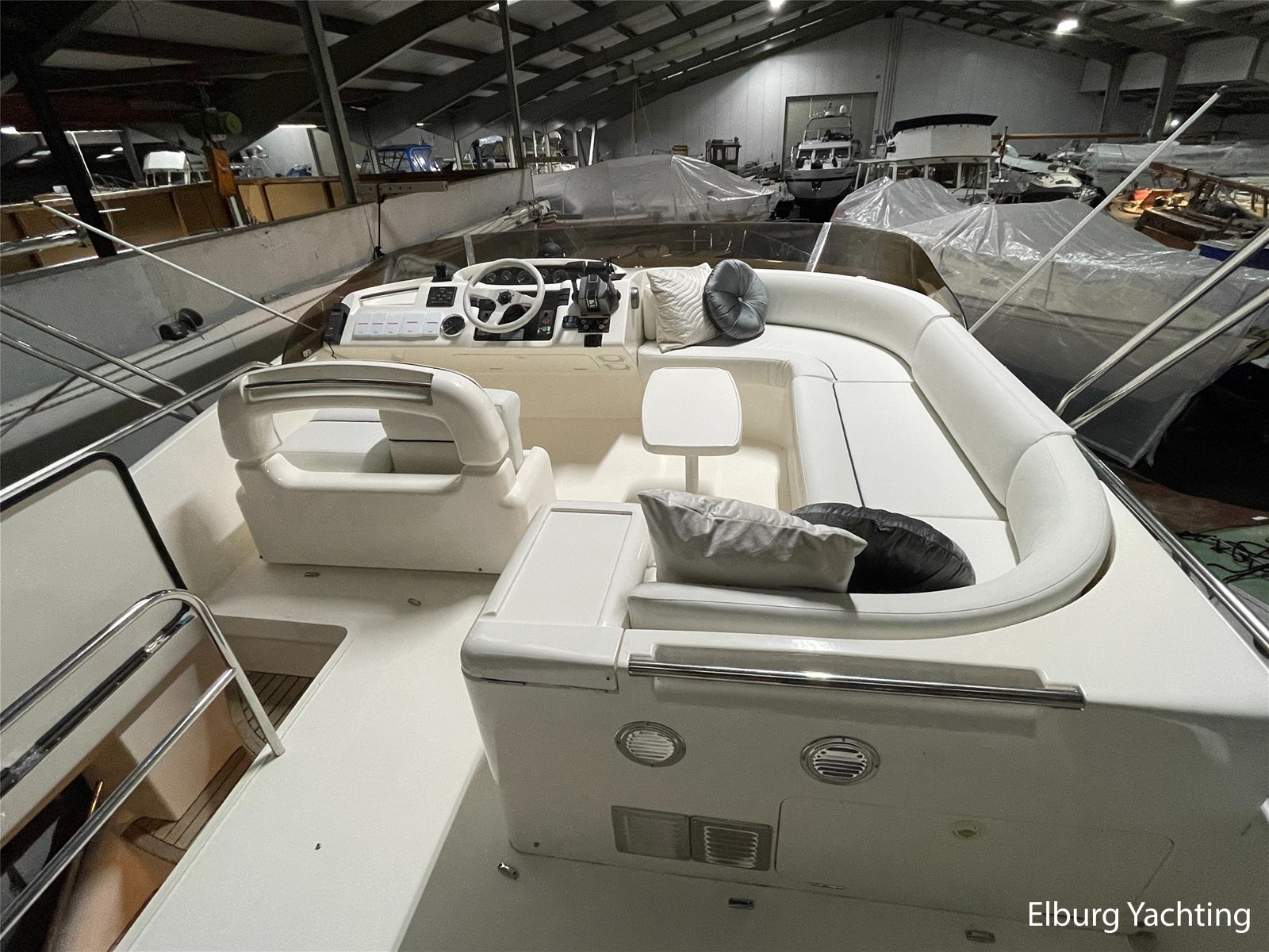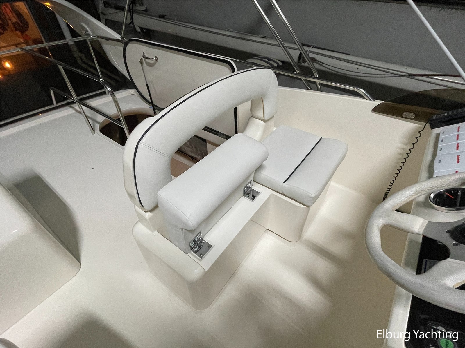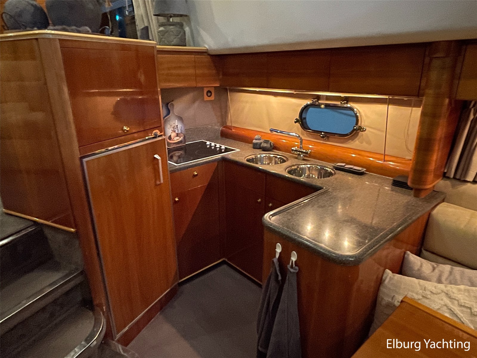 Prachtige Princess 480 Flybridge welke voorzien is van een zeer open en lichte salon / dinette indeling, twee comfortabele hutten en een ruime bering in het achterschip. Beide hutten hebben een 2-persoons bed met allebei toegang tot een eigen douche/toilet ruimte. Deze Princess 480 is uitgevoerd met: Vaste zitbank in open kuip met bijbehorende buitenkussens, de open kuip en salon gelijkvloers beloopbaar, r.v.s. schuifdeur naar salon, "luie" vaste trap naar flybridge, zonnebed op voordek, 2-persoons vaarbank op flybridge, trim tabs, volledige afsluitbare tent rondom kuip met uitristbare delen, r.v.s. buitenreling rondom, 2 x schuifraam in salon, biminitop op flybridge met afdekhoes 2024, buitendouche, ijsblokjesmachine, deur in spiegel naar zwemplatform, toegang machinekamer vanuit de open kuip en via salonvloer, zonneschermen rondom salonramen 2023, gordijnen in de salon vernieuwd in 2023. De verstuivers van de motoren zijn in 2024 gereviseerd, nieuwe antifouling + anode's 2024, nieuwe wasmachine 2024, nieuwe Eberspächer kachel 2024, nieuwe achtertent 2024, nieuwe biminihoes 2024 en zijn in 2023 beide dieseltanks gereinigd.