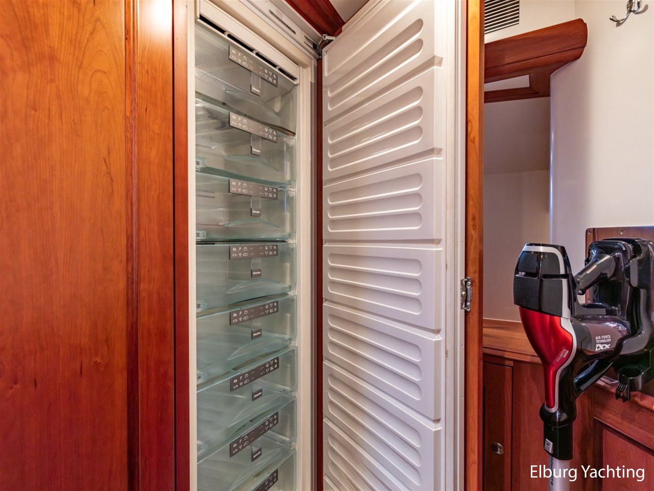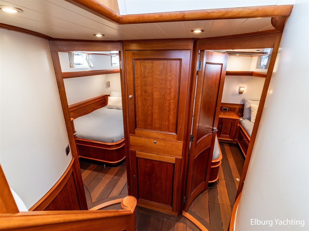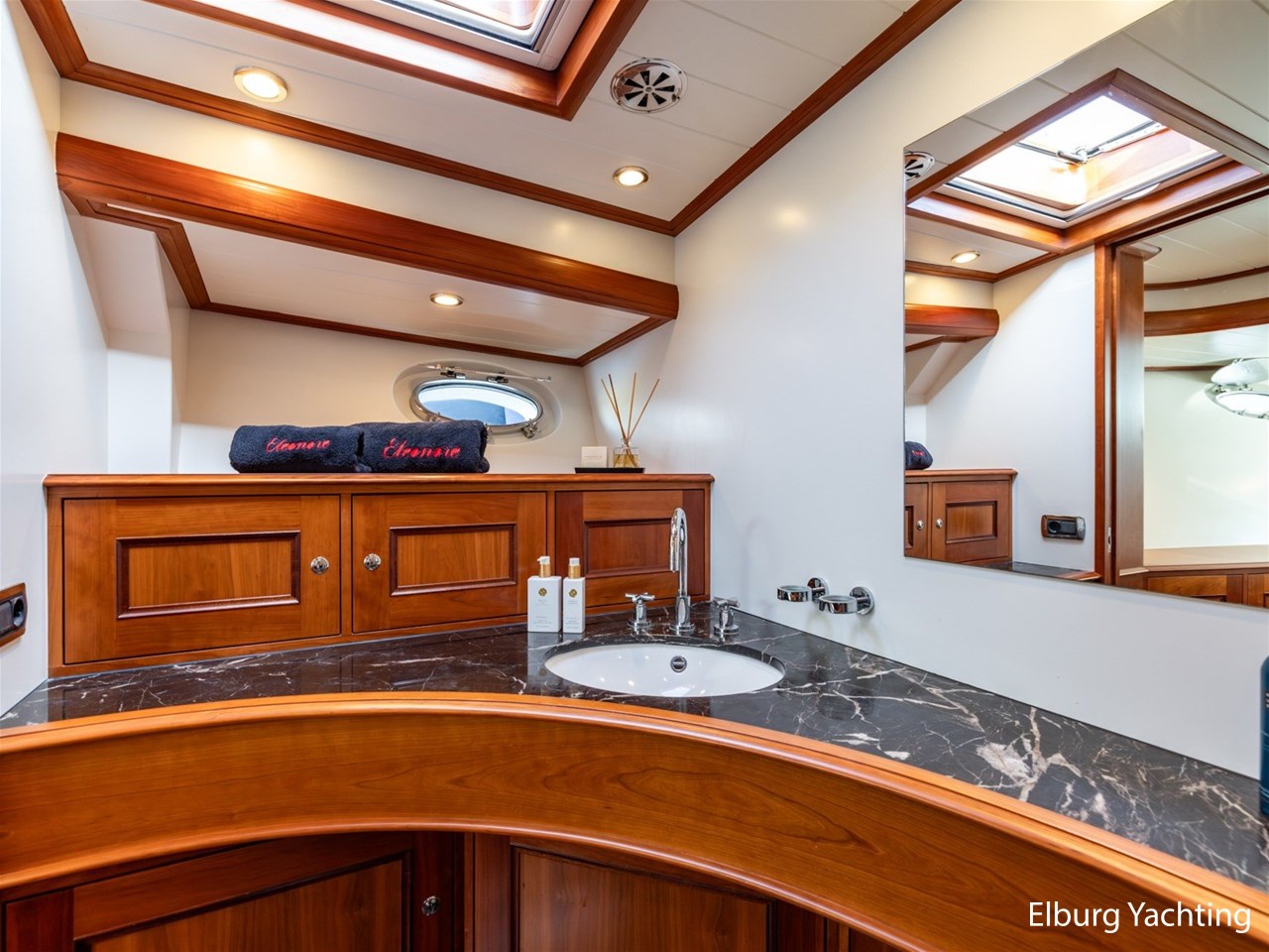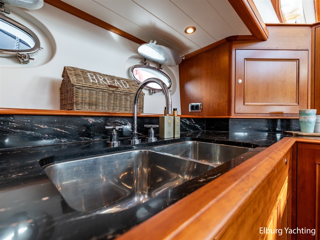 Het jacht beschikt over een ruime keuken en een zeer ruime U-vormige dinette tegenover de keuken. De eigenaarshut is ontworpen met oog voor detail en comfort. Het is een ruime hut met ensuite een badkamer, en biedt een royale inloopruimte incl. een bureau met veel kastruimte voordat de slaapruimte wordt betreedt Het interieur heeft prachtig gebogen deuropeningen en deuren, die de traditionele en klassieke charme benadrukken, terwijl de moderne accenten in het jacht haar veelzijdigheid onderstrepen.