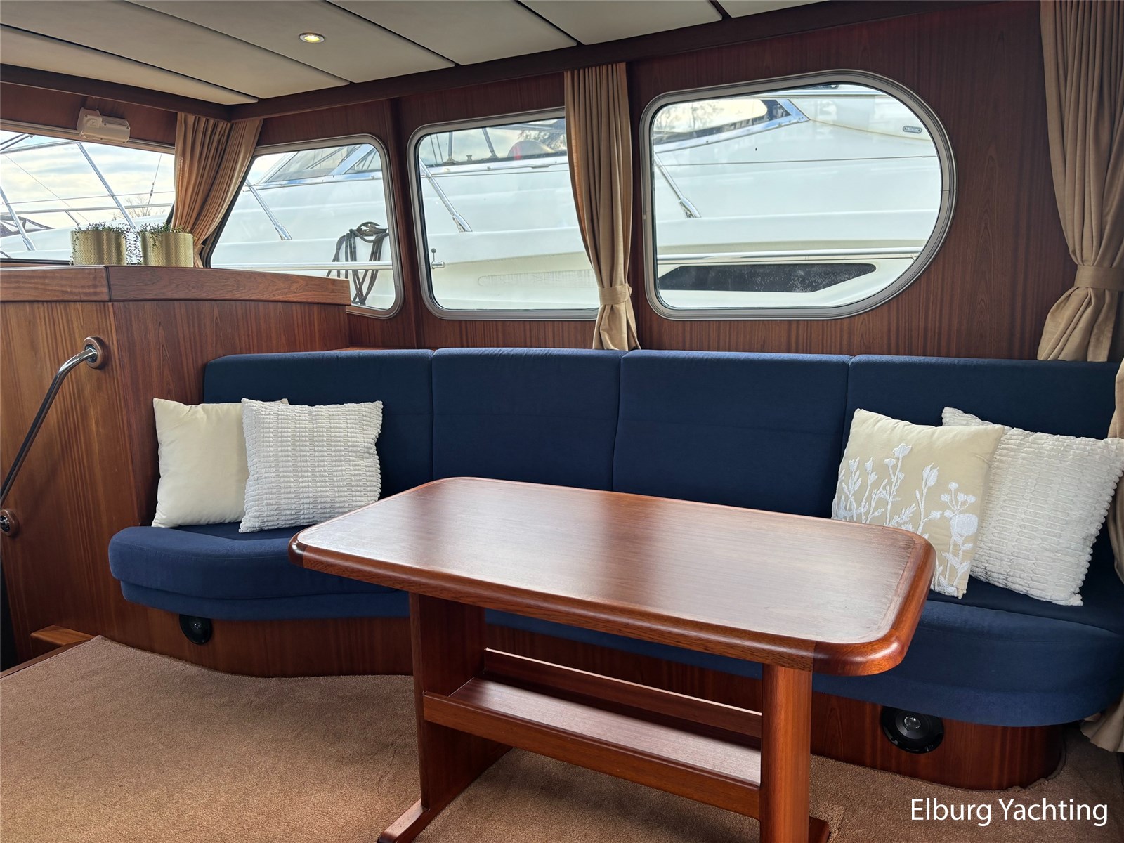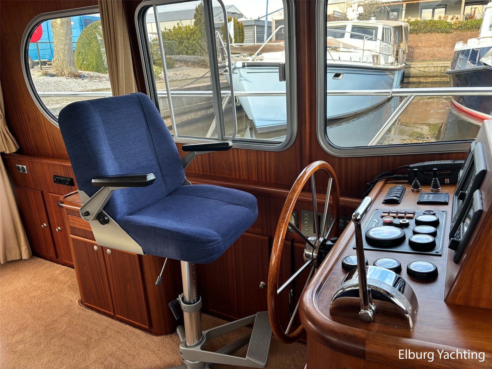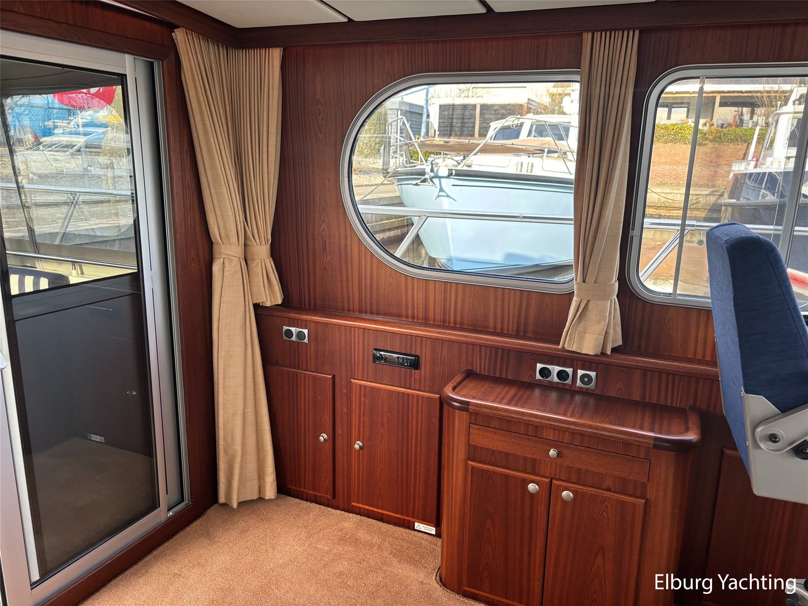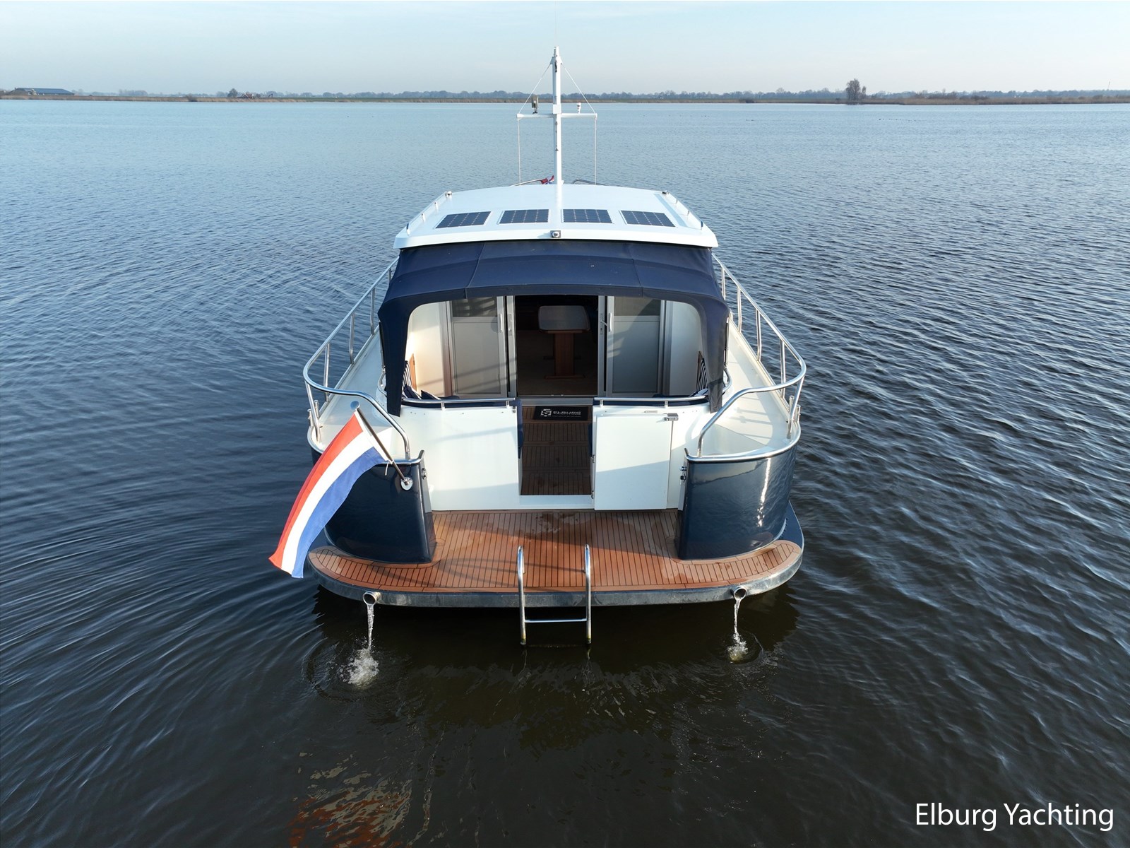Deze schitterende Argos Line 13.50 - OK - Elite wordt gekenmerkt door haar grote leefruimte aan boord door een gelijkvloerse salon, open kuip en zwemplateau. De tent is over de gehele kuip afsluitbaar zodat het met met minder weer, in combinatie met de Eberspächer hete luchtverwarming, nog steeds mogelijk is om comfortabel buiten te zitten. Vanuit de kuip loopt u via de twee schuifdeuren voorzien van horren, de ruime salon binnen die voorzien is van dubbelglas, met aan bakboord een schuifraam en aan de voorkant een open te klappen raam. In combinatie met de Kabola centrale verwarming is het aangenaam aan boord te verblijven, ook wat vroeger en later in het vaarseizoen. Bij de stuurstand heeft u goed overzicht door de raampartij, Het jacht is voorzien van een Sidepower afstandsbediening waardoor het jacht goed te manoeuvreren is. Vanaf de salon loopt u door middel van een trap naar beneden waar u aan de bakboord kant een ruime dinette vindt, en daar tegenover de kombuis. Als u rechtdoor loopt vindt u de eigenaars hut die voorzien is van een tweepersoons frans bed. Aangrenzend vindt u een douche in eigen cabine en een elektrisch toilet in eigen cabine. Vanuit de kombuis vindt u de gasten hut die is voorzien van een tweepersoons bed. Via de kuip loopt u door middel van een openslaand deurtje naar het zwemplateau. Via de twee luie, halfronde trappen loopt u de gangboorden op die voorzien zijn van een RVS reling, dubbele RVS bolders en antislip verf. Op het voordek staat een elektrisch klapbare mast, en de elektrische ankerlier. Het dak is voorzien van een viertal zonnepanelen via Victron MPPT 100/20. Het jacht heeft een minimale doorvaarthoogte van ca. 2.40 m. Voor vragen en/of het maken van een afspraak bent u 7 dagen per week van harte welkom bij Elburg Yachting.