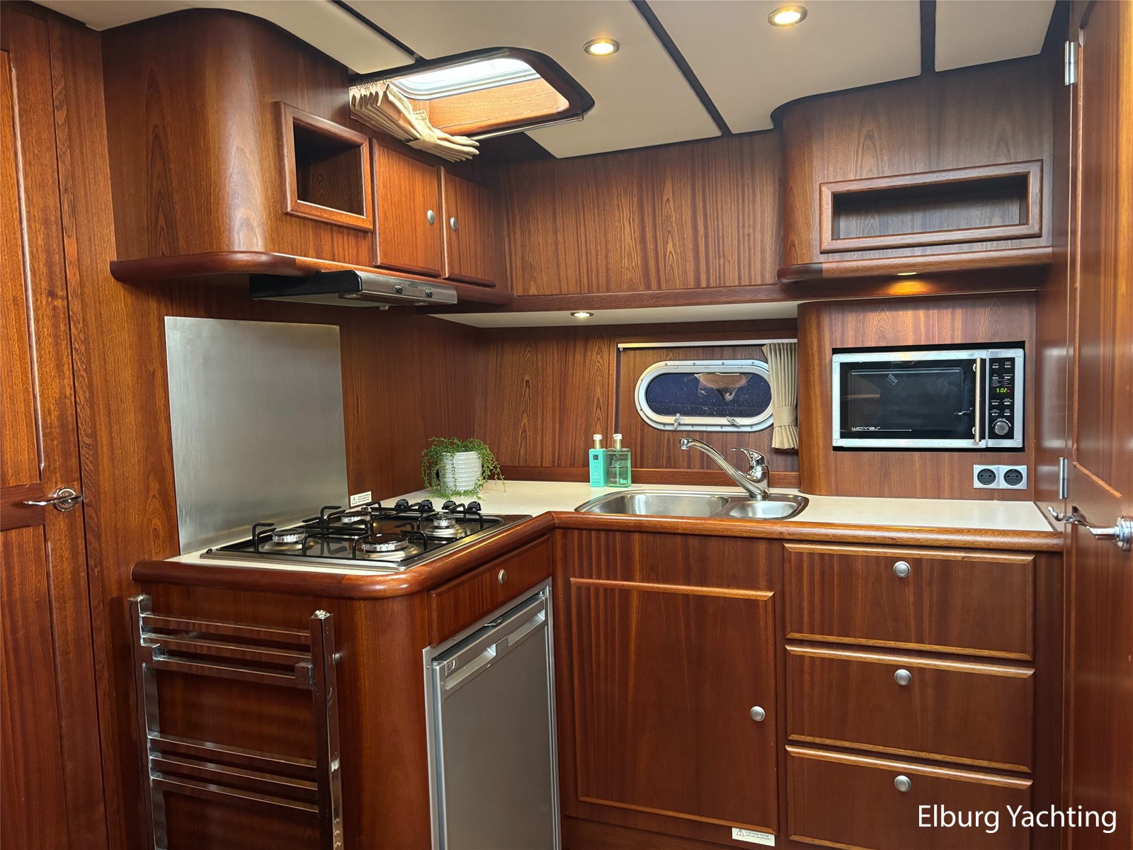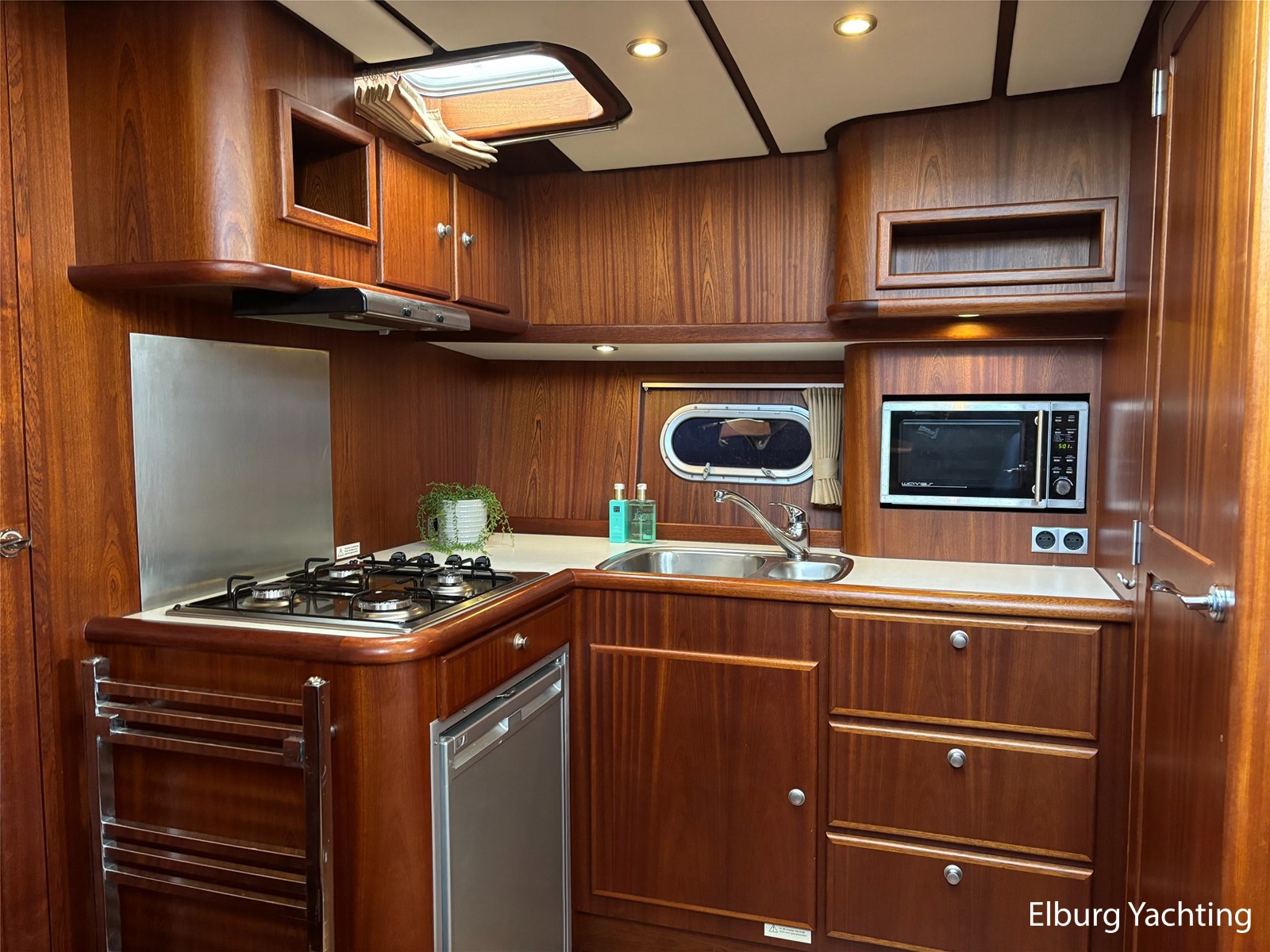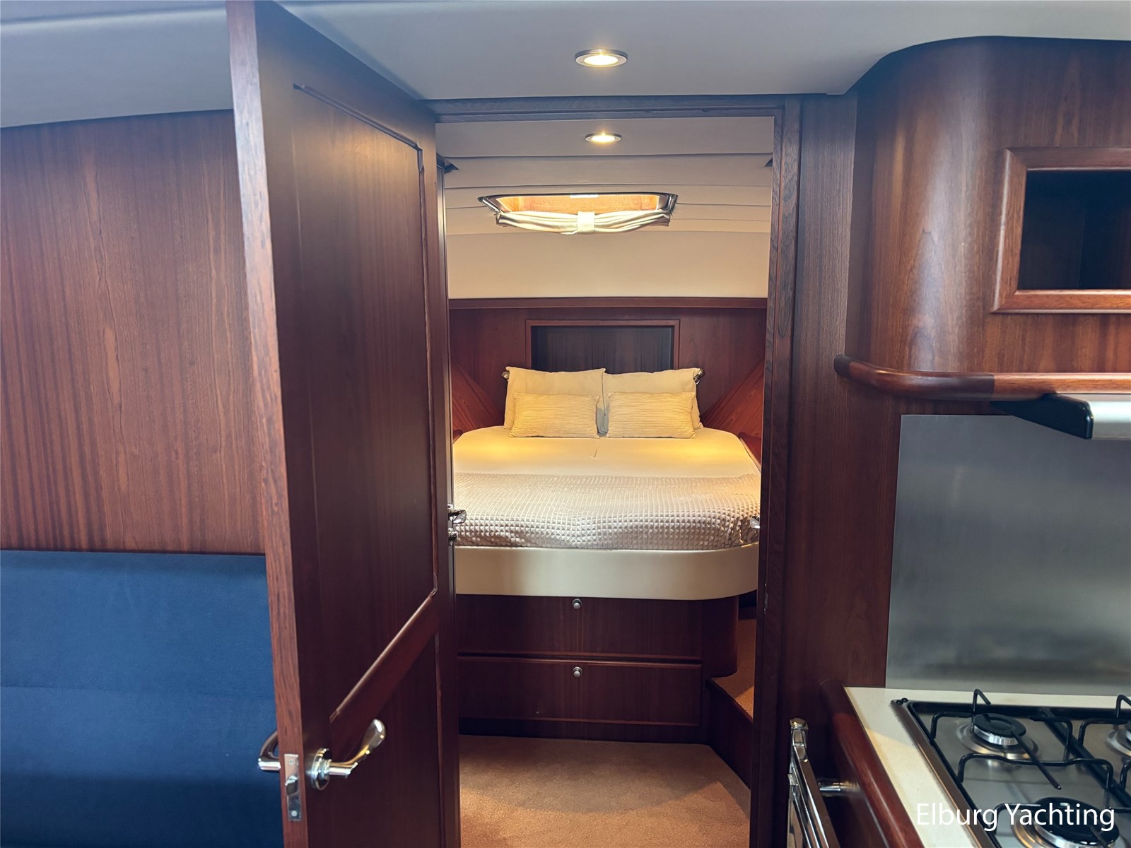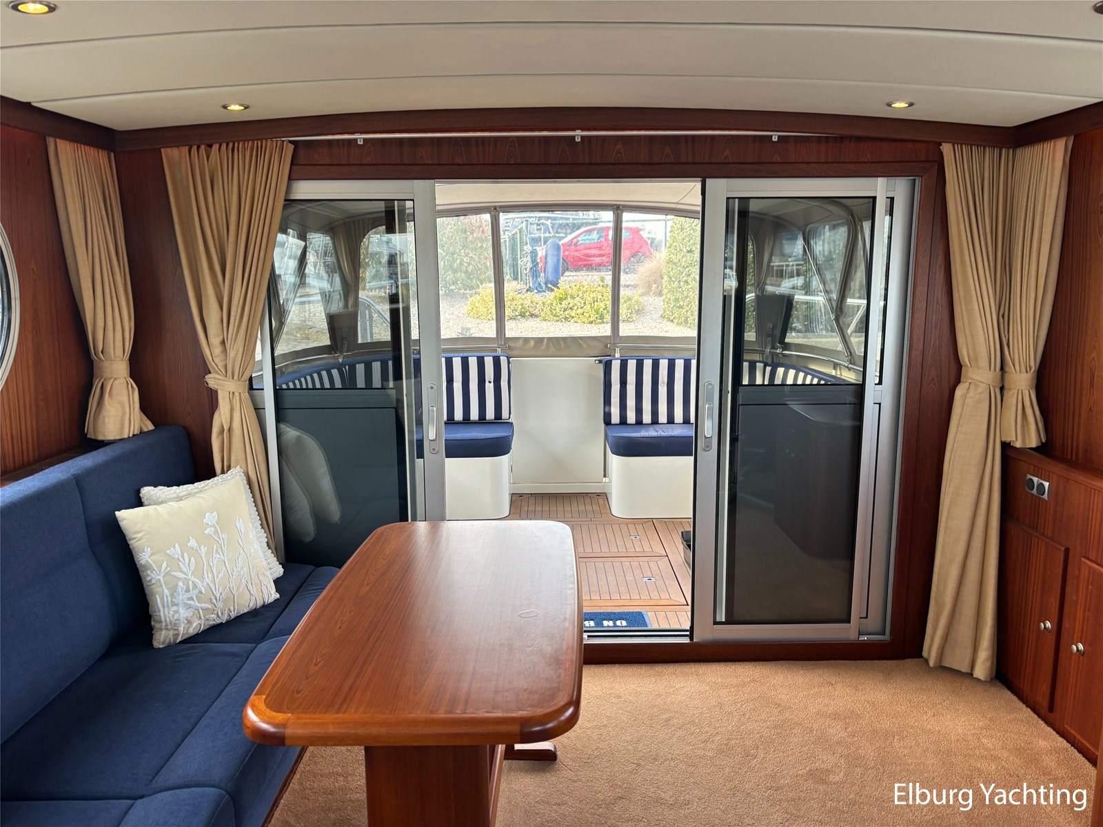 Deze schitterende Argos Line 13.50 - OK - Elite wordt gekenmerkt door haar grote leefruimte aan boord door een gelijkvloerse salon, open kuip en zwemplateau. De tent is over de gehele kuip afsluitbaar zodat het met met minder weer, in combinatie met de Eberspächer hete luchtverwarming, nog steeds mogelijk is om comfortabel buiten te zitten. Vanuit de kuip loopt u via de twee schuifdeuren voorzien van horren, de ruime salon binnen die voorzien is van dubbelglas, met aan bakboord een schuifraam en aan de voorkant een open te klappen raam. In combinatie met de Kabola centrale verwarming is het aangenaam aan boord te verblijven, ook wat vroeger en later in het vaarseizoen. Bij de stuurstand heeft u goed overzicht door de raampartij, Het jacht is voorzien van een Sidepower afstandsbediening waardoor het jacht goed te manoeuvreren is. Vanaf de salon loopt u door middel van een trap naar beneden waar u aan de bakboord kant een ruime dinette vindt, en daar tegenover de kombuis. Als u rechtdoor loopt vindt u de eigenaars hut die voorzien is van een tweepersoons frans bed. Aangrenzend vindt u een douche in eigen cabine en een elektrisch toilet in eigen cabine. Vanuit de kombuis vindt u de gasten hut die is voorzien van een tweepersoons bed. Via de kuip loopt u door middel van een openslaand deurtje naar het zwemplateau. Via de twee luie, halfronde trappen loopt u de gangboorden op die voorzien zijn van een RVS reling, dubbele RVS bolders en antislip verf. Op het voordek staat een elektrisch klapbare mast, en de elektrische ankerlier. Het dak is voorzien van een viertal zonnepanelen via Victron MPPT 100/20. Het jacht heeft een minimale doorvaarthoogte van ca. 2.40 m. Voor vragen en/of het maken van een afspraak bent u 7 dagen per week van harte welkom bij Elburg Yachting.