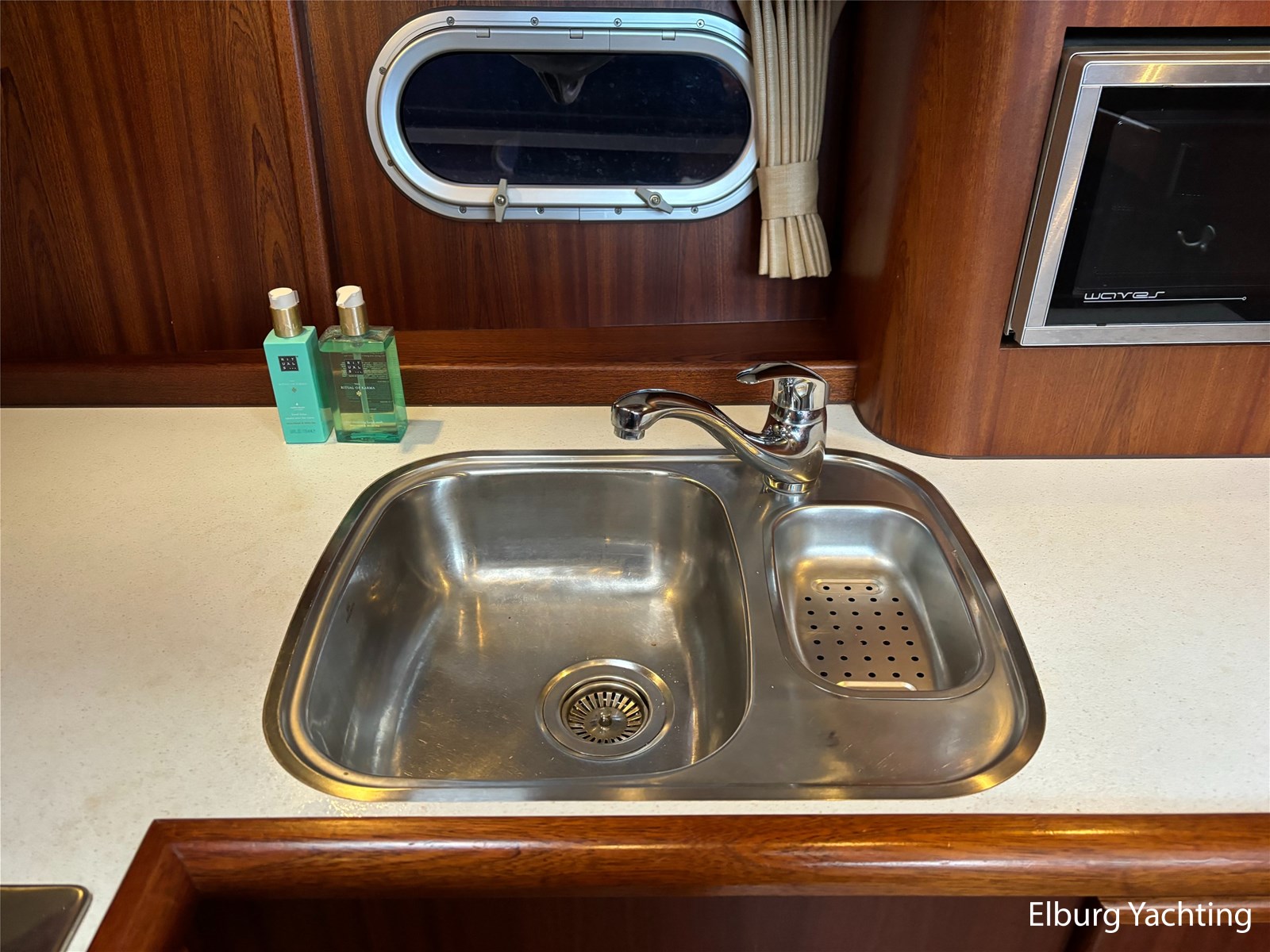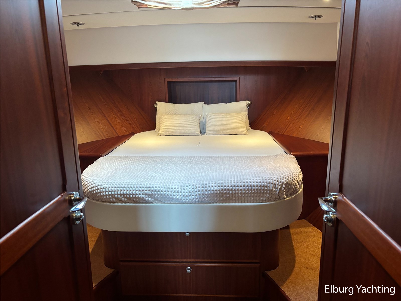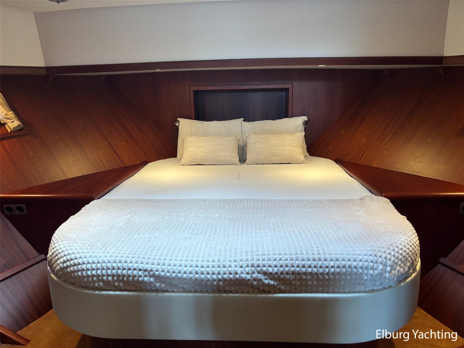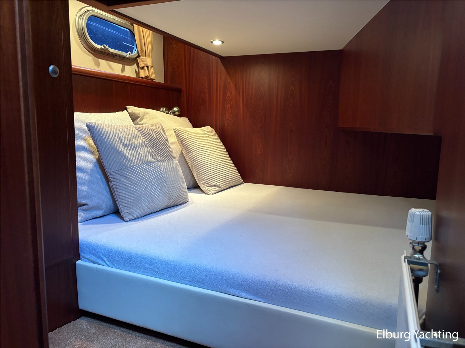 Deze schitterende Argos Line 13.50 - OK - Elite wordt gekenmerkt door haar grote leefruimte aan boord door een gelijkvloerse salon, open kuip en zwemplateau. De tent is over de gehele kuip afsluitbaar zodat het met met minder weer, in combinatie met de Eberspächer hete luchtverwarming, nog steeds mogelijk is om comfortabel buiten te zitten. Vanuit de kuip loopt u via de twee schuifdeuren voorzien van horren, de ruime salon binnen die voorzien is van dubbelglas, met aan bakboord een schuifraam en aan de voorkant een open te klappen raam. In combinatie met de Kabola centrale verwarming is het aangenaam aan boord te verblijven, ook wat vroeger en later in het vaarseizoen. Bij de stuurstand heeft u goed overzicht door de raampartij, Het jacht is voorzien van een Sidepower afstandsbediening waardoor het jacht goed te manoeuvreren is. Vanaf de salon loopt u door middel van een trap naar beneden waar u aan de bakboord kant een ruime dinette vindt, en daar tegenover de kombuis. Als u rechtdoor loopt vindt u de eigenaars hut die voorzien is van een tweepersoons frans bed. Aangrenzend vindt u een douche in eigen cabine en een elektrisch toilet in eigen cabine. Vanuit de kombuis vindt u de gasten hut die is voorzien van een tweepersoons bed. Via de kuip loopt u door middel van een openslaand deurtje naar het zwemplateau. Via de twee luie, halfronde trappen loopt u de gangboorden op die voorzien zijn van een RVS reling, dubbele RVS bolders en antislip verf. Op het voordek staat een elektrisch klapbare mast, en de elektrische ankerlier. Het dak is voorzien van een viertal zonnepanelen via Victron MPPT 100/20. Het jacht heeft een minimale doorvaarthoogte van ca. 2.40 m. Voor vragen en/of het maken van een afspraak bent u 7 dagen per week van harte welkom bij Elburg Yachting.