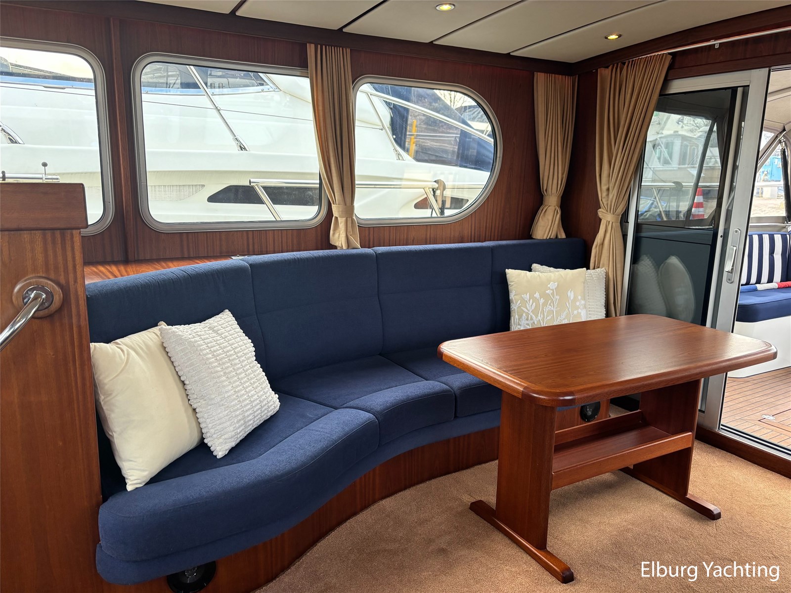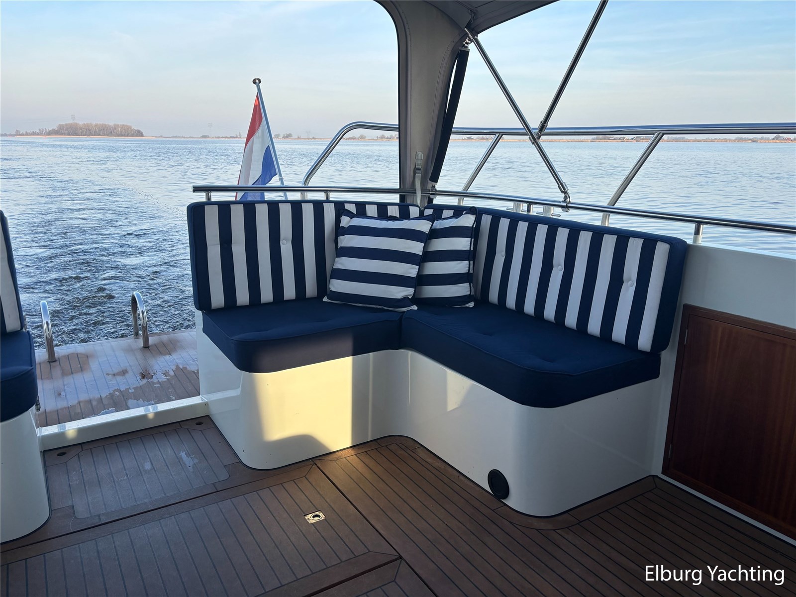 gangboorden belegd met antislip materiaal, kuip en achterdek voorzien van kunst teak