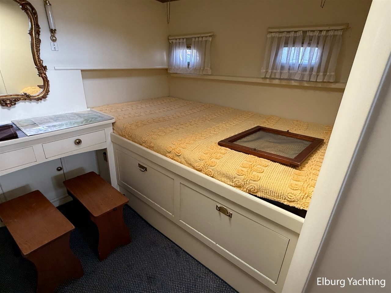 Prachtige klassieke Super van Craft 14.70 Cabrio aangeboden door haar Nederlandse eigenaar. Het jacht is gebouwd in 1968 door Klaassen te Voorschoten en in de periode rondom 2004 professioneel onder handen genomen en daarna nauwelijks nog heeft gevaren en slechts droog heeft binnen gestaan. Er zijn in 2004 2 nieuwe 120 pk sterke Volvo Penta dieselmotoren ingekomen. Het betreft een prachtige klassieke Super van Craft die klaar is voor een nieuwe eigenaar. Het jacht beschikt over een fijne rondspant romp met voorbereiding voor stabilisatoren en is rondom voorzien van Teak (gangboorden / voordek / voorroef / achterdek / zwemplateau). Onder verschillende weersomstandigheden is het jacht te varen middels de 2 stuurstanden (binnen en buiten). Het jacht beschikt verder over een ruime salon, fijne kombuis met naastgelegen dinette, voorhut met drie bedden en nabijgelegen natte cel met toilet en wastafel. De achterhut met twee bedden en nabijgelegen natte cel met toilet, wastafel en douche. Inspectierapport uit 2025 van het casco op verzoek beschikbaar. Voor vragen en/of het maken van een afspraak bent u 7 dagen per week van harte welkom bij Elburg Yachting.