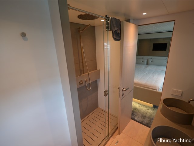 eigenaars- en gastenbadkamers, voor de buitenbekleding is gebruik gemaakt van Premium Roda stoffen kussens, zonneschermen met carbon stokken, hydraulisch liftsysteem voor tewaterlating van tender, pantograaf loopplank, Seakeeper 18 gyroscopische stabilisator, sun deck kussens met verstelbare rugleuningen, inklapbare carbon douche achterdek, opgewaardeerde bolders, vernieuwde keuken met verschuifbare voorraadmanden, combimagnetron, custom built laden met verschuifbare op bovendek , extra kastruimte en customized salon meubilair, VIP cabine garderoberek, eigenaars-suite met vergrote wastafel, customized garderobe, crew-area met grotere wc, de derde hut heeft verschuifbare bedden, er is direct toegang tot de royale eigenaarshut. Ultra UA60 anker, Garmin Panoptix PS60 sonar, Surround View, Flir M364 nachtzicht camera, geavanceerde Wi-Fi met 6 toegangspunten & Starlink, Garmin afstandsbediening in de crewcabine, auto-start generator systeem. Het bewakingssysteem bestaat uit 4 vaste camera`s (2 in de machinekamer,1 in het stuurhuis en 1 bij de ankerkluis), watermaker Idromar MC4J ( 210Lt per hour , 5000 lt per day). Dit jacht biedt comfort en is gereed voor het nieuwe vaarseizoen.