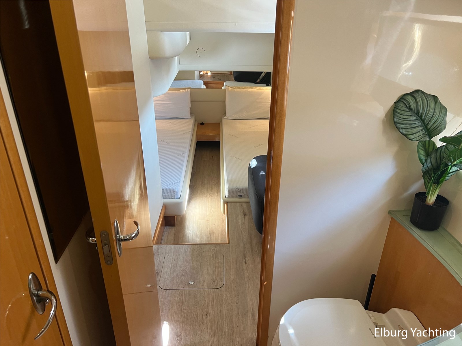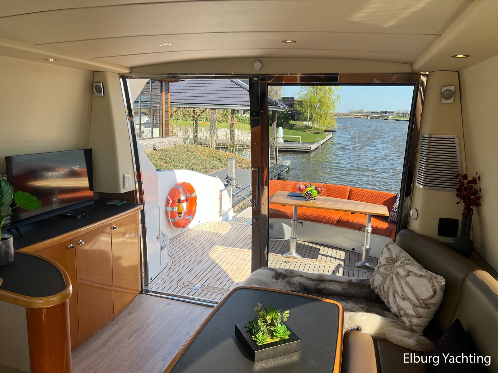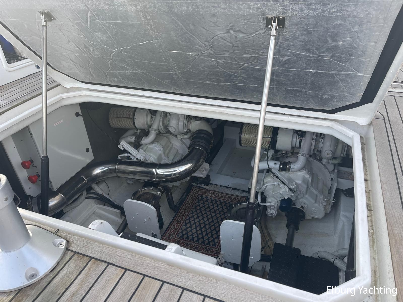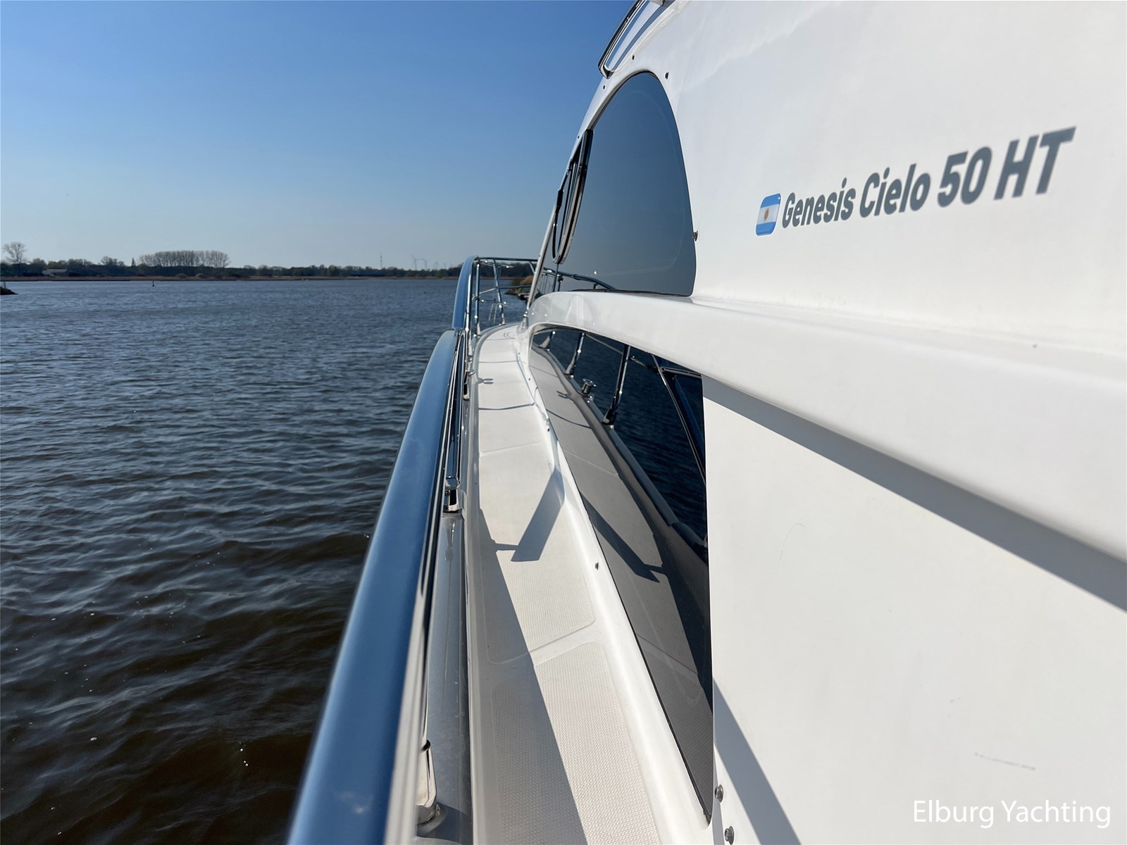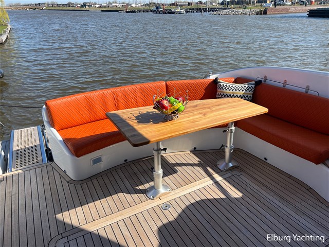 Deze Genesis 50 HT is een bijzondere verschijning op het water. Door haar mooi getekende profiel is het jacht zeer mooi in proportie. Het schip beschikt over een vaste r.v.s. deur waardoor de salon gemakkelijk is af te sluiten. Daarnaast biedt dit de mogelijkheid om de salon, en het achterdek als een groot geheel bij elkaar te voegen. Dit schip wordt verder geleverd met o.a: vernieuwde Raymarine navigatie apparatuur (2023), verlichting aan boord veranderd naar LED (2024), salonbank welke om te bouwen is naar een 2 persoons bed, Hydronautica afstandsbediening (2024), motorservice (2025), nieuwe kussen set met Bentley stiksels in kuip en op zonnedek (2024), Miele ijskast met vriesvak (2024), Bose geluidsinstallatie, onderwaterverlichting, vrije doorloop naar zwemplatform, 2 x zwemtrap, hydraulisch machinekamer luik, Bennet trimtabs, laminaat vloer, groot schuifdak in salon, grote gebogen voorruit wat zorgt voor veel lichtinval, luifel om uit de zon in de kuip te kunnen zitten. Voor vragen en/of het maken van een afspraak bent u 7 dagen per week van harte welkom bij Elburg Yachting.