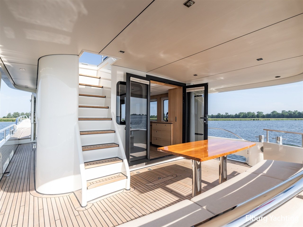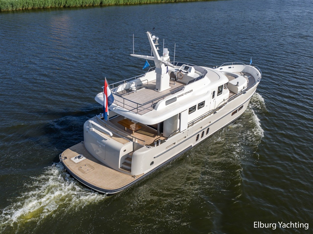 Deze prachtige nieuwe De Alm Grand Voyager 65 is gebouwd door Jachtwerf De Alm uit Waalwijk en ontworpen door Werner Yacht Design in combinatie met Azza Yachting. Dit jacht is zeer exclusief gebouwd in Grade A-steel dat is afgewerkt met een zeer hoogwaardig VANDENENDEN 2023 Awl Grip superyacht verfsysteem. Het jacht is gebouwd met een multiknikspant romp in combinatie met hydraulische stabilisatoren, twee hydraulische spudpalen en hydraulische boeg- en hekschroef. Via de dubbele stuurstand (1 x in het stuurhuis + 1 x op de flybridge) is het jacht tevens via de Hydronautica afstandsbediening eenvoudig te besturen.