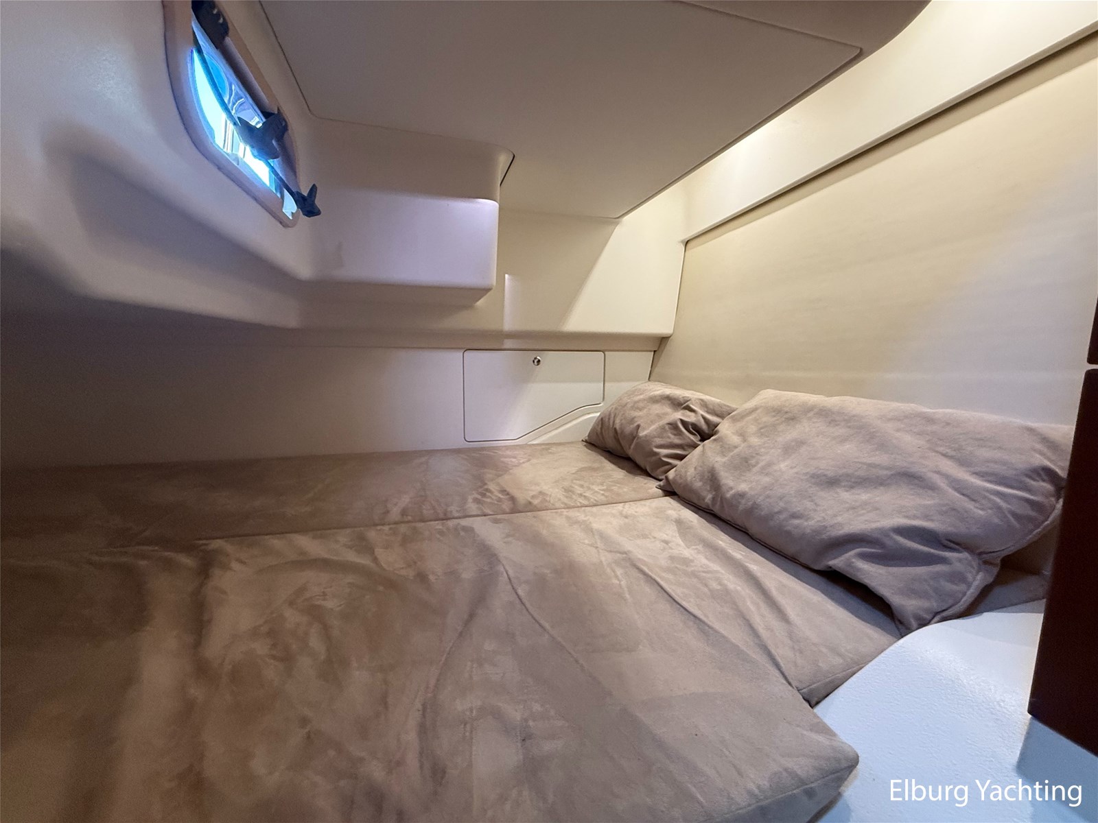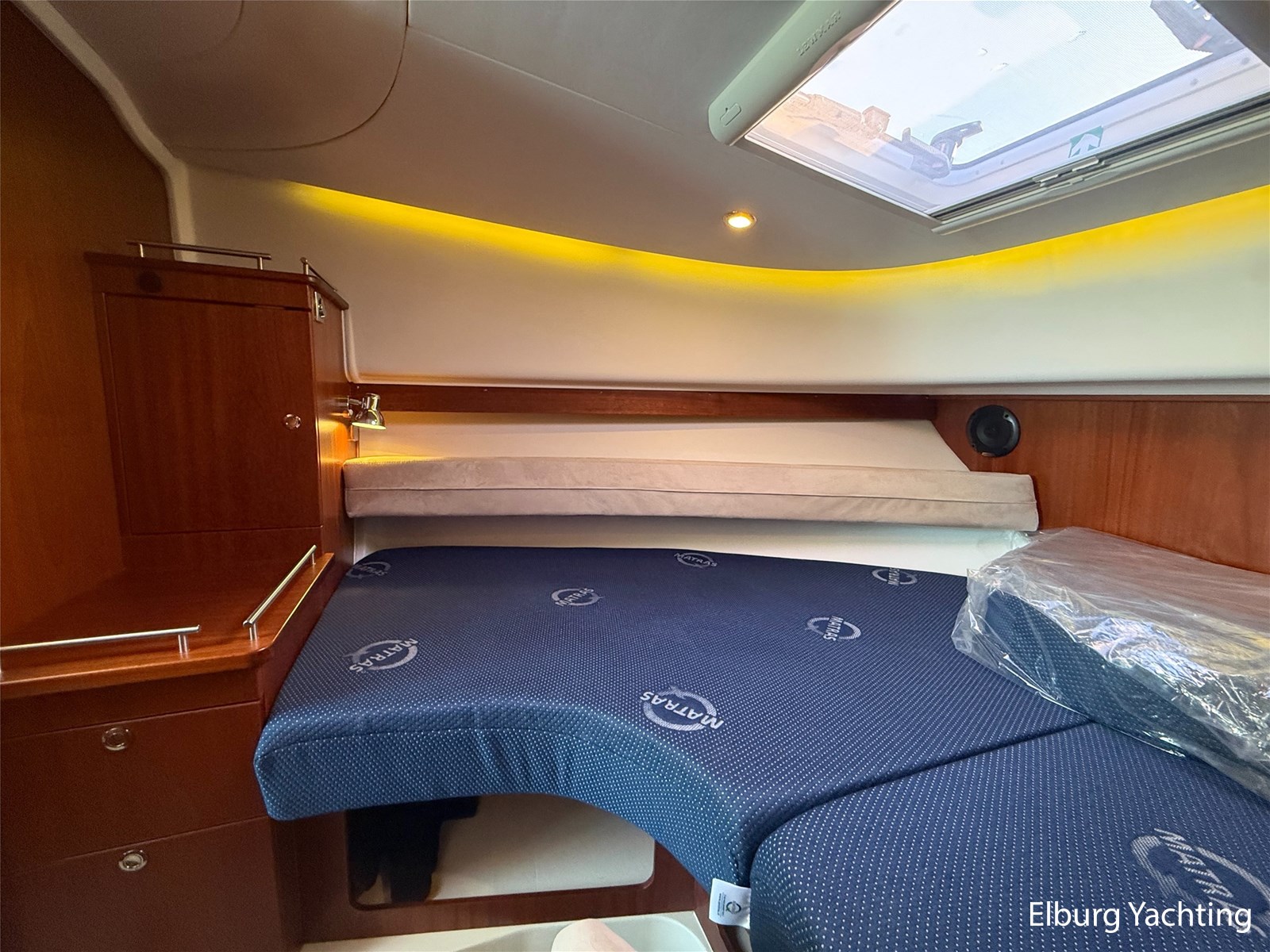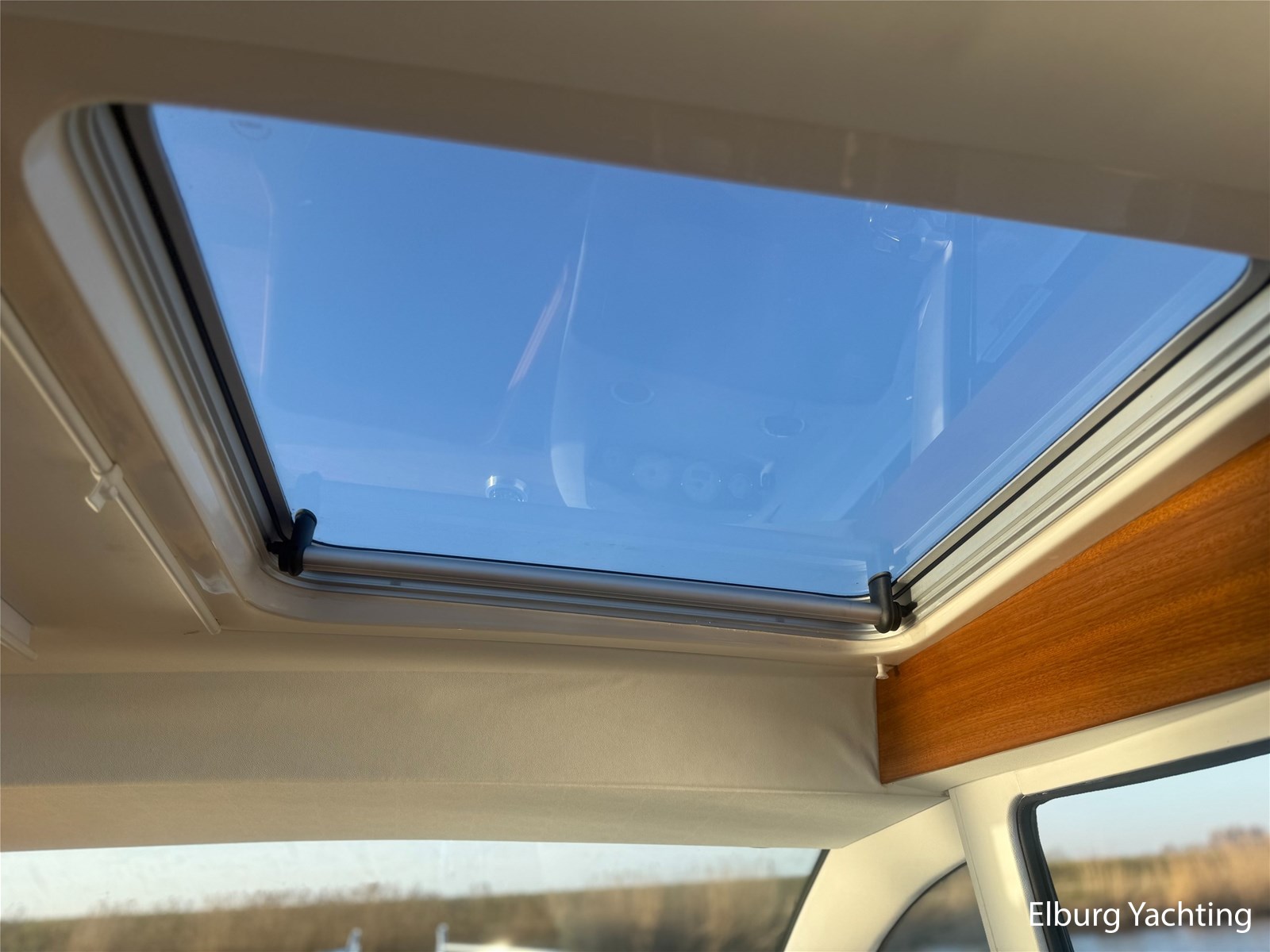 De Nimbus 335 beschikt over een ruime en verzorgde kuip, waarin comfort en functionaliteit mooi samenkomen. De zitbank met kussens nodigt uit tot ontspannen momenten aan boord, terwijl de diepe opbergbak praktische bergruimte biedt. Dankzij de volledig afsluitbare kuiptent is deze buitenruimte ook bij minder weer een prettige plek om te verblijven. Via een gemakkelijke doorgang bereikt u het zwemplatform. De salon is bereikbaar via een schuifdeur en biedt aan stuurboordzijde de kombuis en de stuurstand. De stuurstand is voorzien van een handige deur naar het gangboord. Aan bakboord bevindt zich een comfortabele dinette met in hoogte verstelbare tafel. Voorin, tegenover de stuurstand, is een klapbare meevaarbank aanwezig met een uitschuifbare tv. De combinatie van mahoniehouten betimmering en lichte bekleding geeft het interieur een warme, stijlvolle Scandinavische uitstraling. In 2025 zijn onder andere het toilet, de radar, omvormer, marifoon, Fusion-radio en de matrassen vernieuwd. De warmtewisselaar is gereviseerd. In 2025 is het schip voorzien van nieuwe antifouling en is er een uitgebreide poets- en polijstbeurt uitgevoerd. De motor kreeg in 2025 een onderhoudsbeurt en de plotter werd vervangen in 2023. Grote luiken in de kuipvloer zorgen voor uitstekende toegang tot de motorruimte, bergruimte en technische installaties. Het gemiddeld brandstofverbruik (5-6 knopen varen) bedroeg circa 3 liter per uur. Met originele Nimbus-details zoals het servies, een chique dubbele RVS zeerailing en een doordachte indeling is dit jacht een compleet geheel. Volledige documentatie beschikbaar.