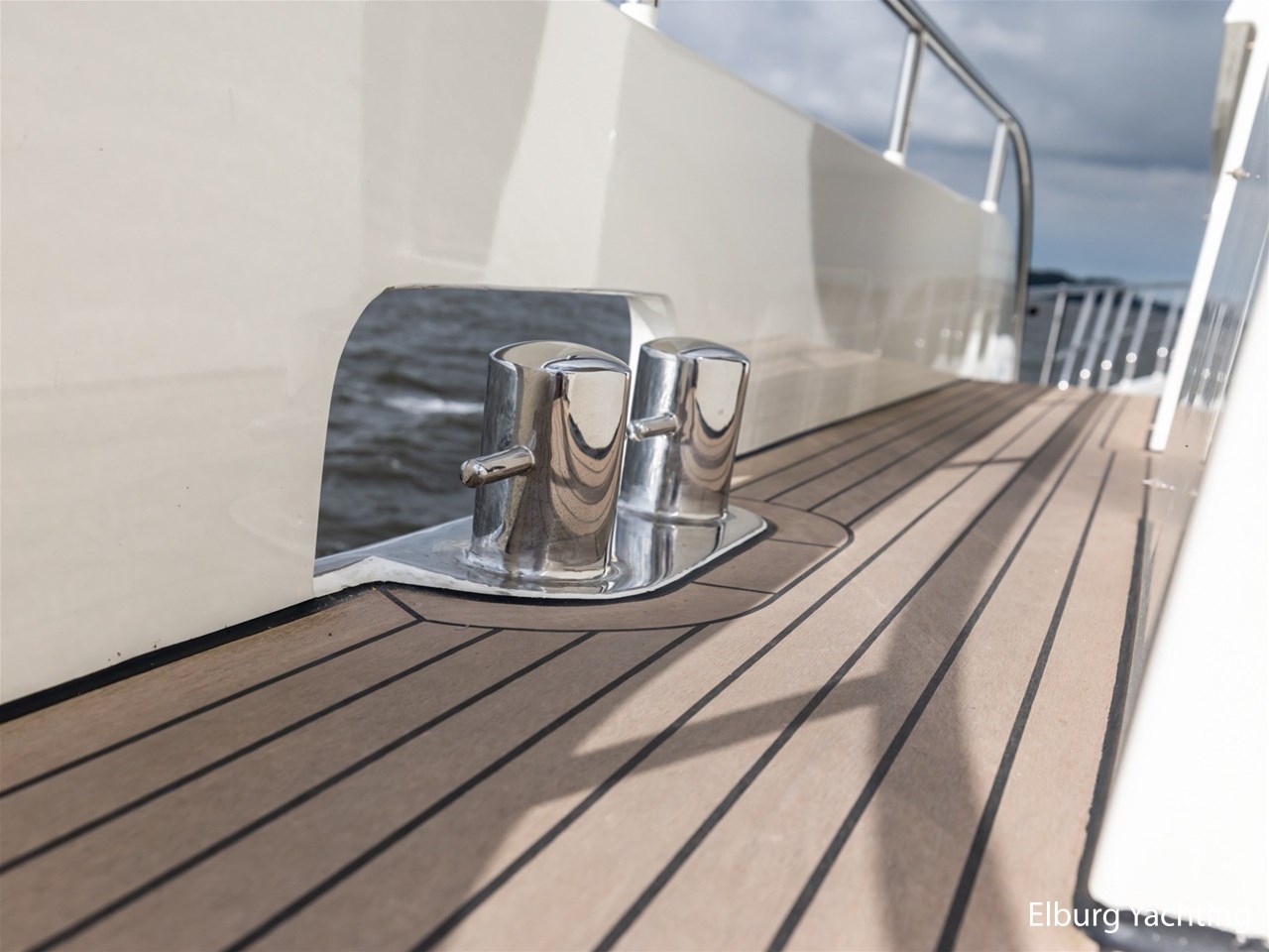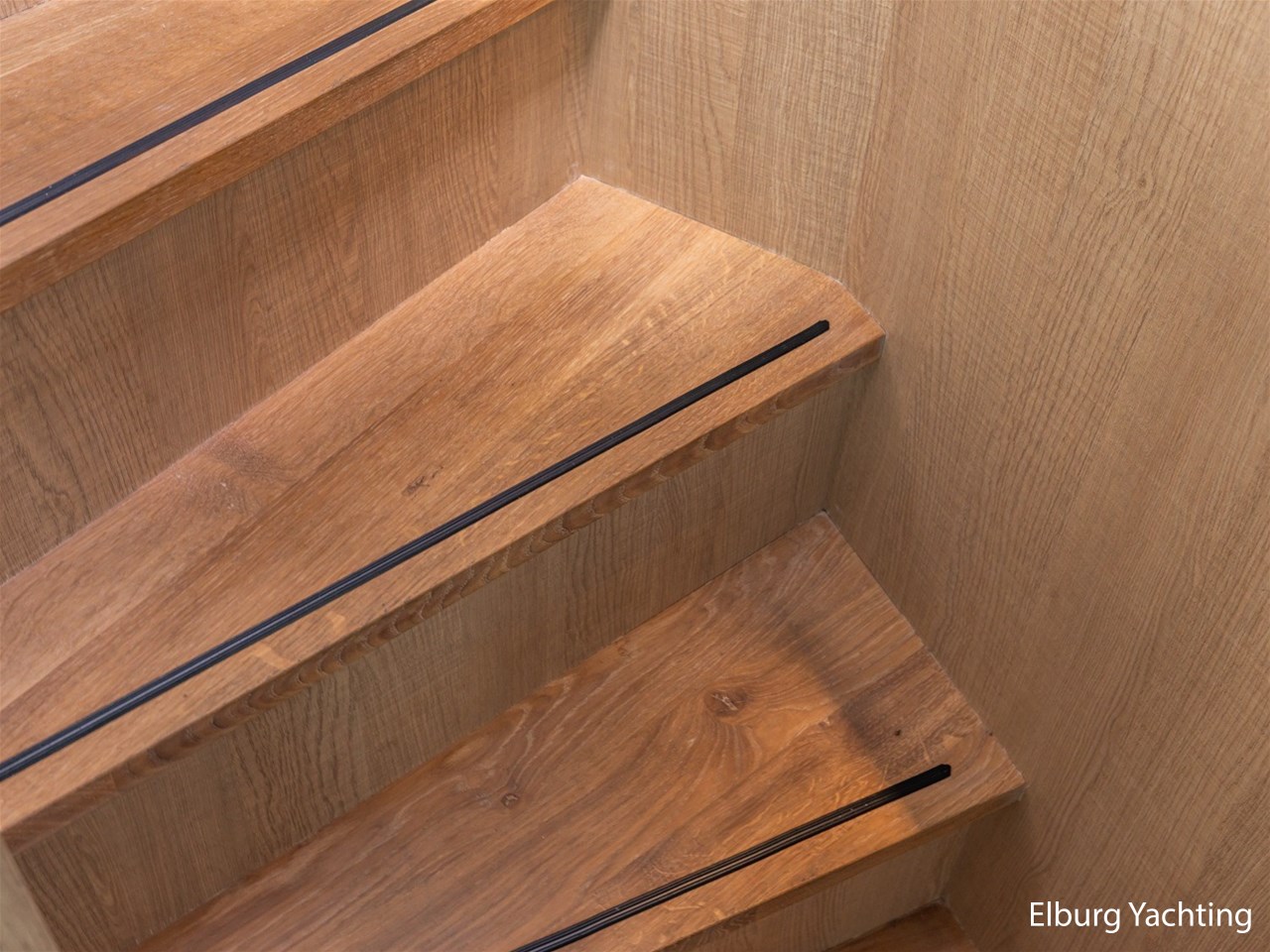 Geïntegreerd in casco, met draaitrappen naar achterdek